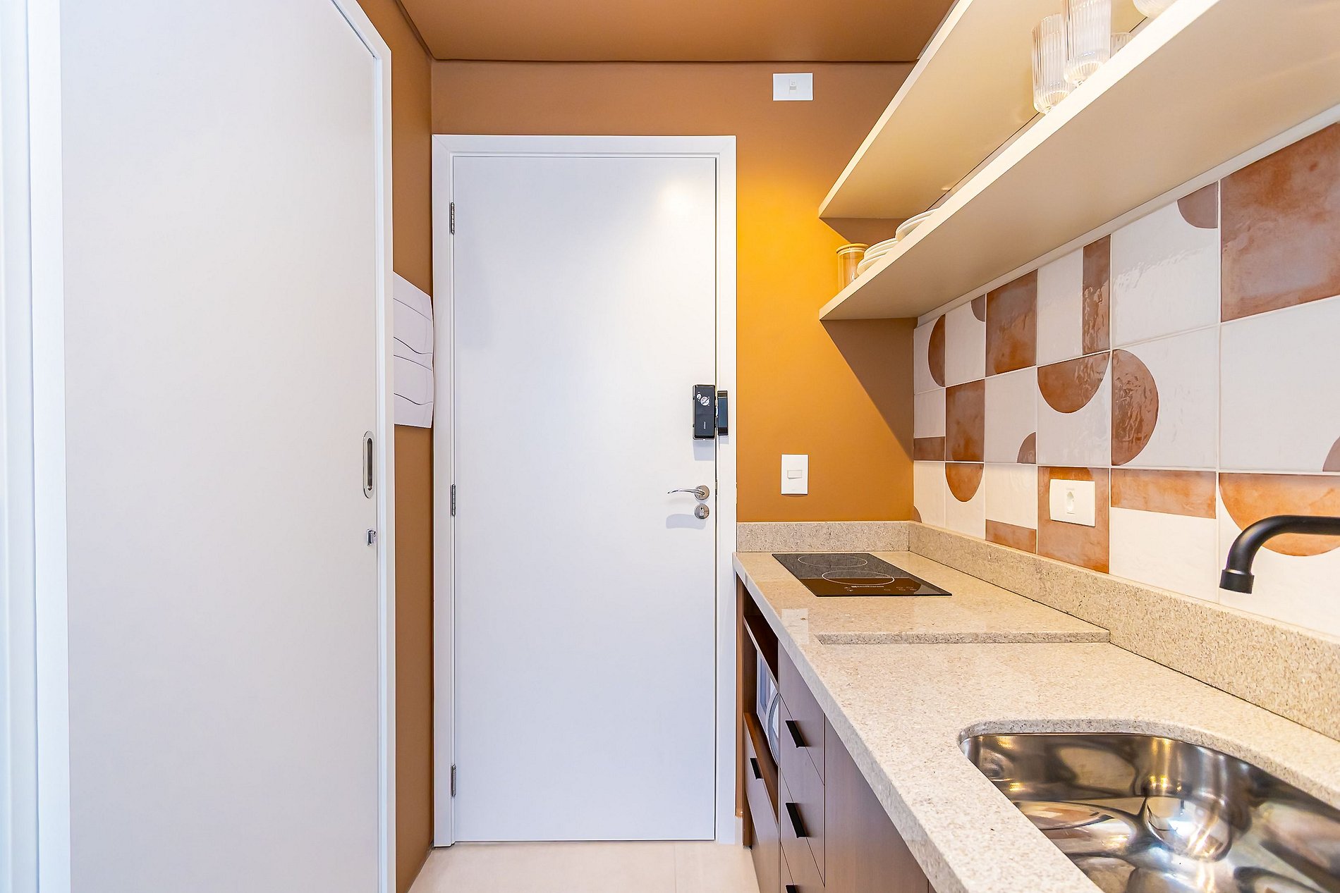 Não fale em voz alta a senha da fechadura eletrônica no corredor enquanto digita a senha para entrar no apartamento. Não divulgue a sua senha para terceiros, a senha é criada exclusivamente para cada hospede durante seu período de estadia. Não nos responsabilizamos por itens pessoais levados de dentro do apartamento durante o período da estadia.