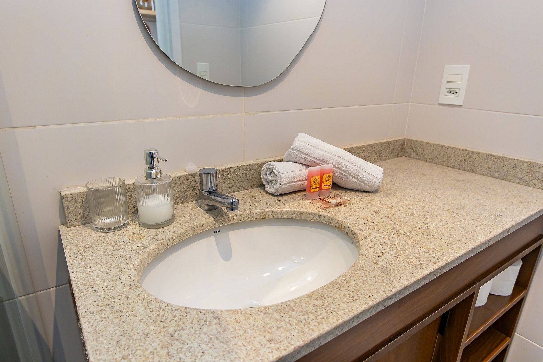 Durante a sua estadia não temos serviço de quarto e nem fazemos a reposição dos itens da sua unidade como: shampoo, condicionador, sabonete, papel higiênico, pano de prato, esponja e detergente de louça, além de pilhas do controle remoto, ar-condicionado e da fechadura eletrônica. A reposição destes itens é de responsabilidade do hóspede titular da reserva.