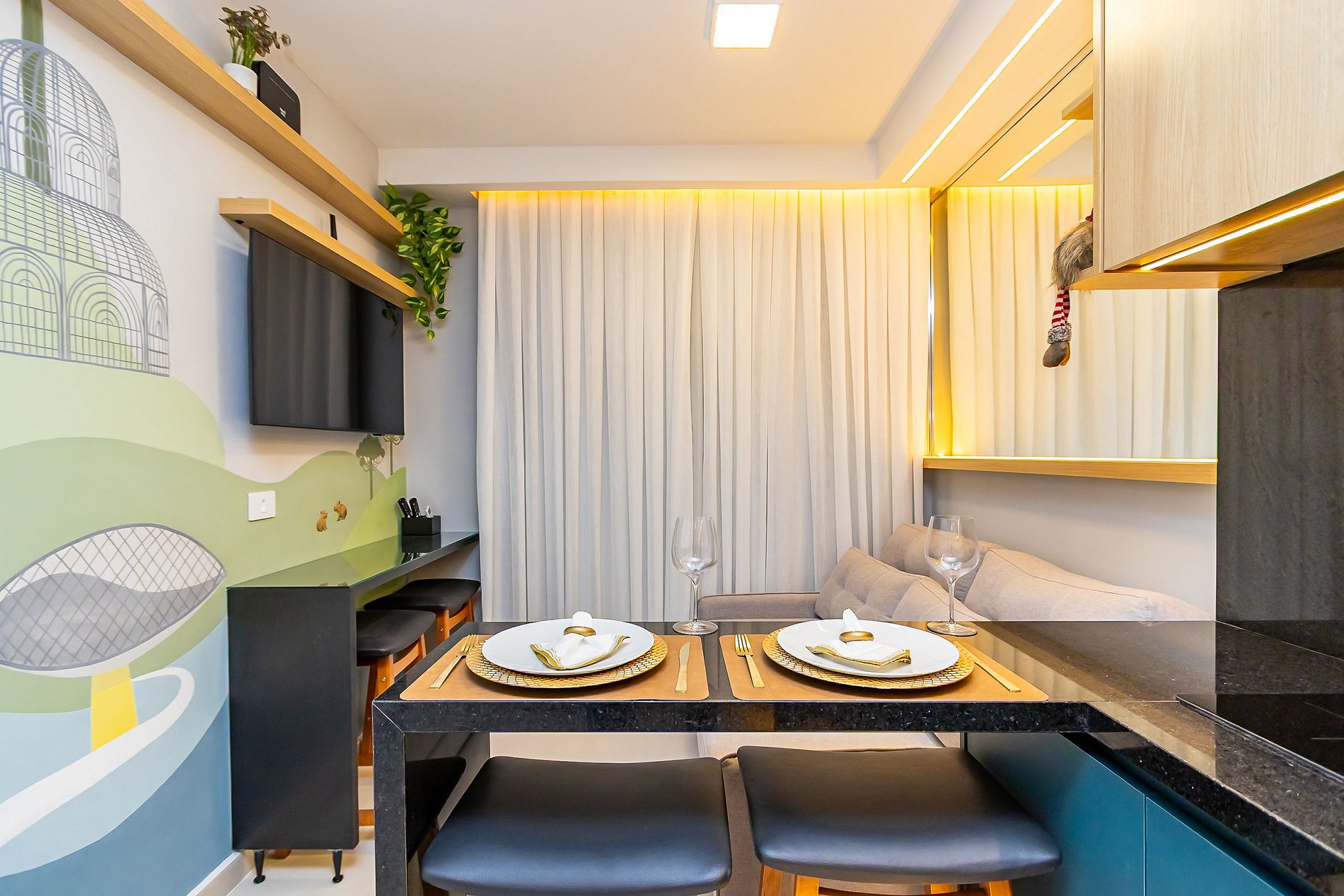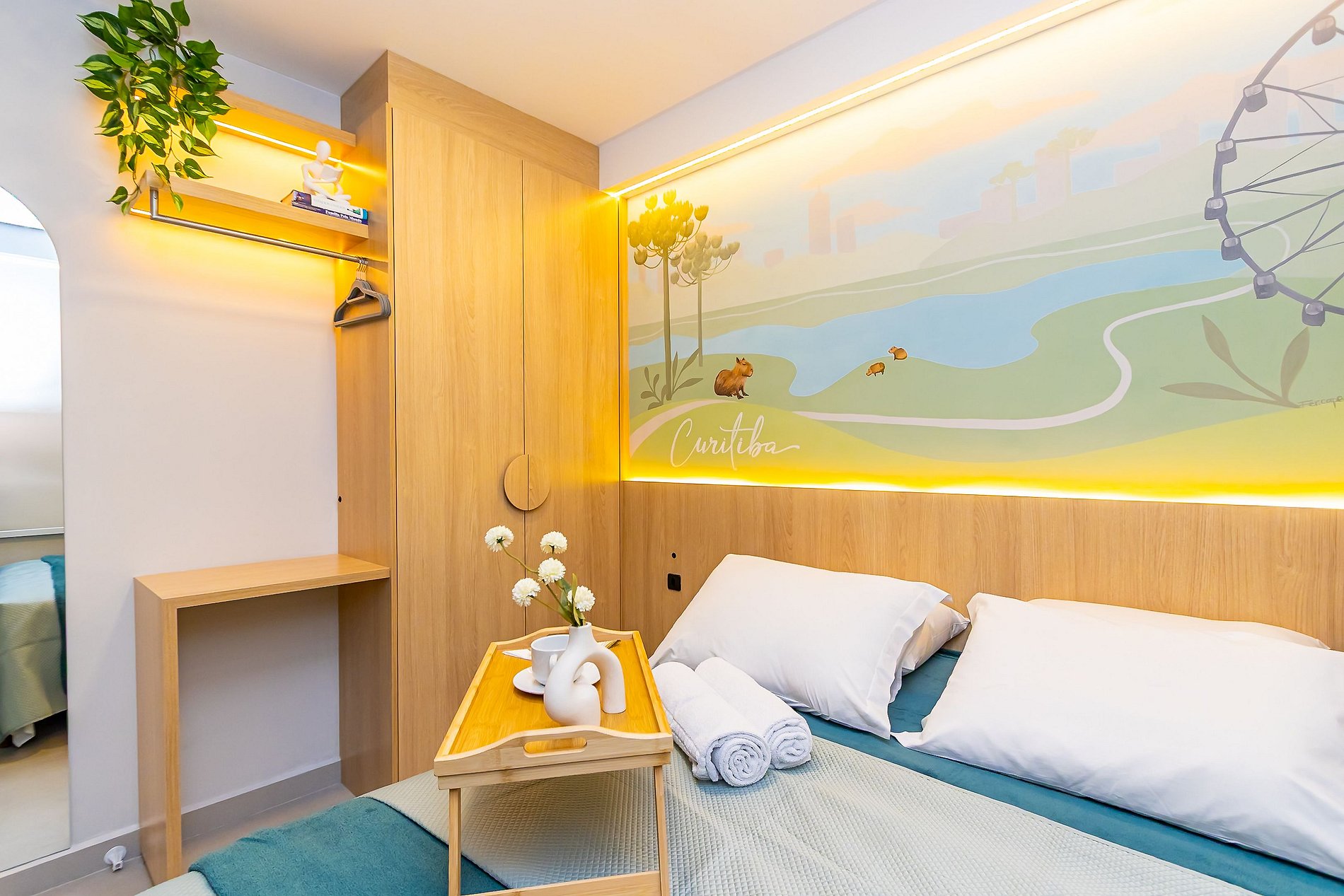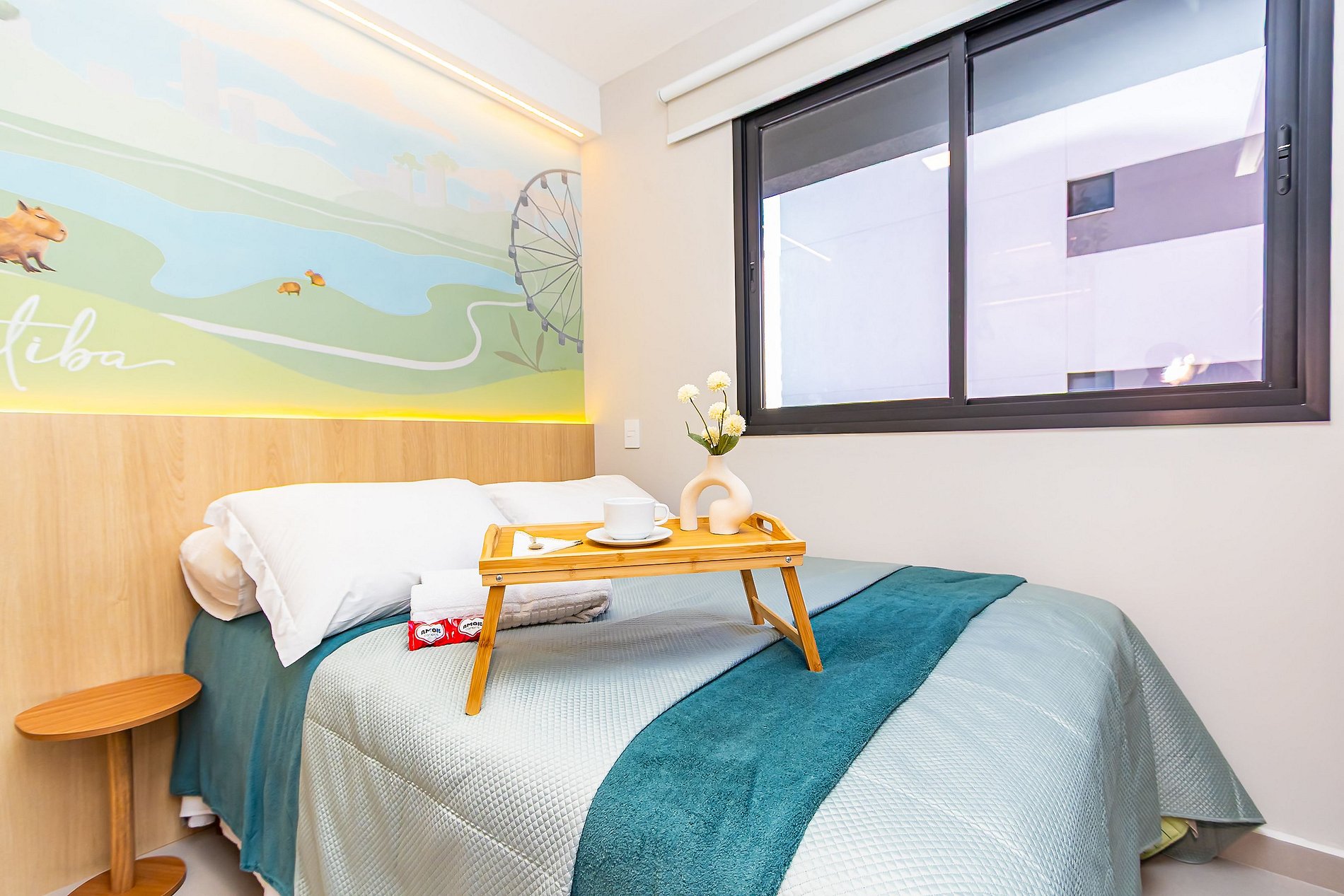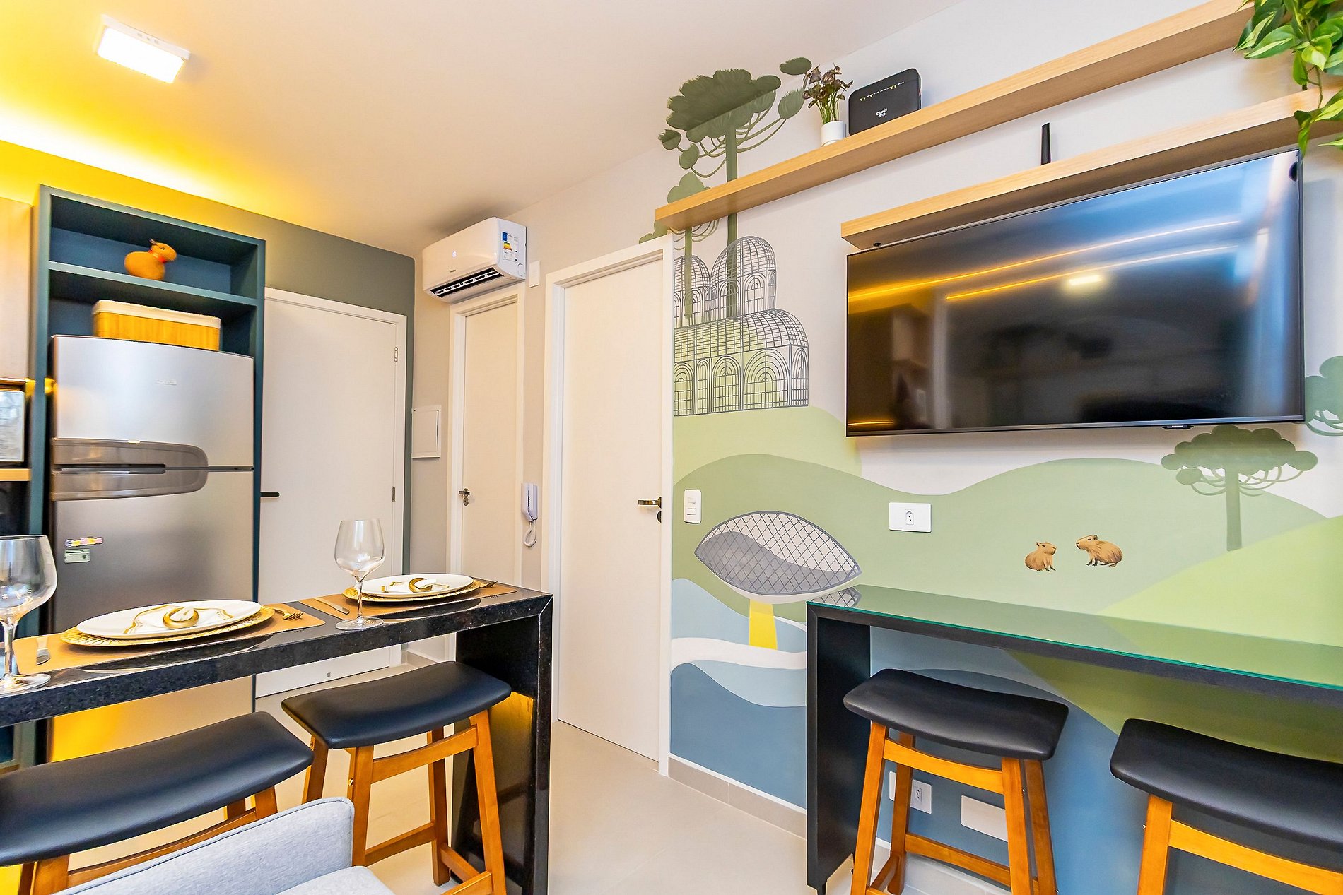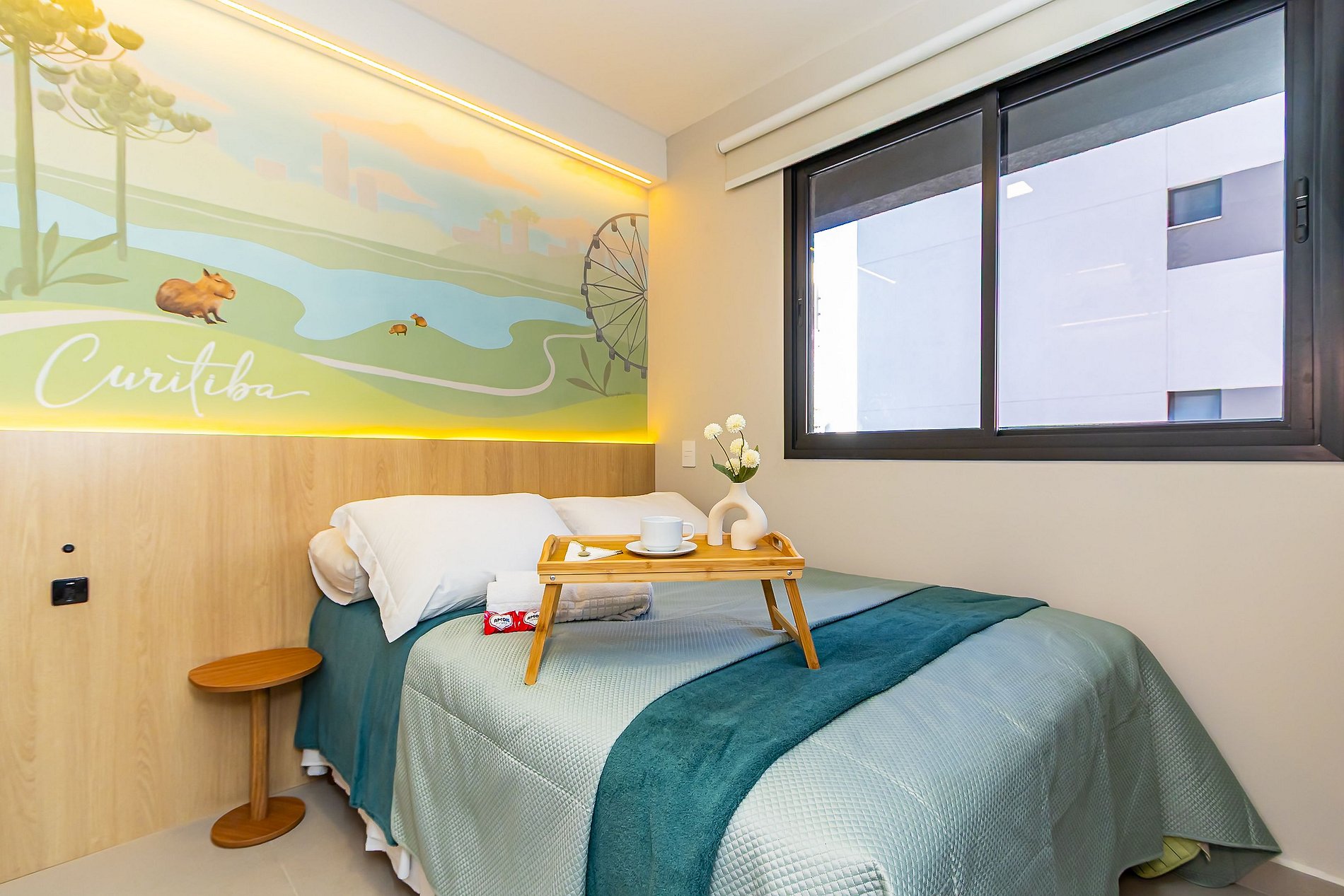 Apartamento de 1 quarto, ideal para até 4 pessoas, com decoração refinada e cuidadosamente inspirada na cultura curitibana. O espaço une conforto, estilo e identidade local, trazendo elementos que remetem à arquitetura, arte e ao charme da cidade. Totalmente equipado, oferece ambientes aconchegantes e funcionais para uma estadia tranquila. Perfeito para quem deseja se hospedar com comodidade e viver uma experiência autêntica, sentindo o clima de Curitiba em cada detalhe.