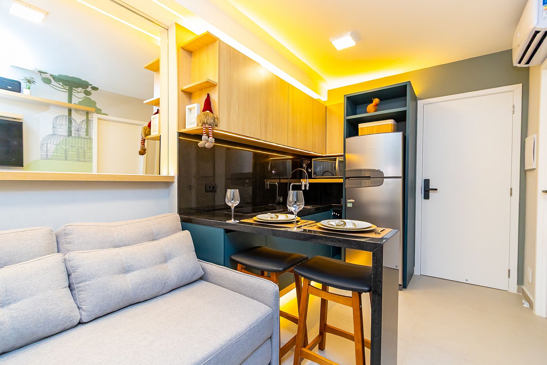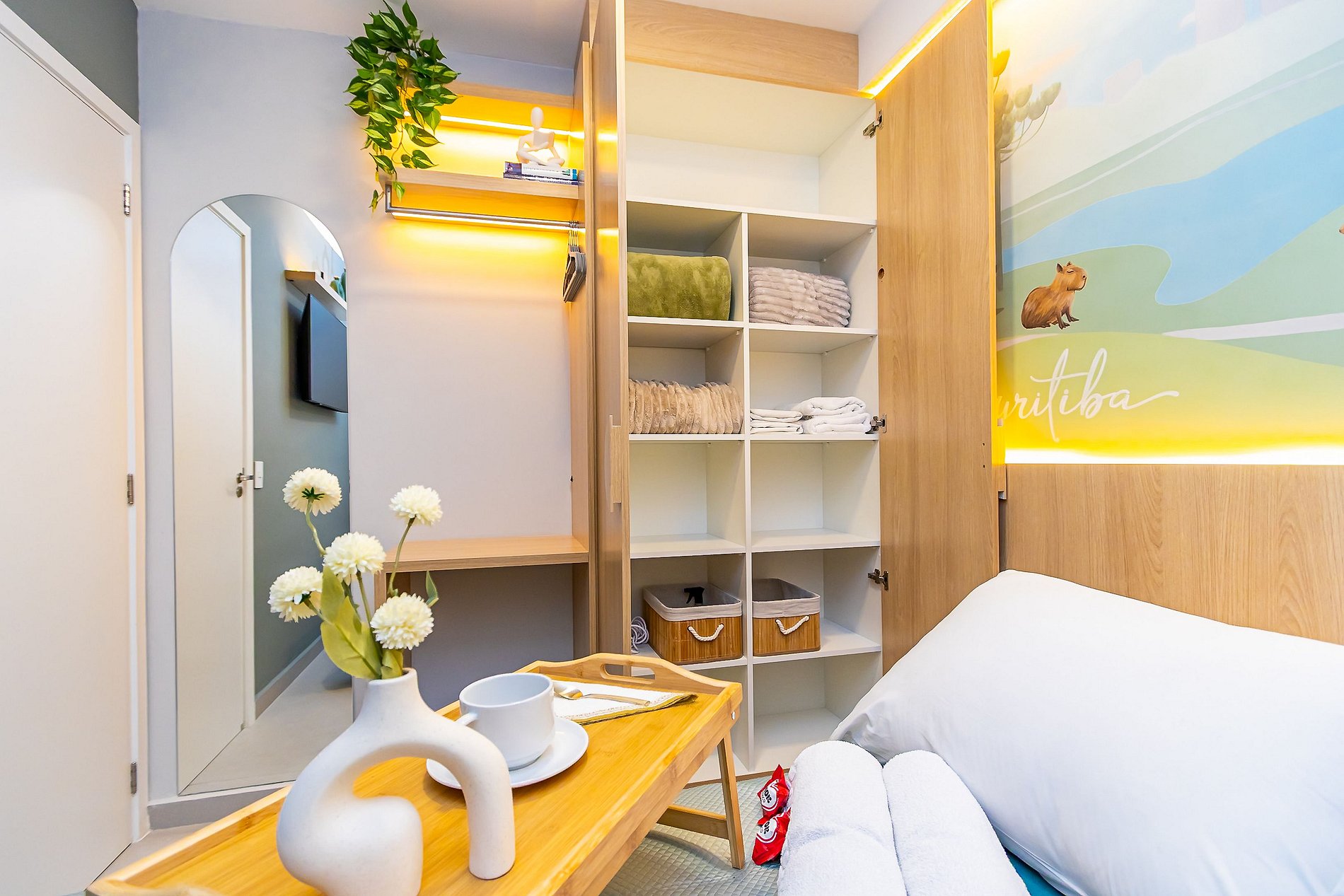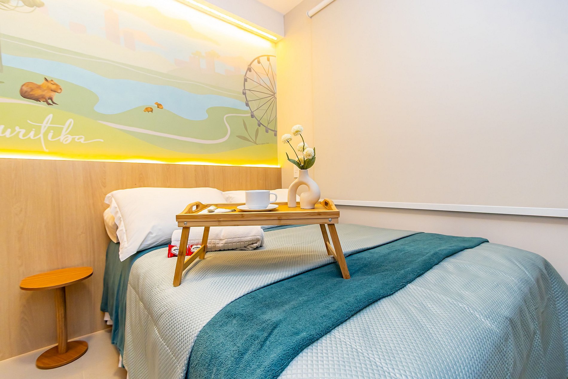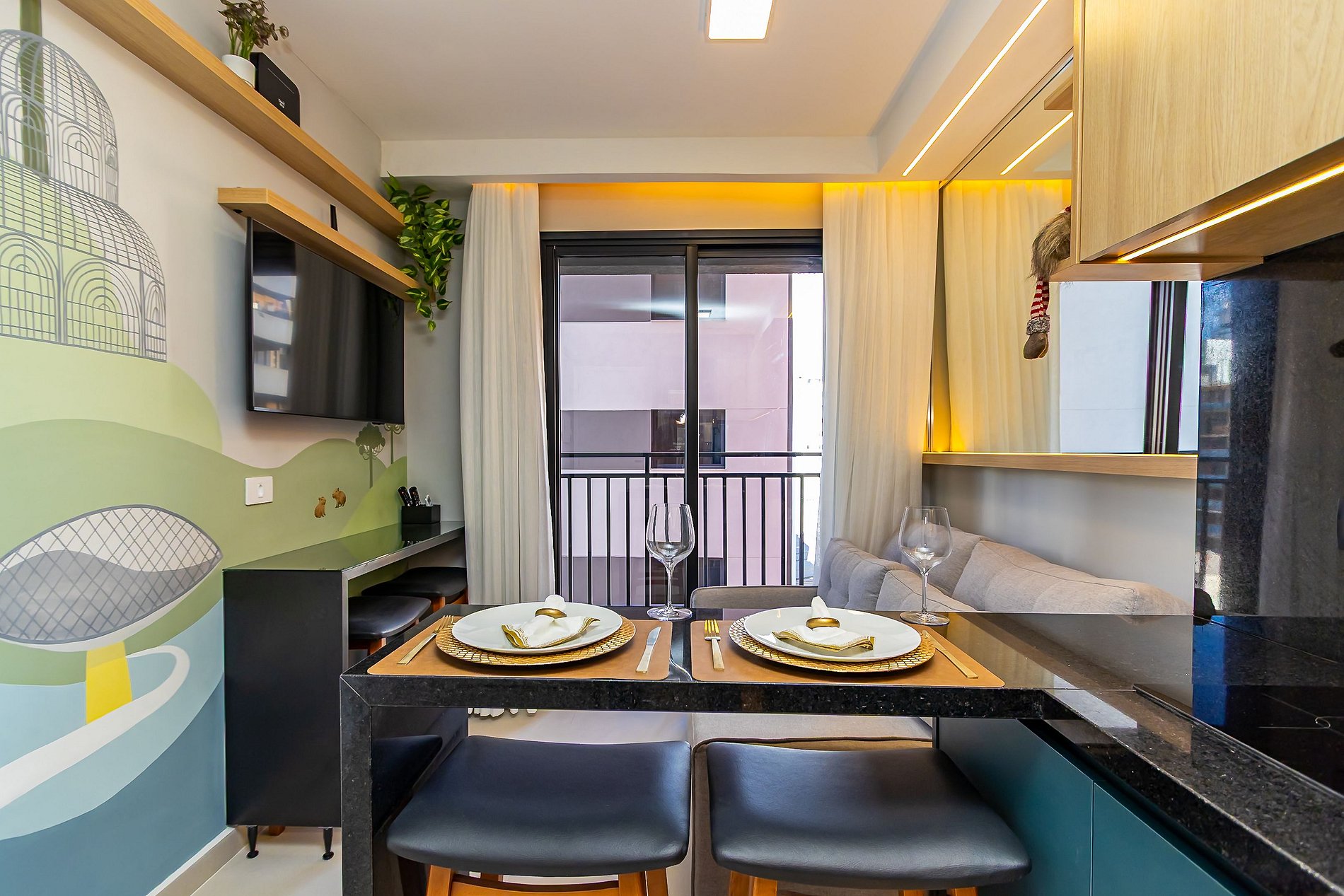 Apartamento de 1 quarto, ideal para até 4 pessoas, com decoração refinada e cuidadosamente inspirada na cultura curitibana. O espaço une conforto, estilo e identidade local, trazendo elementos que remetem à arquitetura, arte e ao charme da cidade. Totalmente equipado, oferece ambientes aconchegantes e funcionais para uma estadia tranquila. Perfeito para quem deseja se hospedar com comodidade e viver uma experiência autêntica, sentindo o clima de Curitiba em cada detalhe.