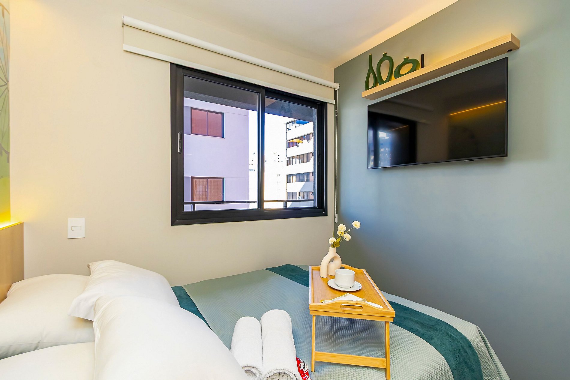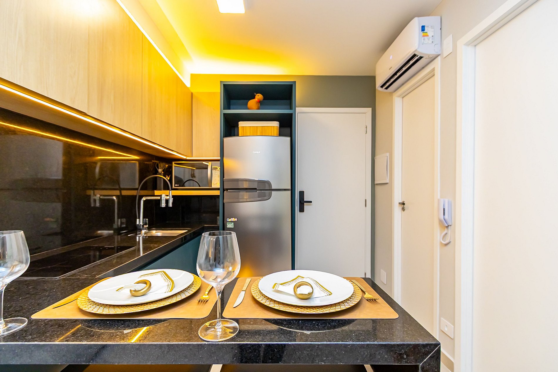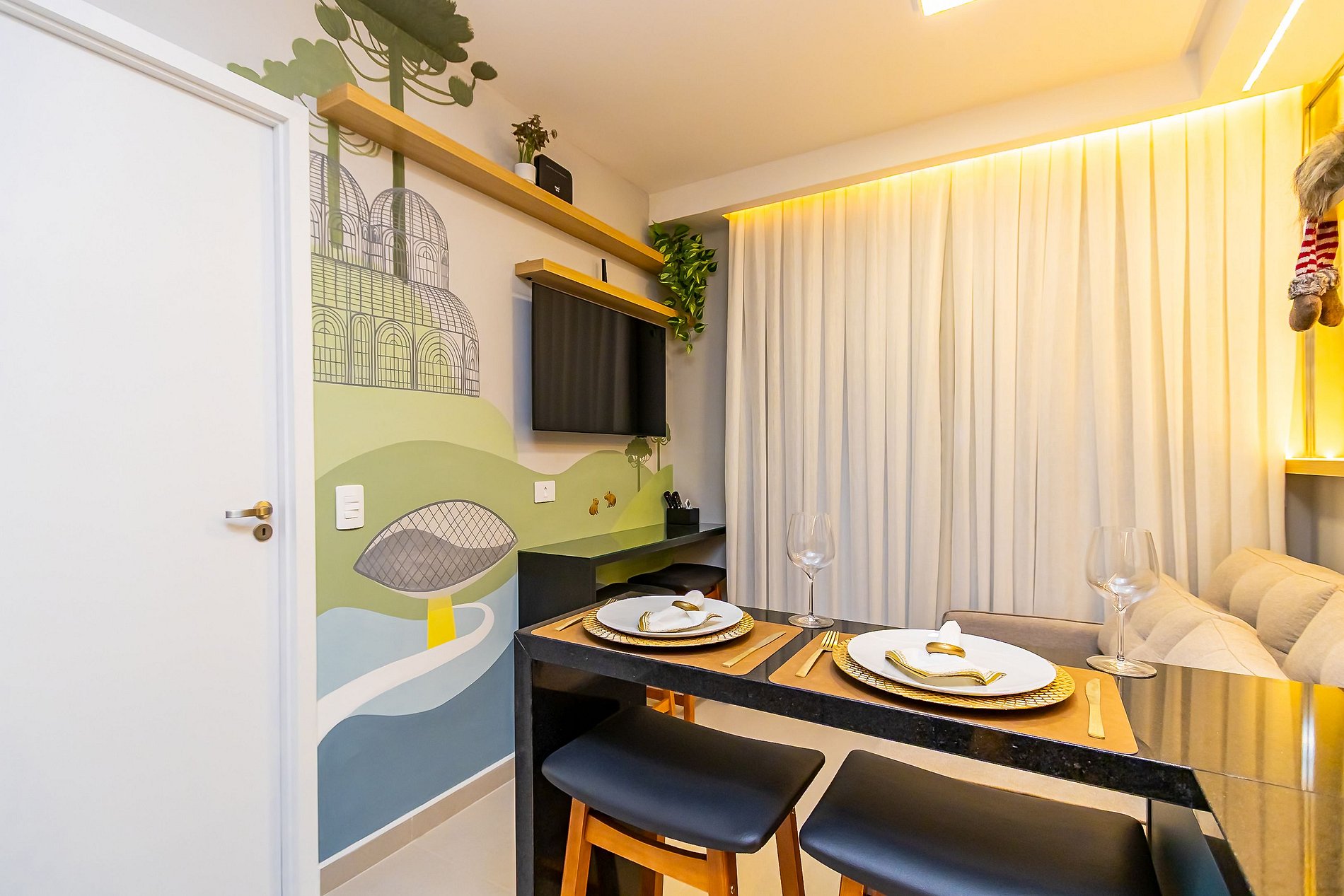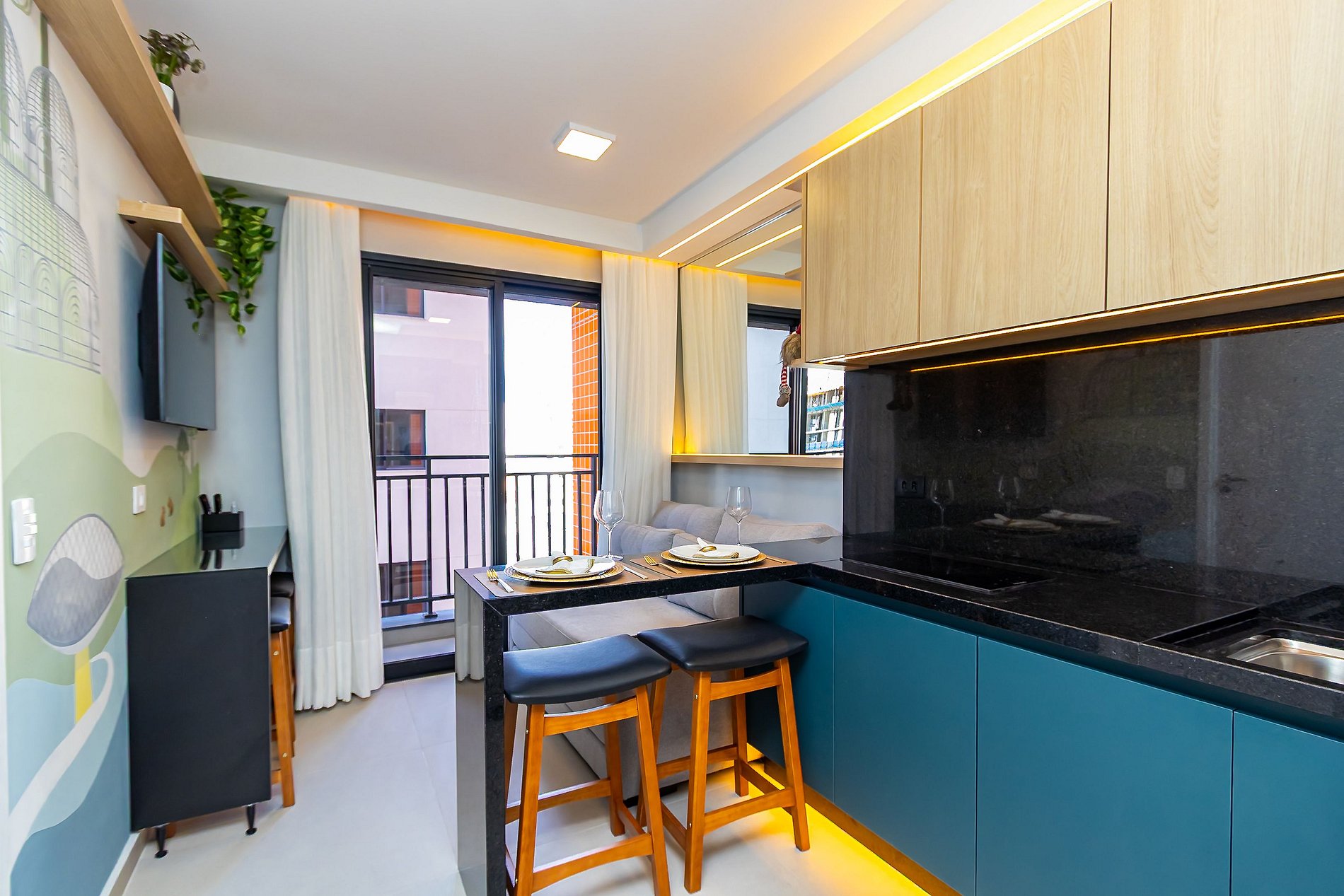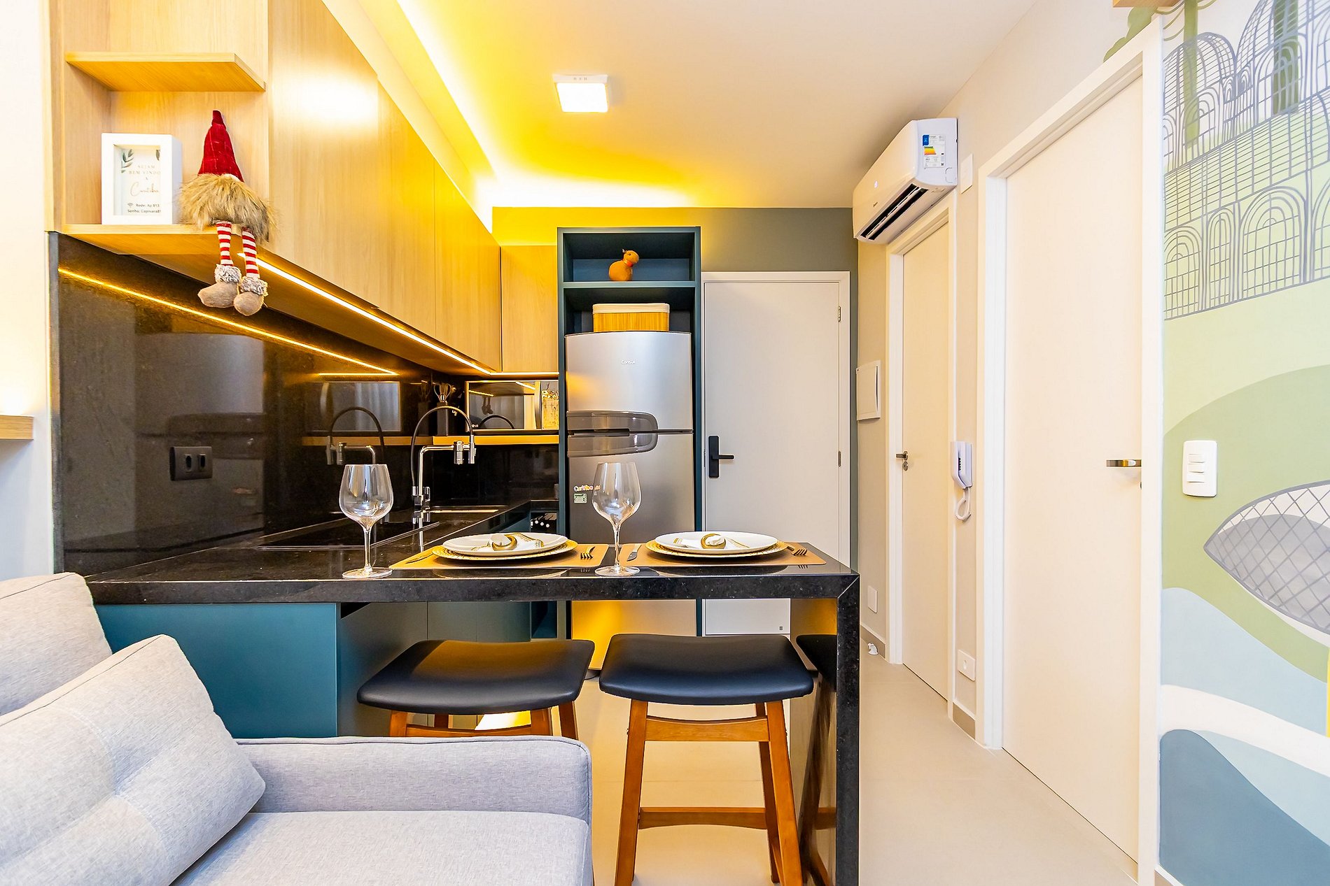 Apartamento de 1 quarto, ideal para até 4 pessoas, com decoração refinada e cuidadosamente inspirada na cultura curitibana. O espaço une conforto, estilo e identidade local, trazendo elementos que remetem à arquitetura, arte e ao charme da cidade. Totalmente equipado, oferece ambientes aconchegantes e funcionais para uma estadia tranquila. Perfeito para quem deseja se hospedar com comodidade e viver uma experiência autêntica, sentindo o clima de Curitiba em cada detalhe.