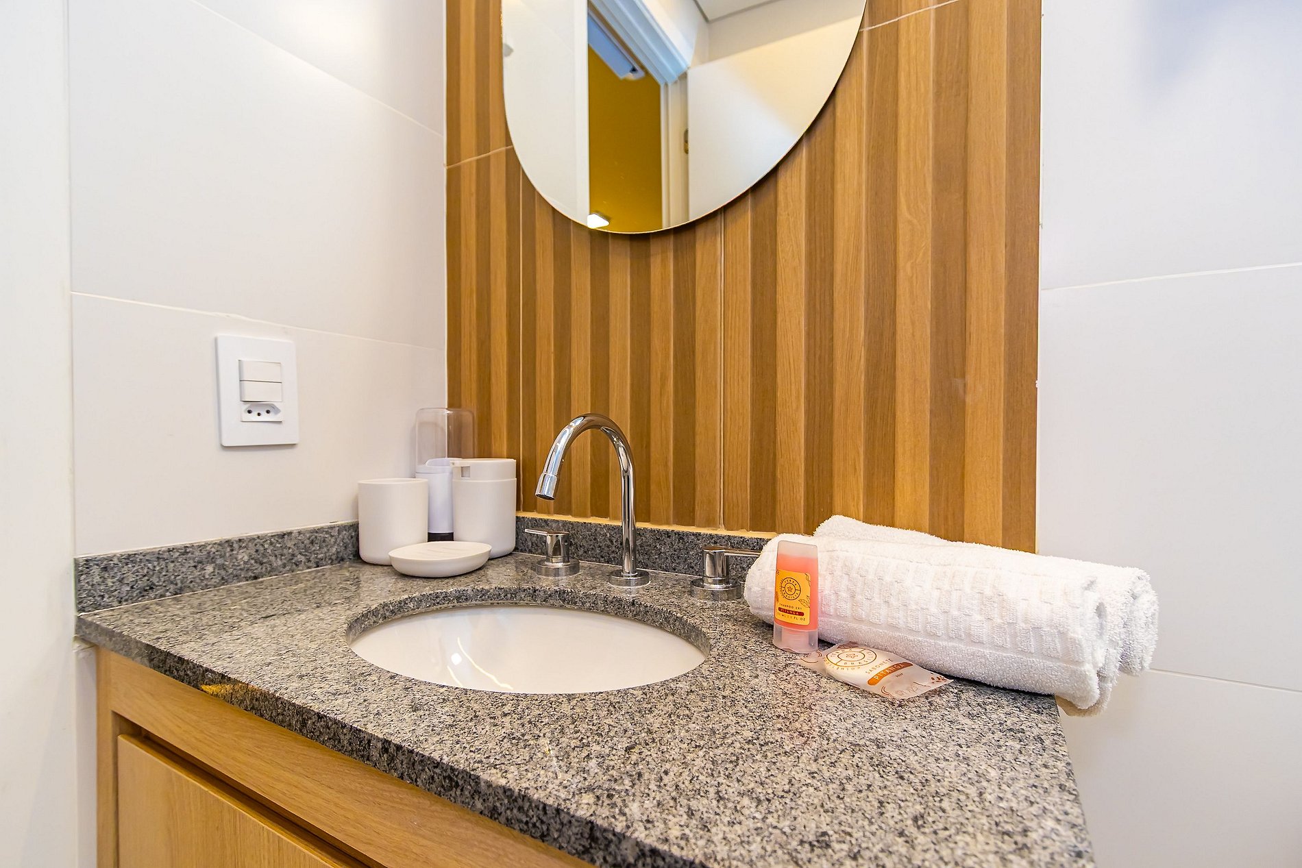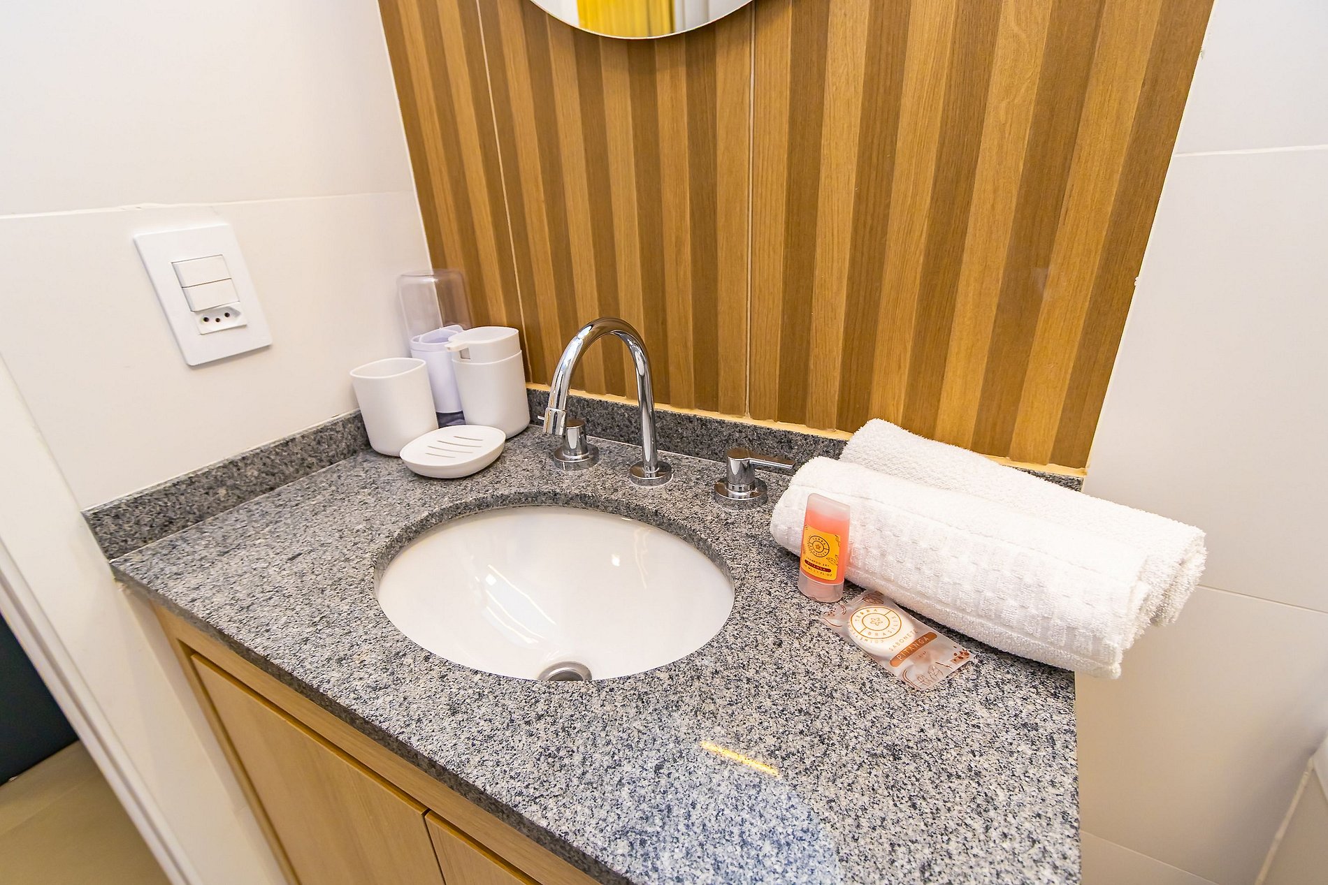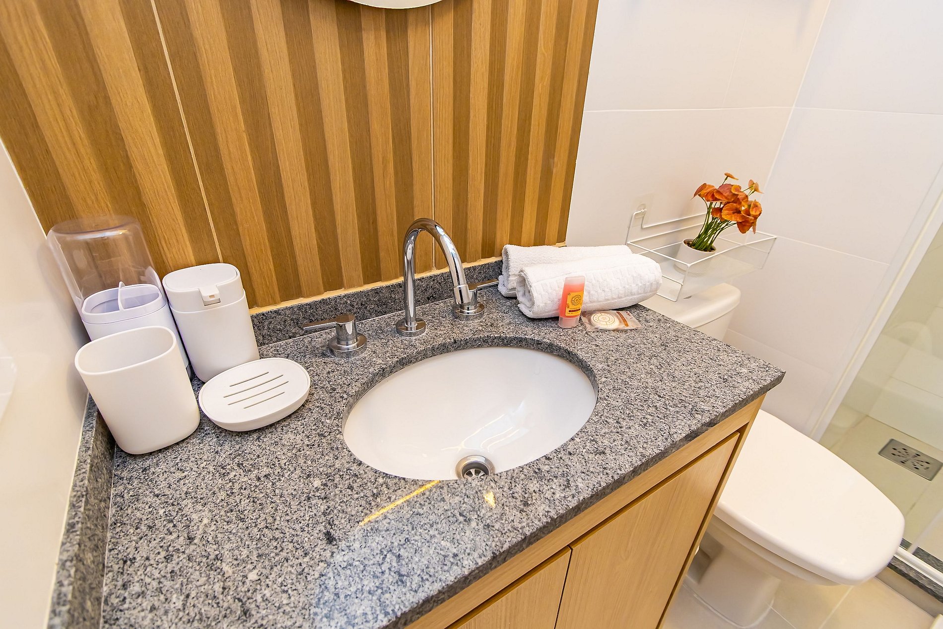 Durante a sua estadia não temos serviço de quarto e nem fazemos a reposição dos itens da sua unidade como: shampoo, condicionador, sabonete, papel higiênico, pano de prato, esponja e detergente de louça, além de pilhas do controle remoto, ar-condicionado e da fechadura eletrônica. A reposição destes itens é de responsabilidade do hóspede titular da reserva.