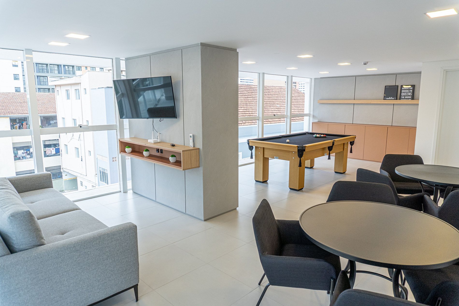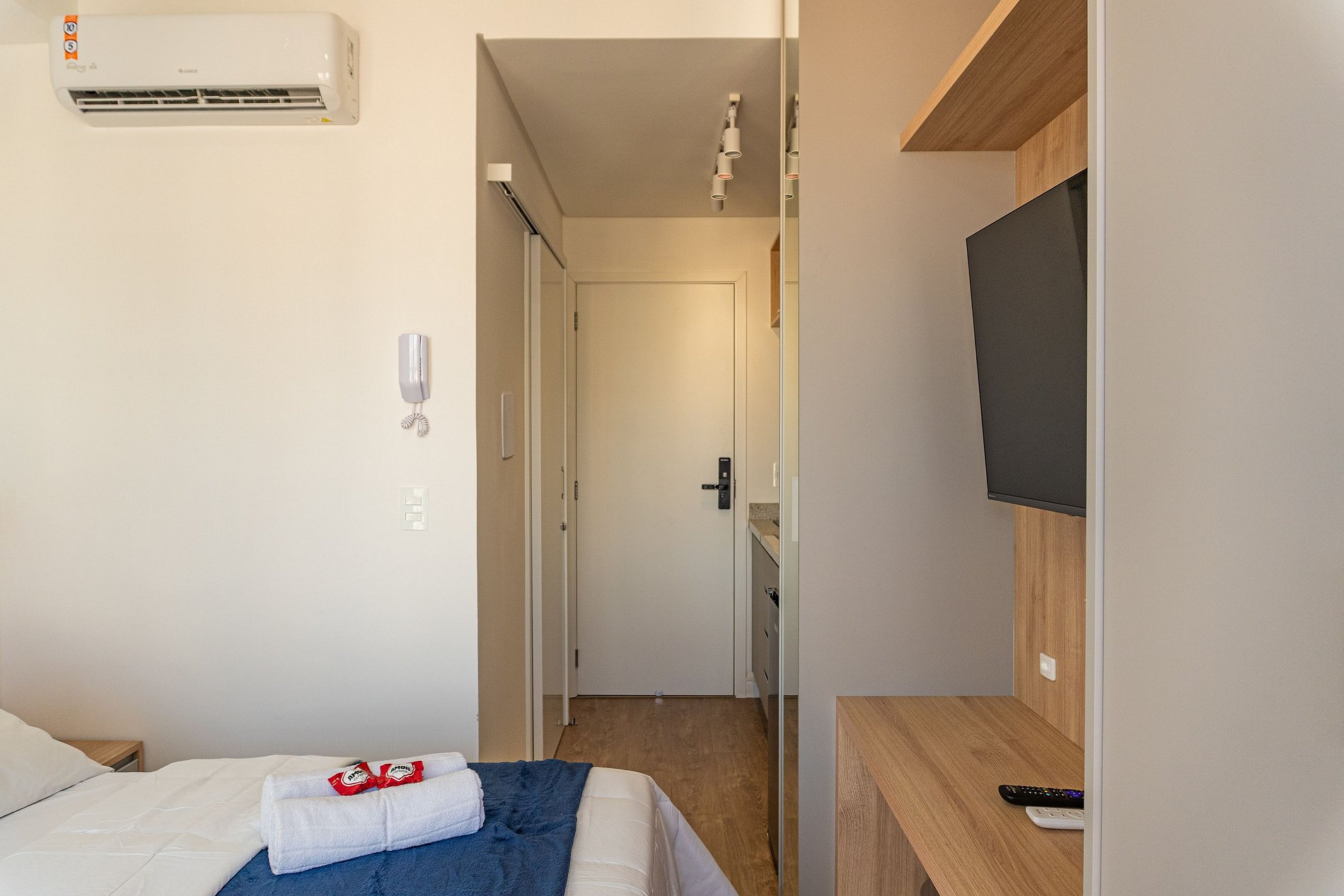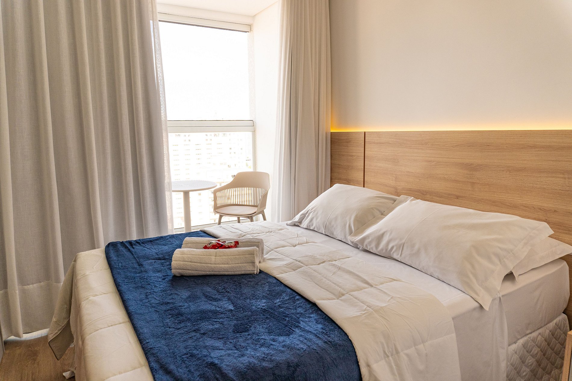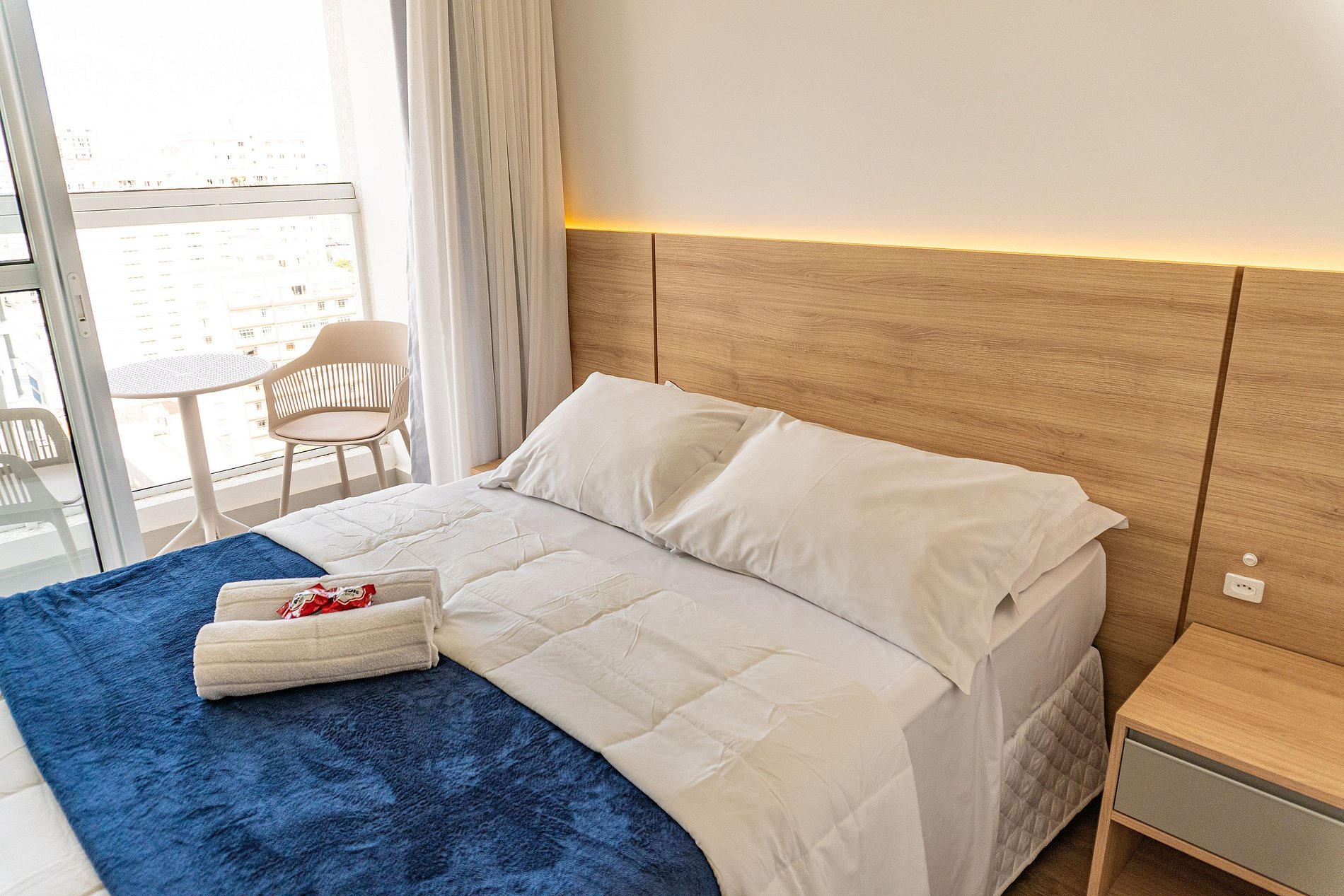 Studio moderno em edifício novo, no centro da cidade, ideal para uma estadia prática e confortável. O ambiente é funcional, bem planejado e agradável. A sacada com vista para o centro valoriza o espaço e garante ótima iluminação natural. Com localização estratégica, permite fácil acesso a qualquer região da cidade, além de estar próximo a comércio, transporte público, restaurantes e pontos turísticos.
