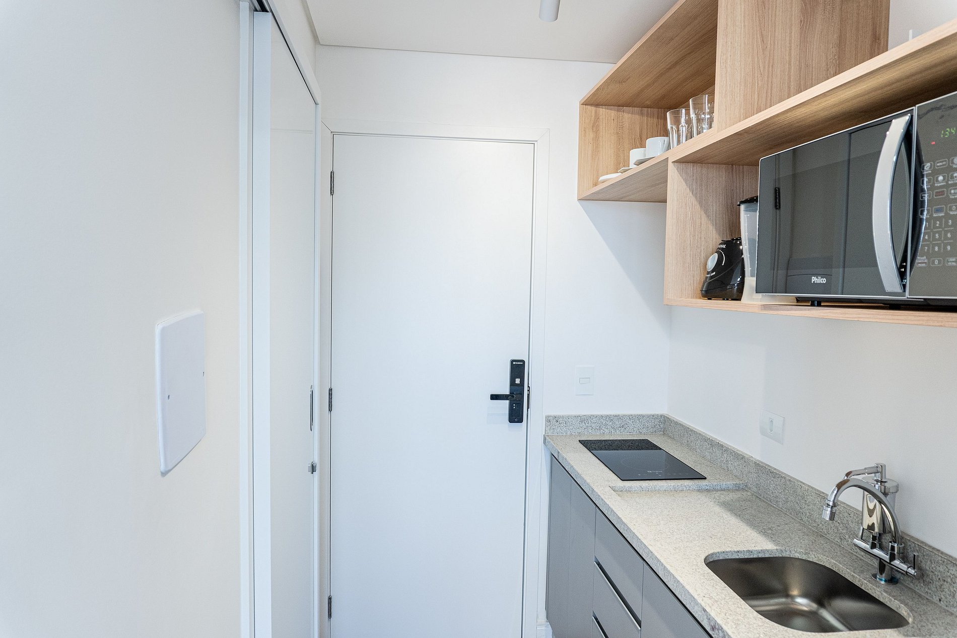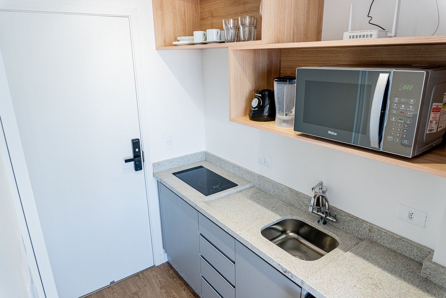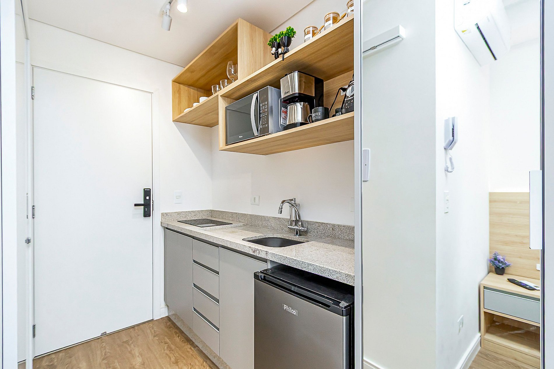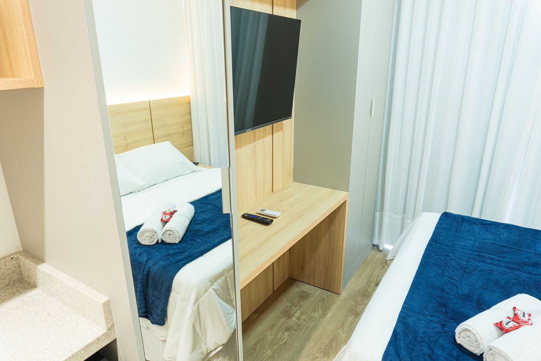 Studio moderno em edifício novo, no centro da cidade, ideal para uma estadia prática e confortável. O ambiente é funcional, bem planejado e agradável. A sacada com vista para o centro valoriza o espaço e garante ótima iluminação natural. Com localização estratégica, permite fácil acesso a qualquer região da cidade, além de estar próximo a comércio, transporte público, restaurantes e pontos turísticos.