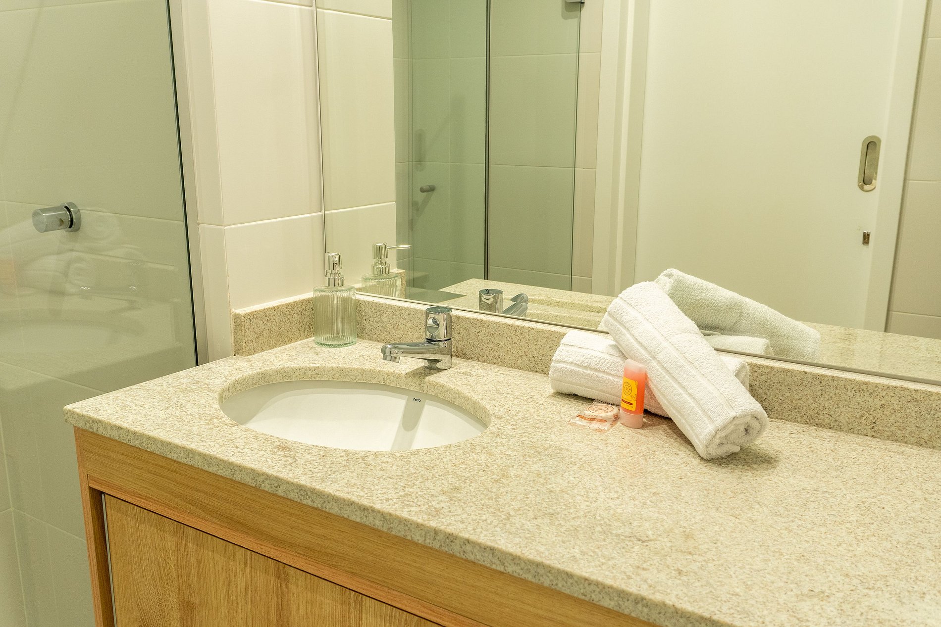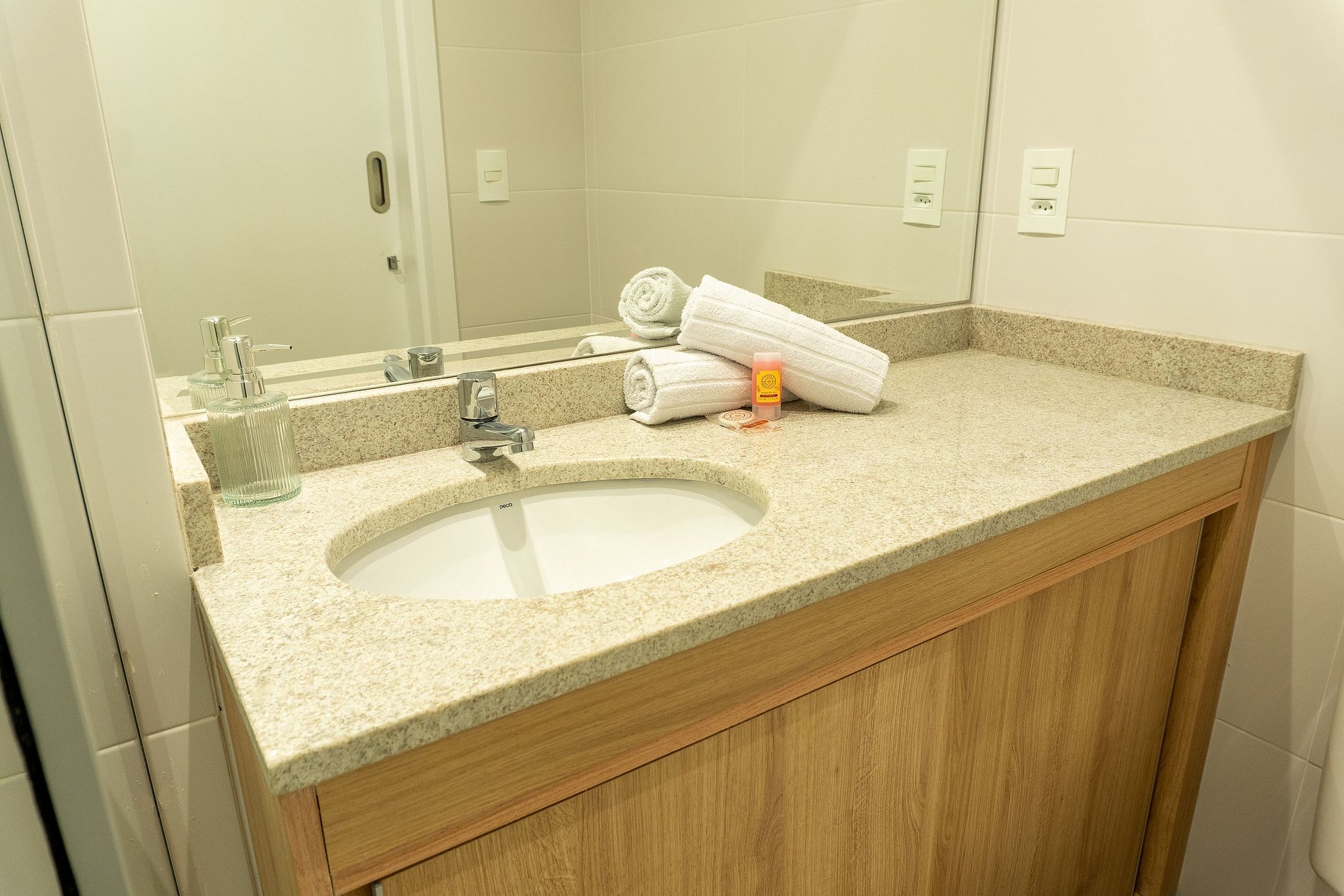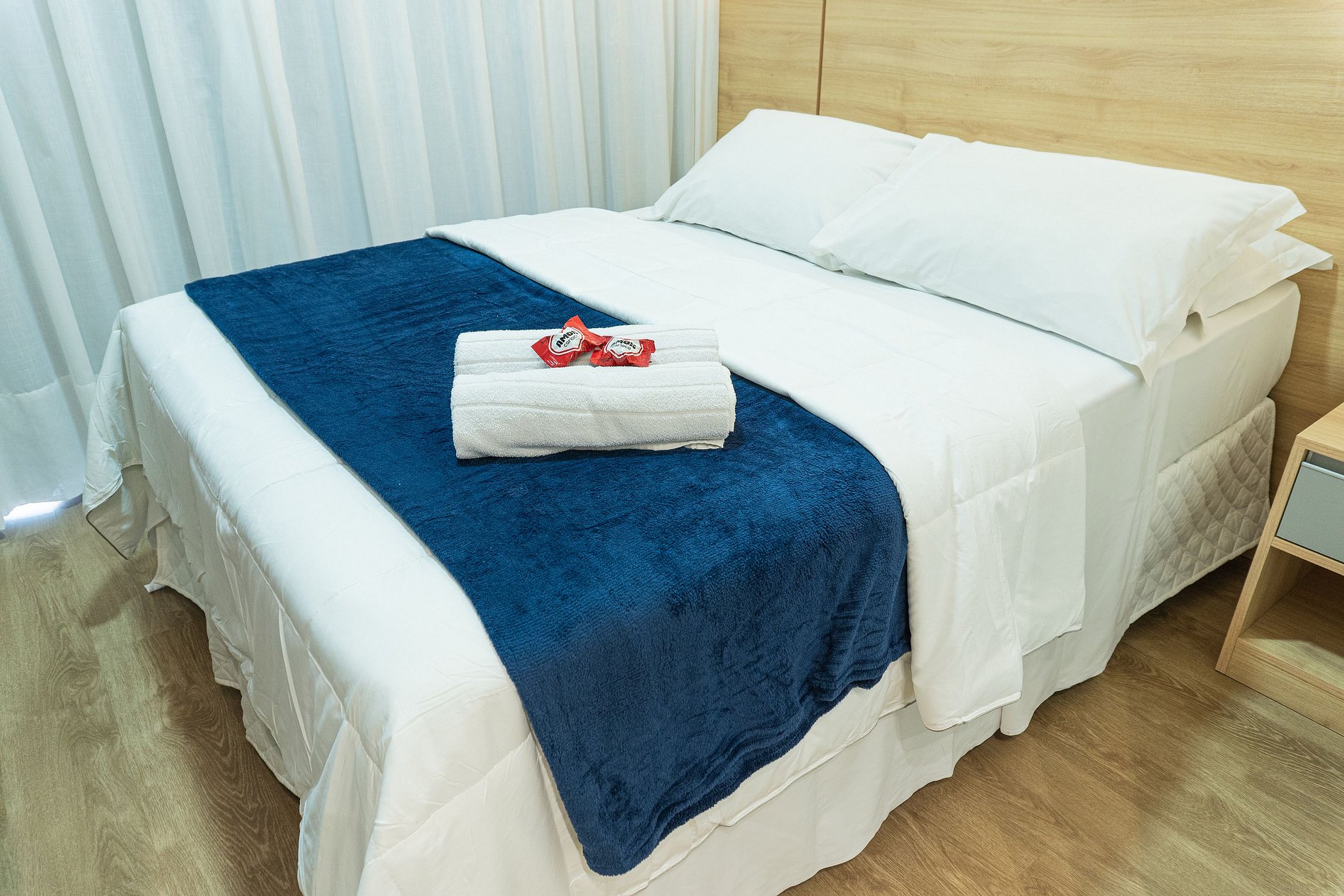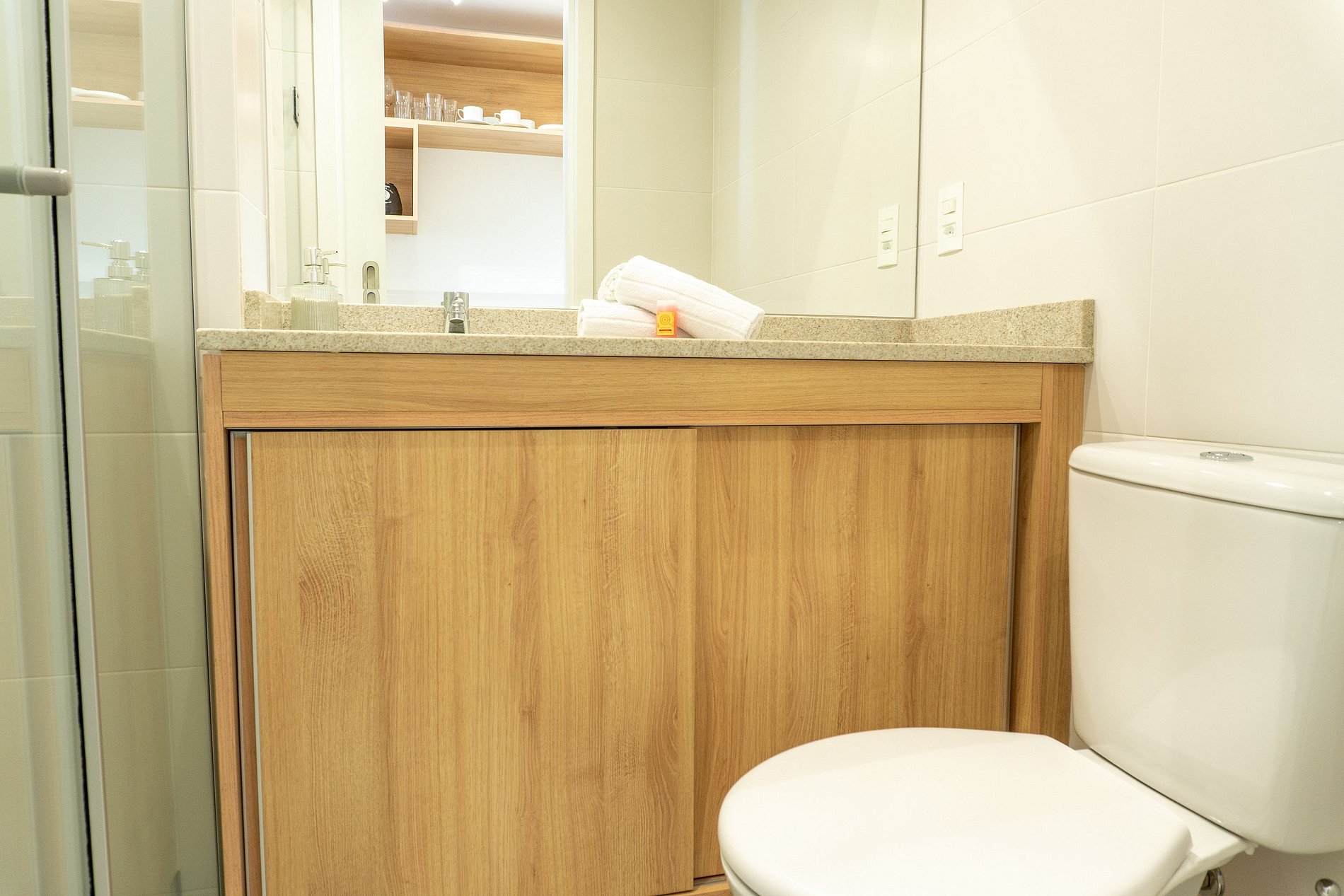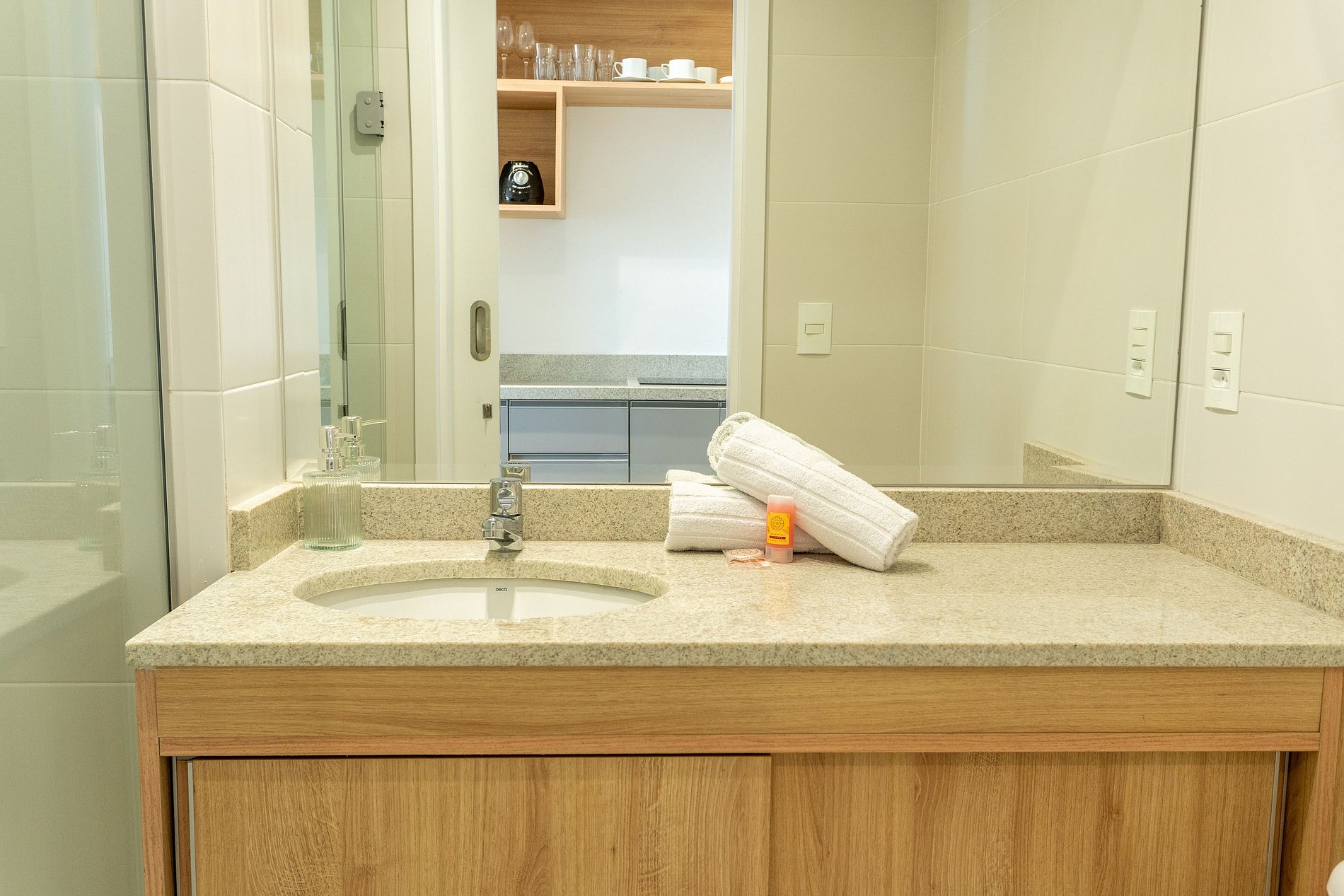 Durante a sua estadia não temos serviço de quarto e nem fazemos a reposição dos itens da sua unidade como: shampoo, condicionador, sabonete, papel higiênico, pano de prato, esponja e detergente de louça, além de pilhas do controle remoto, ar-condicionado e da fechadura eletrônica. A reposição destes itens é de responsabilidade do hóspede titular da reserva.