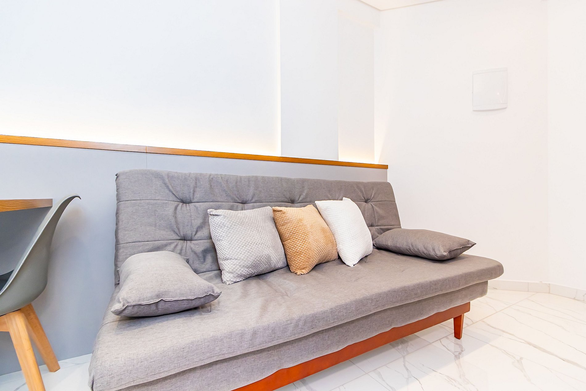Área de estar com sofá/cadeira