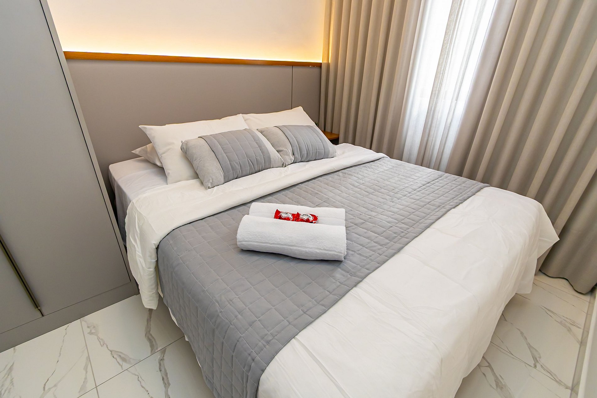 • Sim, oferecemos 2 mantas de microfibra de casal e 2 edredons de casal;
