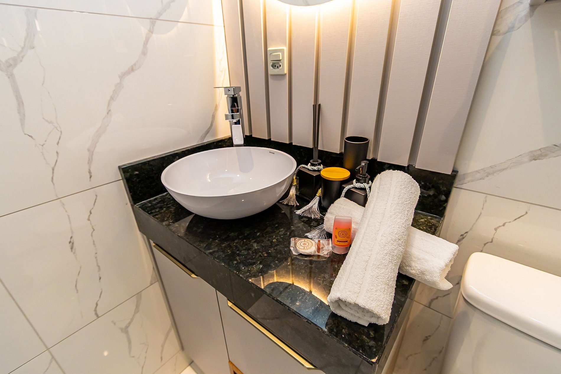 Durante a sua estadia não temos serviço de quarto e nem fazemos a reposição dos itens da sua unidade como: shampoo, condicionador, sabonete, papel higiênico, pano de prato, esponja e detergente de louça, além de pilhas do controle remoto, ar-condicionado e da fechadura eletrônica. A reposição destes itens é de responsabilidade do hóspede titular da reserva.