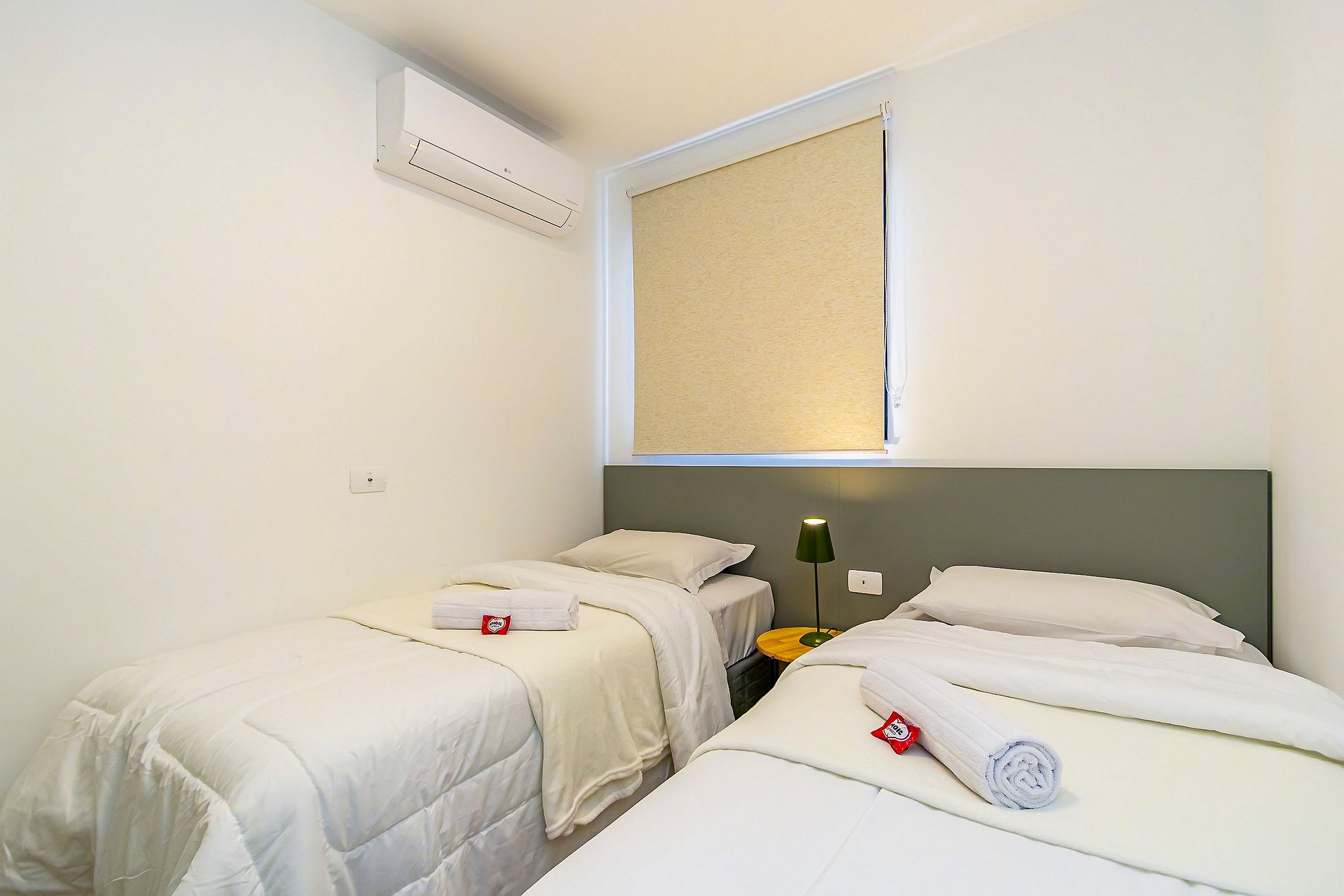 Apartamento elegante e completo, com 2 quartos: um com cama de casal e outro com duas de solteiro, ambos com ar-condicionado. Perfeito para famílias ou pequenos grupos, oferece conforto e praticidade. Possui vaga de garagem inclusa e ambientes bem planejados para uma estadia agradável. Localizado em região tranquila, com fácil acesso a toda a cidade, proporciona sossego, conveniência e mobilidade.