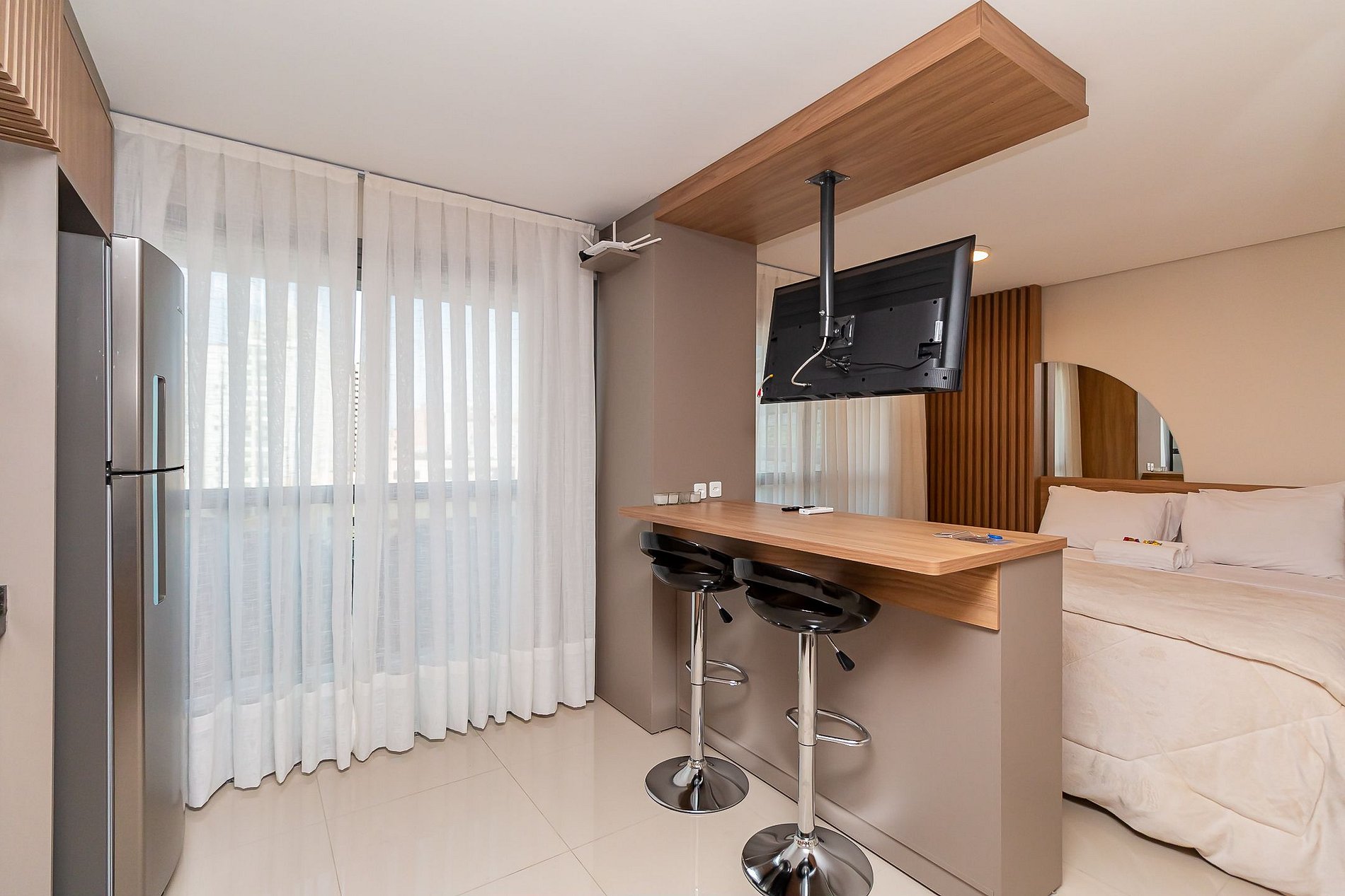 ⌂ Estúdio totalmente mobiliado que oferece as seguintes comodidades aos seus hospedes: