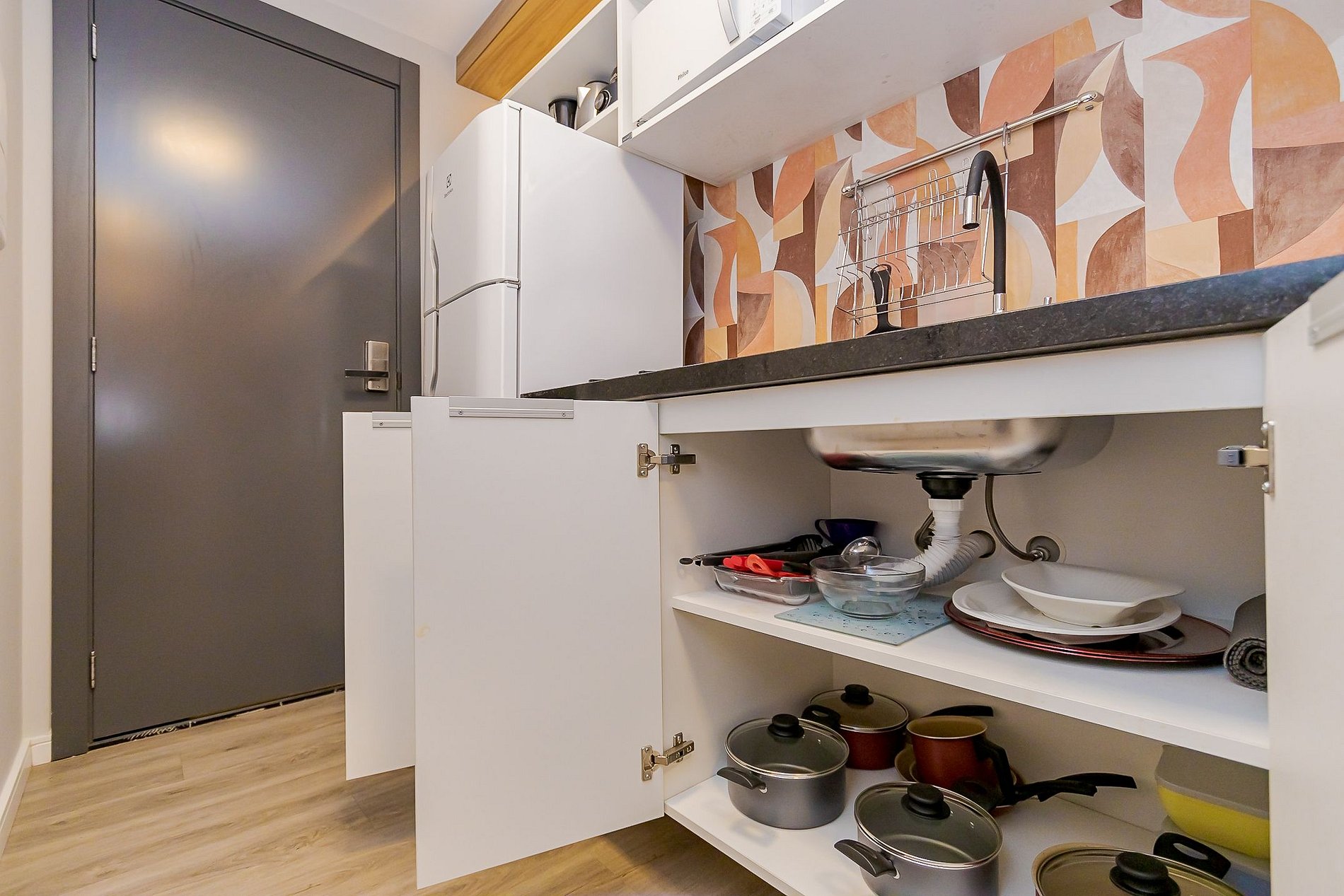 ⌂ Estúdio totalmente mobiliado que oferece as seguintes comodidades aos seus hospedes:
