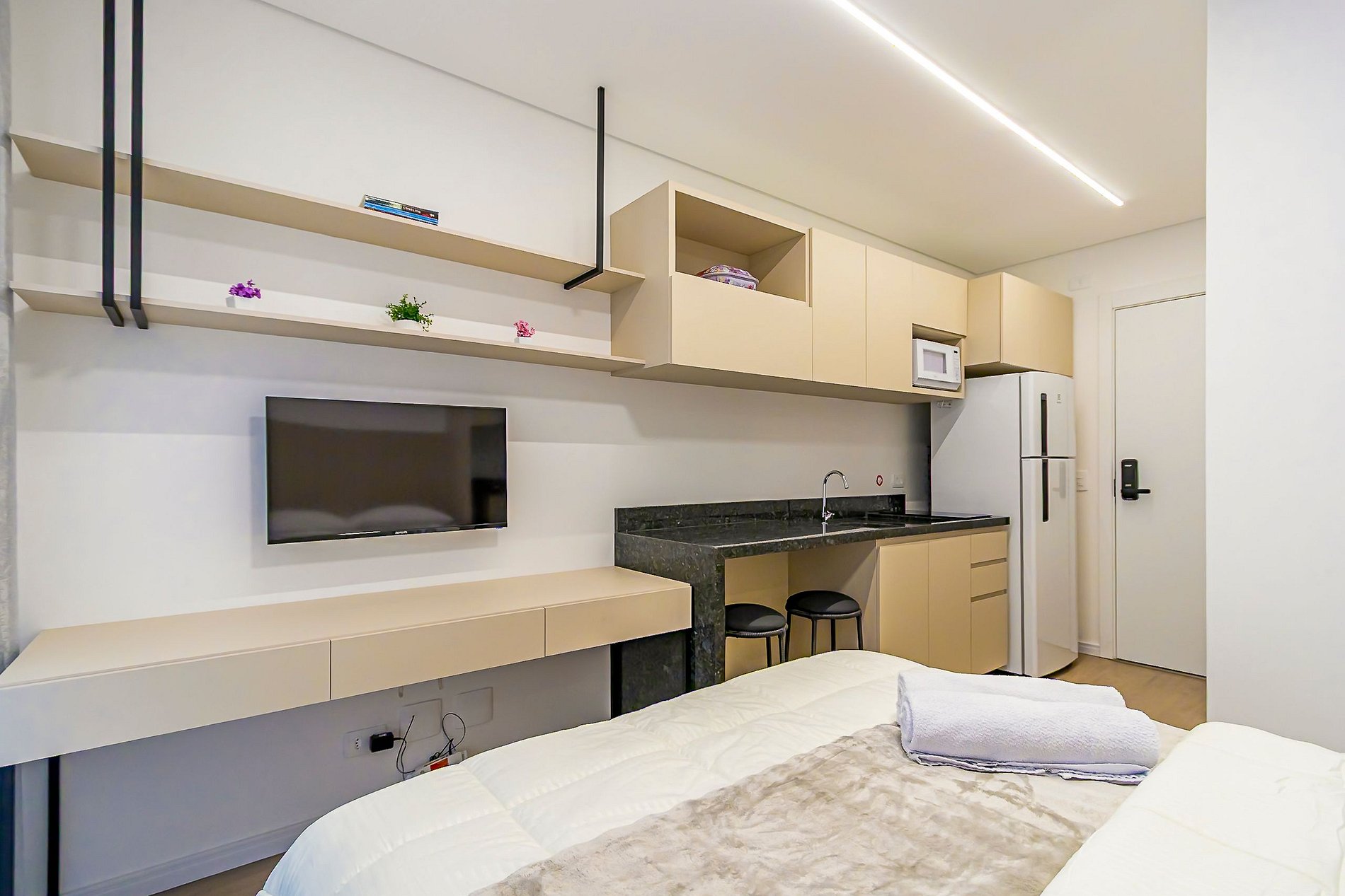 ⌂ Studio totalmente mobiliado que oferece as seguintes comodidades aos seus hóspedes:
