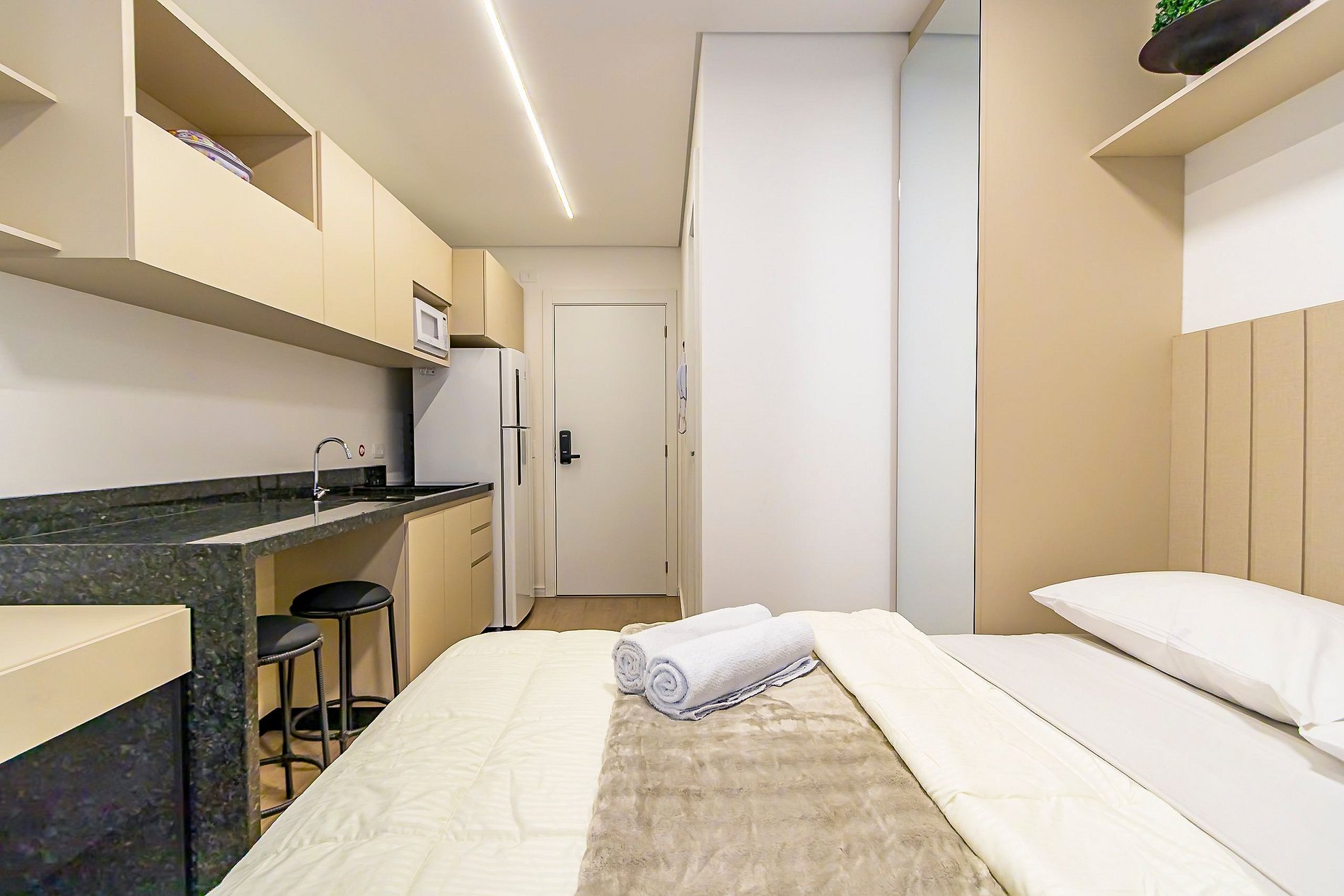 Studio moderno para até 2 pessoas, em prédio novo e super completo no centro da cidade. A localização é o grande destaque: você estará a poucos passos de tudo, com fácil acesso a qualquer região, seja para trabalho, turismo ou lazer. Próximo a transporte público, restaurantes, mercados, cafés e pontos turísticos, permite aproveitar a cidade ao máximo sem precisar de longos deslocamentos. Praticidade, mobilidade e conveniência em uma estadia confortável e bem localizada.