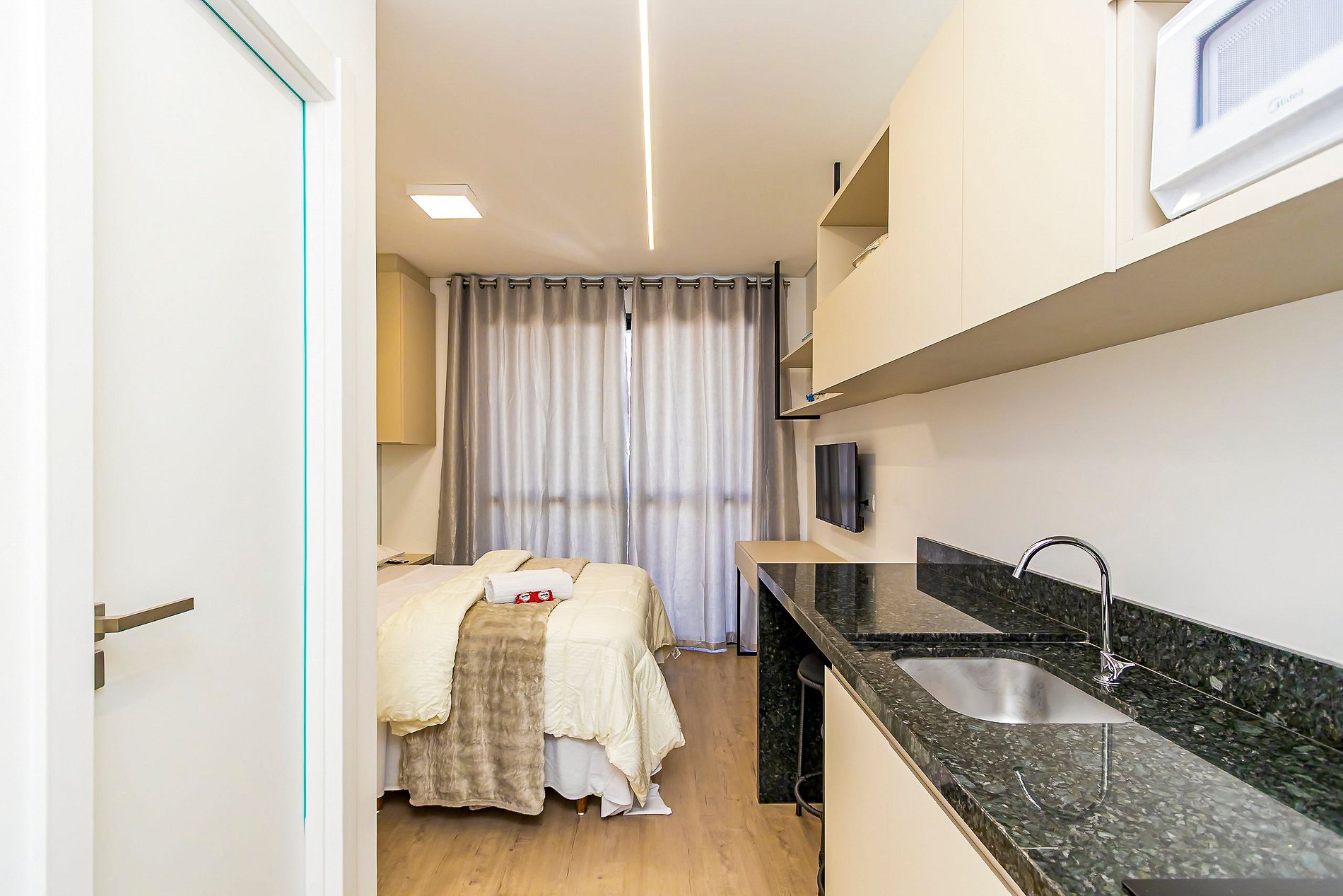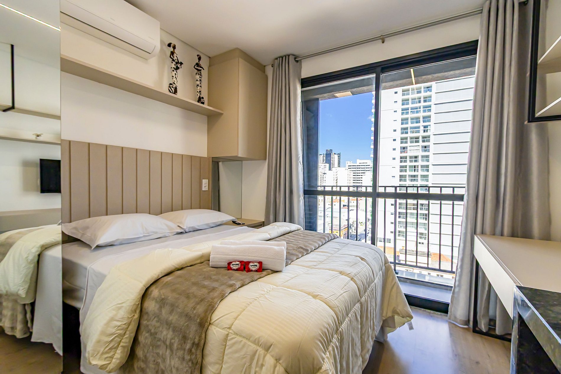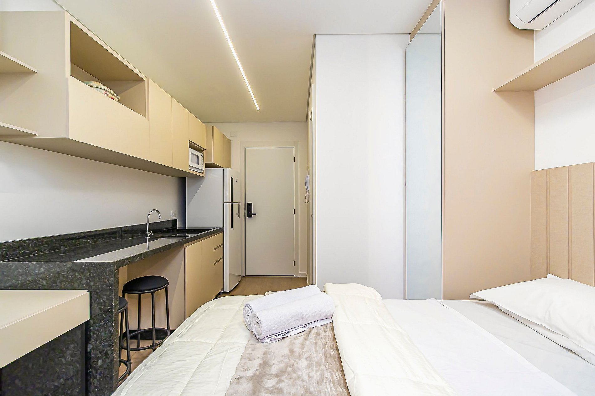 Studio moderno para até 2 pessoas, em prédio novo e super completo no centro da cidade. A localização é o grande destaque: você estará a poucos passos de tudo, com fácil acesso a qualquer região, seja para trabalho, turismo ou lazer. Próximo a transporte público, restaurantes, mercados, cafés e pontos turísticos, permite aproveitar a cidade ao máximo sem precisar de longos deslocamentos. Praticidade, mobilidade e conveniência em uma estadia confortável e bem localizada.