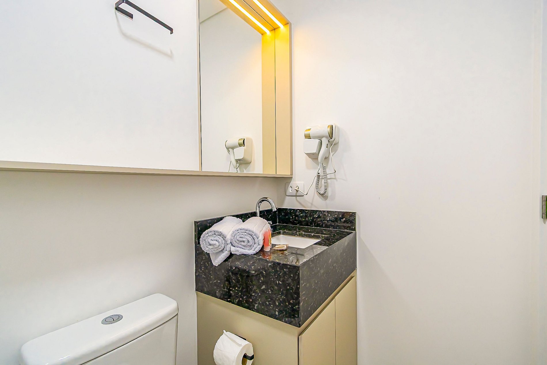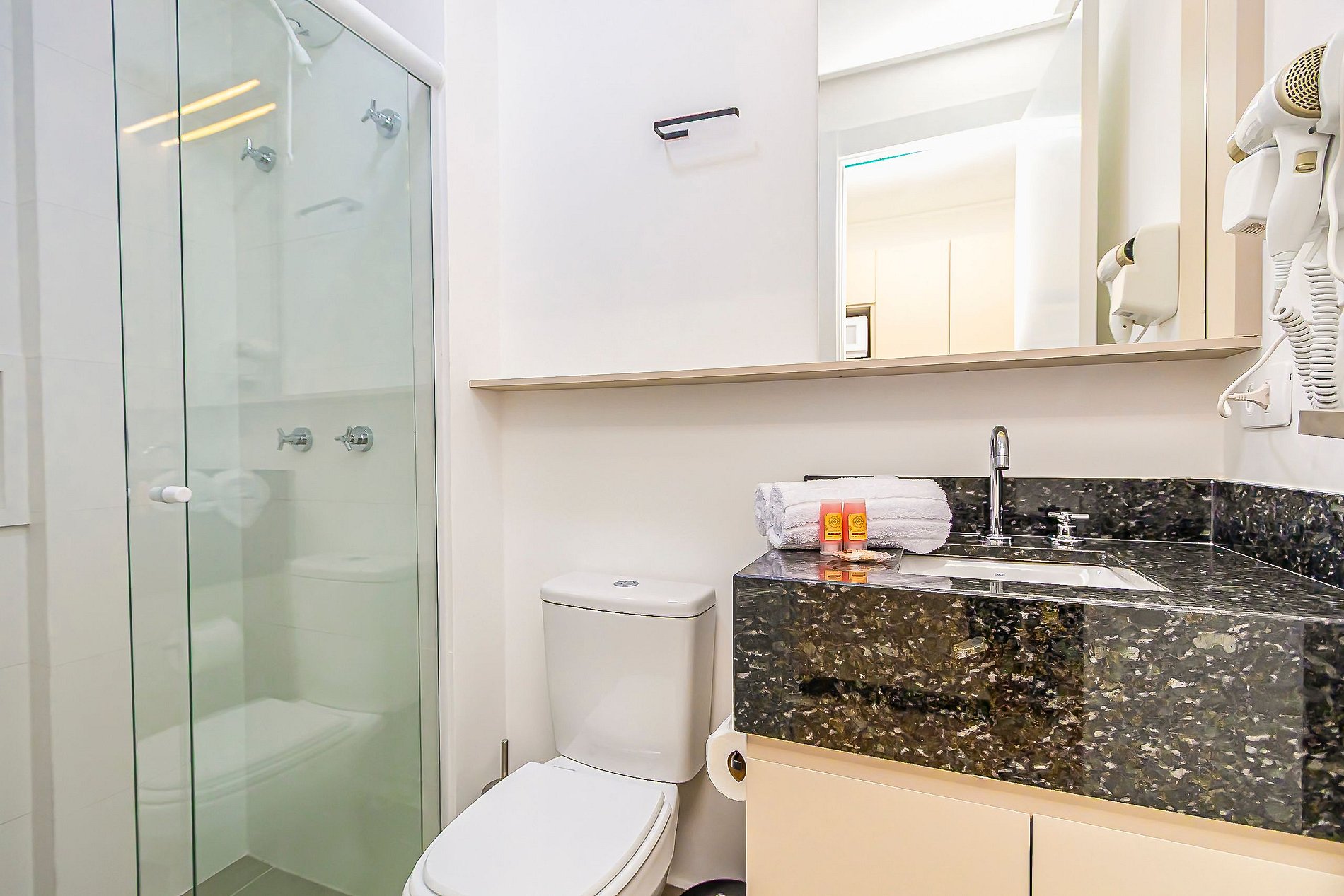 Durante a sua estadia não temos serviço de quarto e nem fazemos a reposição dos itens da sua unidade como: shampoo, condicionador, sabonete, papel higiênico, pano de prato, esponja e detergente de louça, além de pilhas do controle remoto, ar-condicionado e da fechadura eletrônica. A reposição destes itens é de responsabilidade do hóspede titular da reserva.