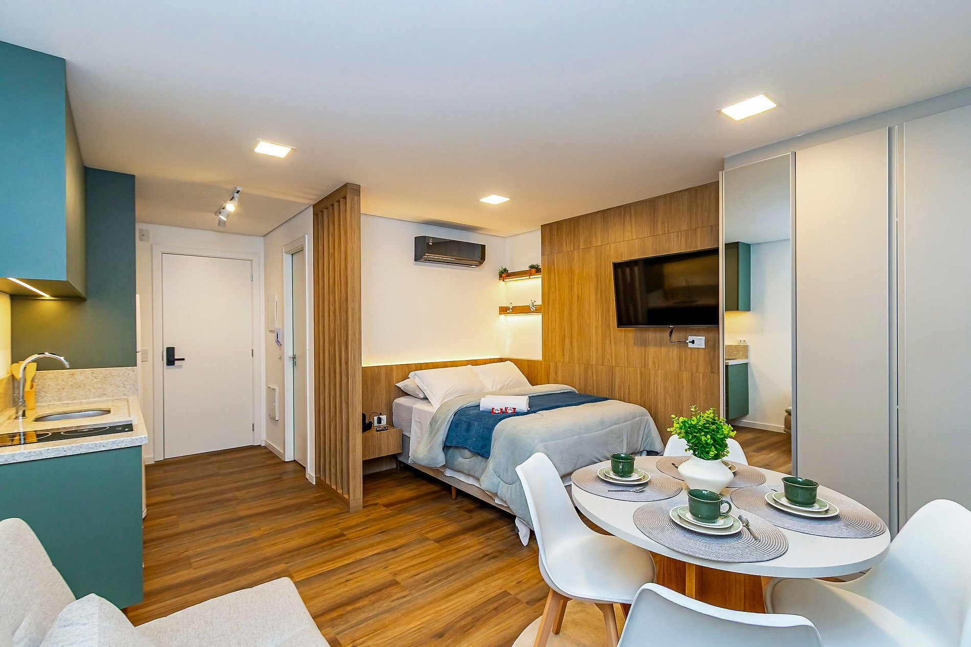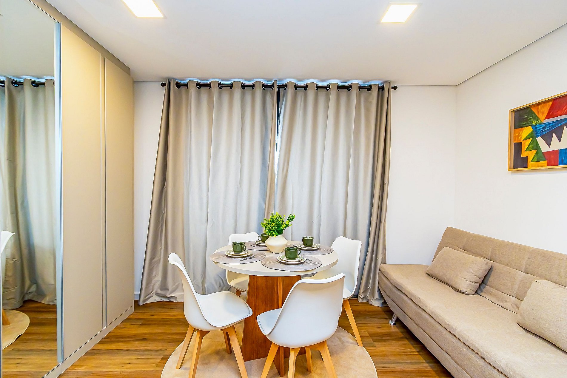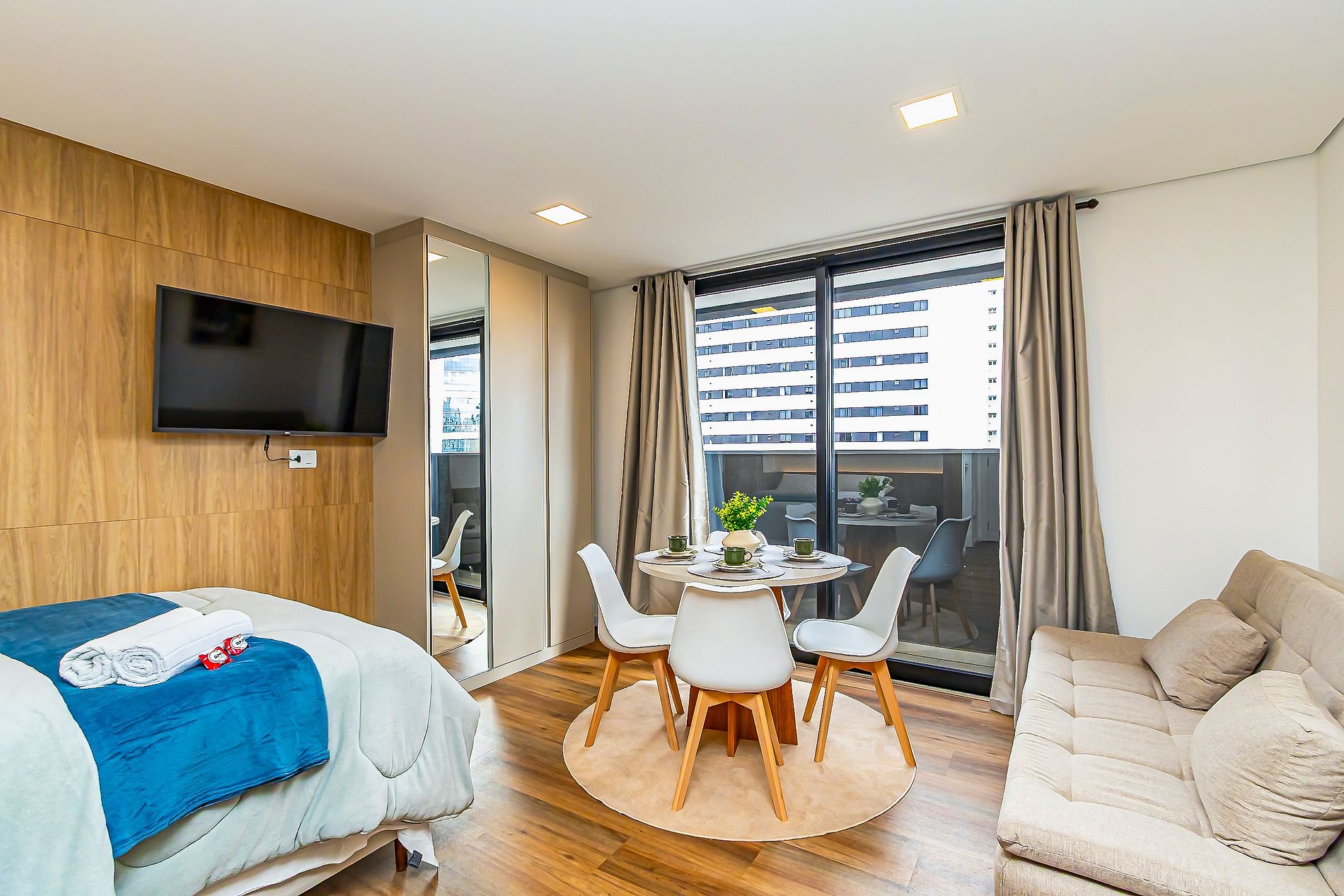 Studio moderno e completo, ideal para até 4 pessoas, localizado em um prédio com infraestrutura premium. O condomínio conta com piscina com vista para a cidade, perfeita para relaxar e aproveitar momentos únicos. O espaço é funcional, confortável e bem decorado, ideal para lazer ou trabalho. Situado em uma região vibrante de Curitiba, perto de onde a vida acontece, você estará próximo a restaurantes, bares, mercados e tudo que a cidade tem de melhor.