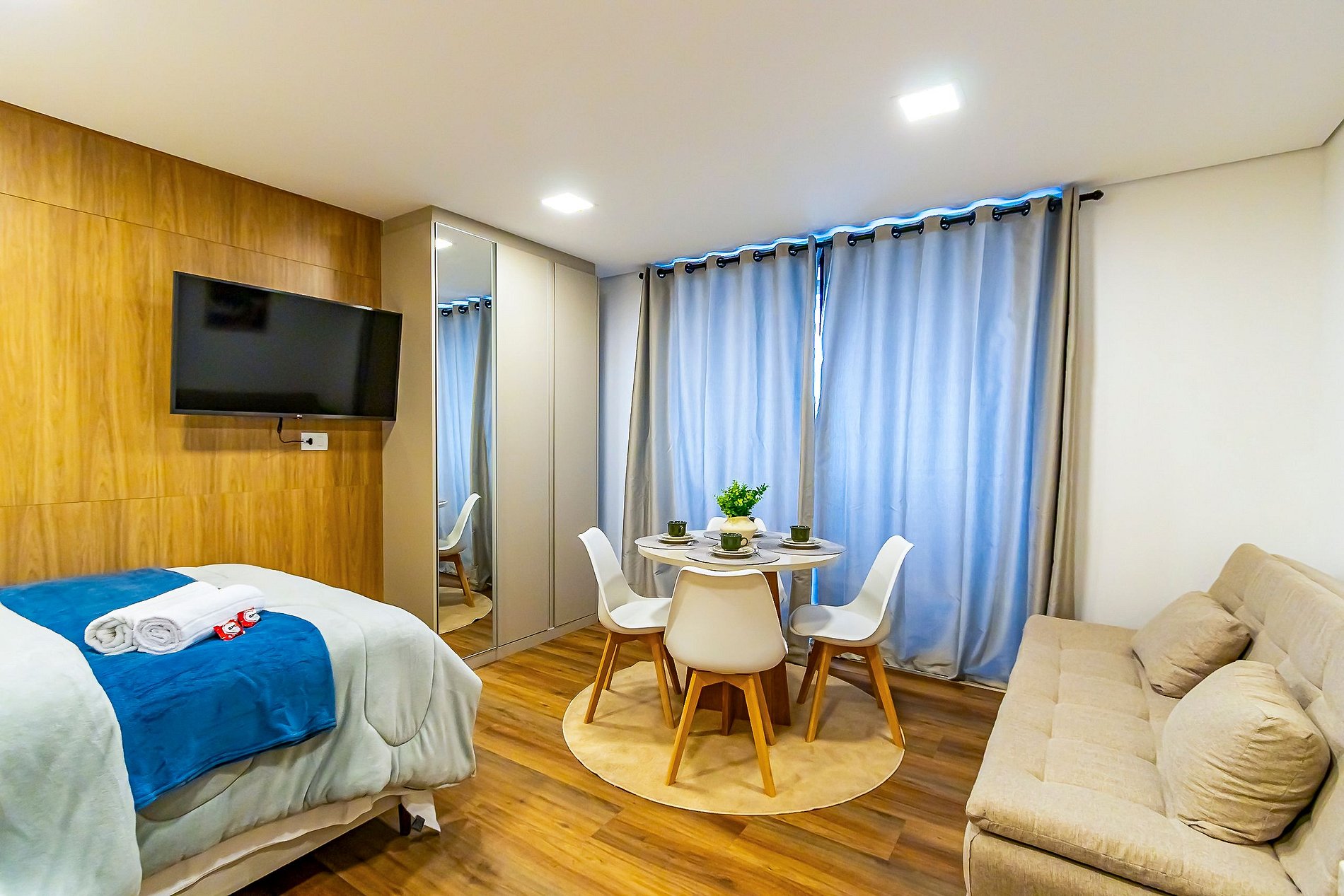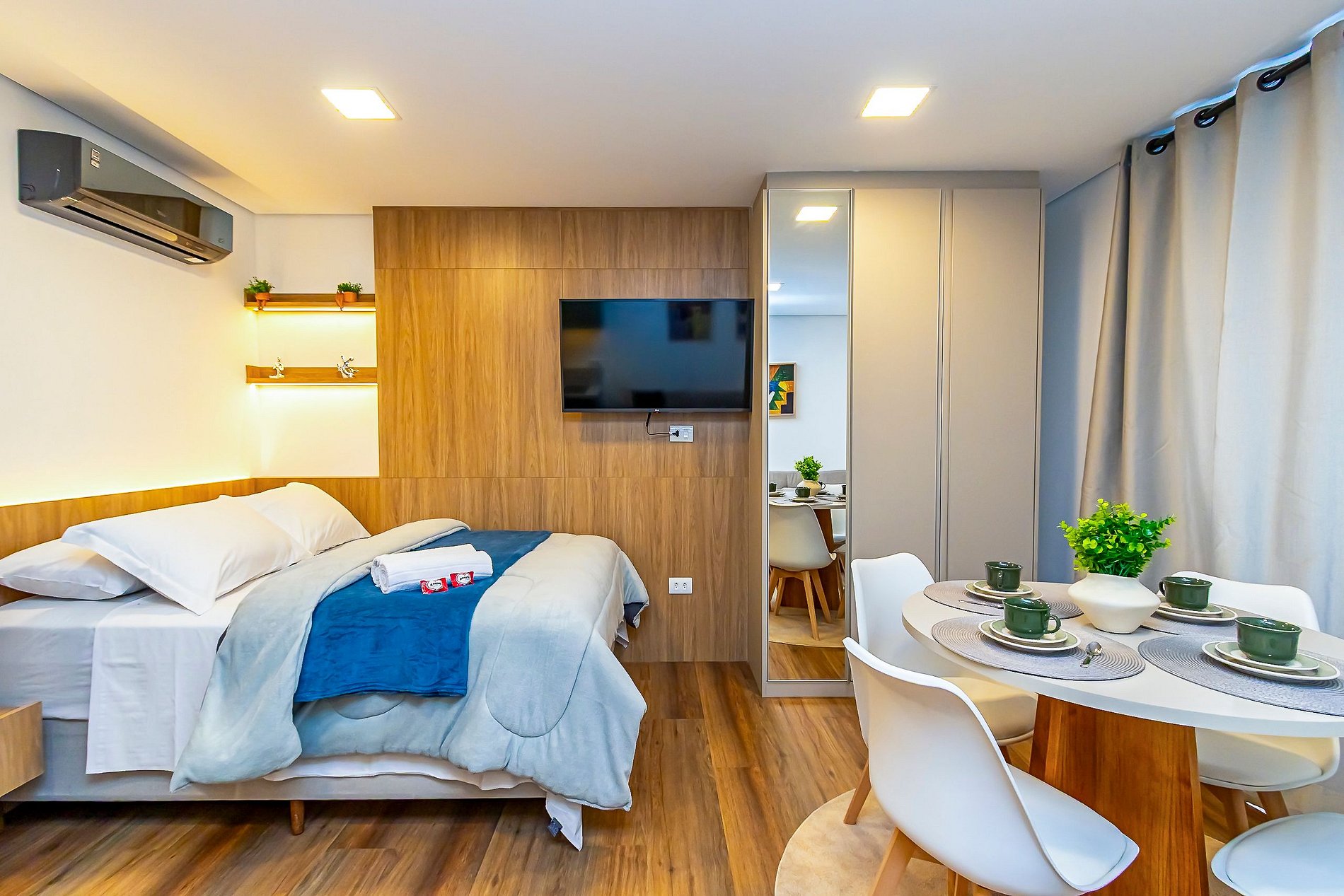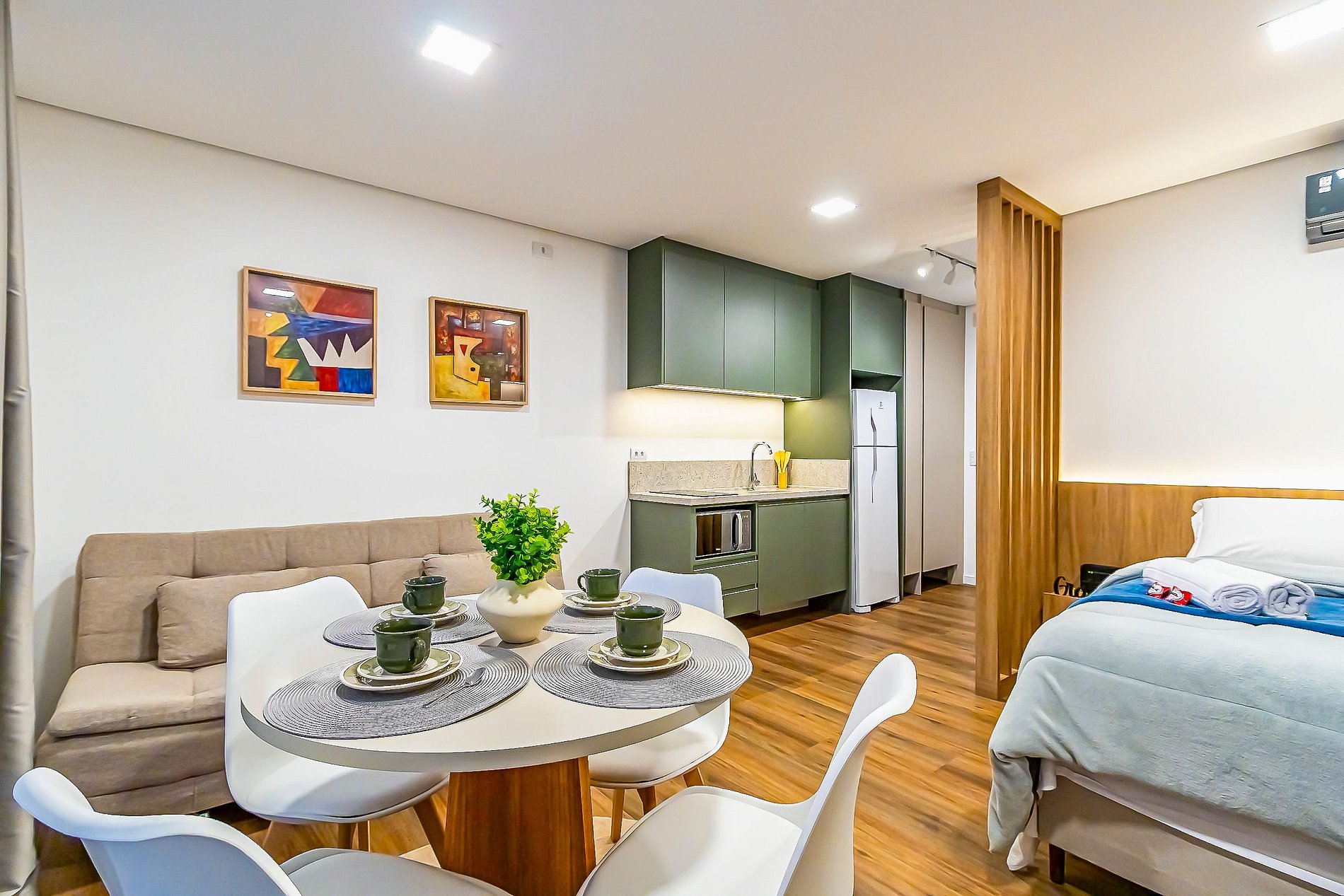 Studio moderno e completo, ideal para até 4 pessoas, localizado em um prédio com infraestrutura premium. O condomínio conta com piscina com vista para a cidade, perfeita para relaxar e aproveitar momentos únicos. O espaço é funcional, confortável e bem decorado, ideal para lazer ou trabalho. Situado em uma região vibrante de Curitiba, perto de onde a vida acontece, você estará próximo a restaurantes, bares, mercados e tudo que a cidade tem de melhor.