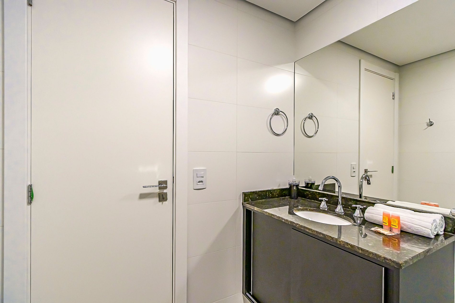Durante a sua estadia não temos serviço de quarto e nem fazemos a reposição dos itens da sua unidade como: shampoo, condicionador, sabonete, papel higiênico, pano de prato, esponja e detergente de louça, além de pilhas do controle remoto, ar-condicionado e da fechadura eletrônica. A reposição destes itens é de responsabilidade do hóspede titular da reserva.