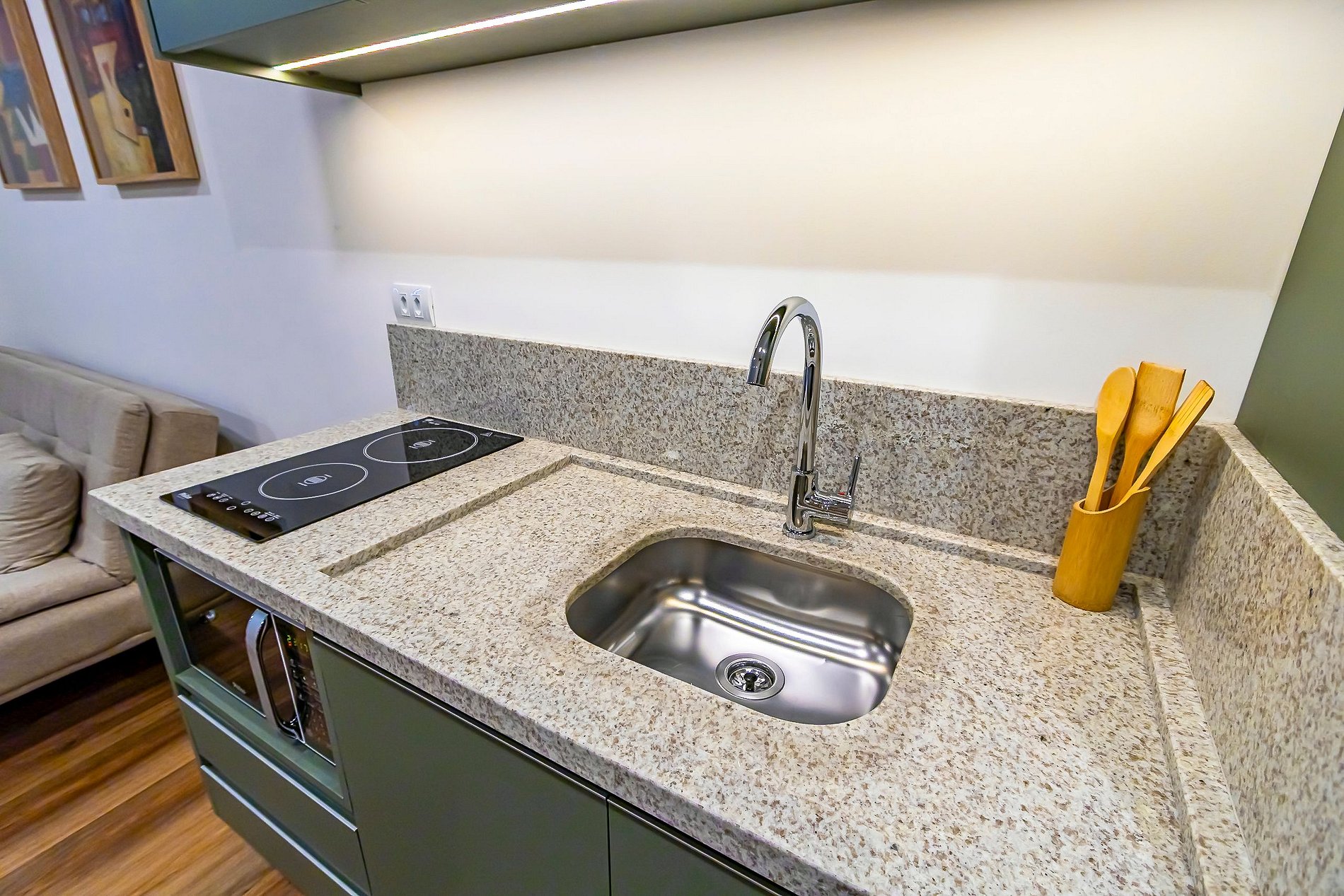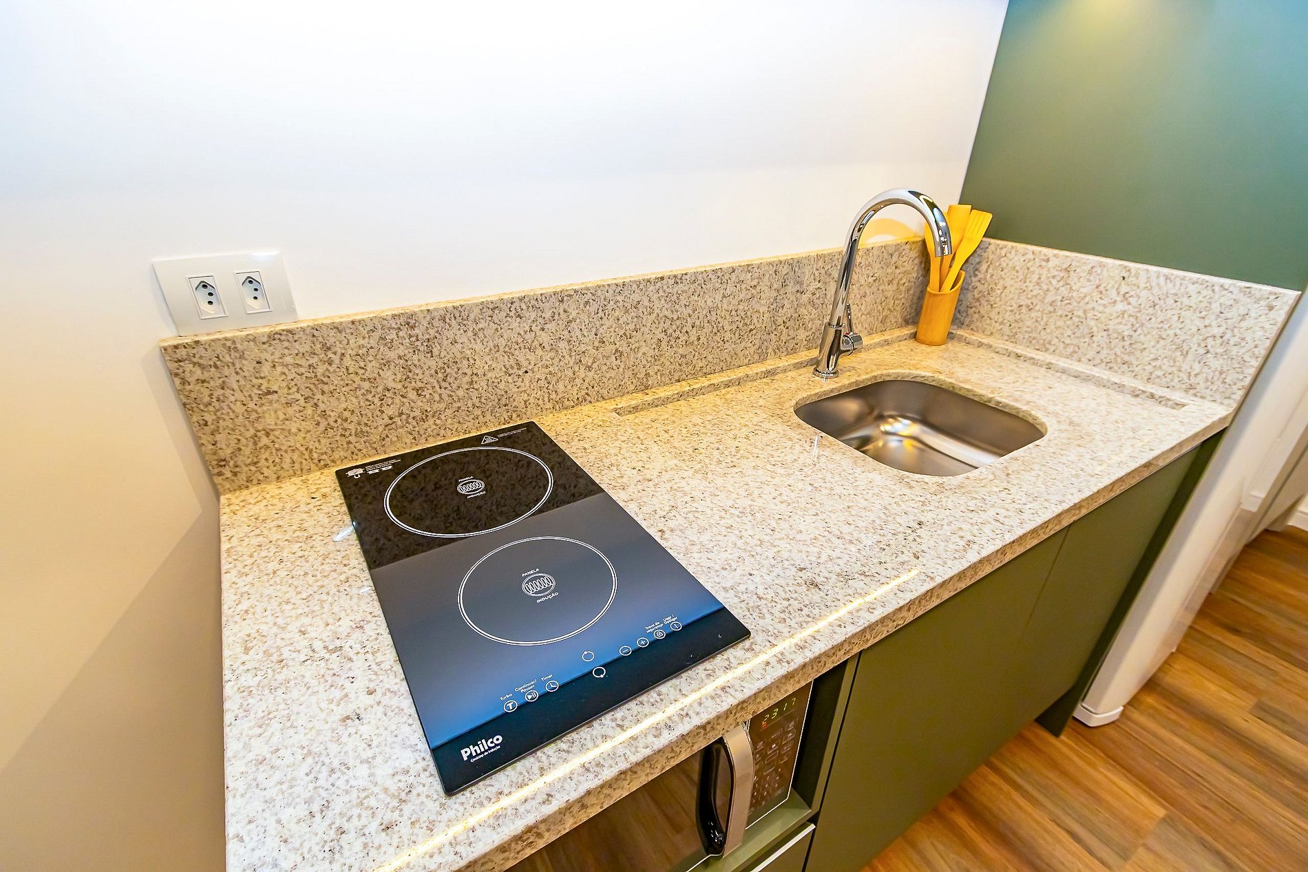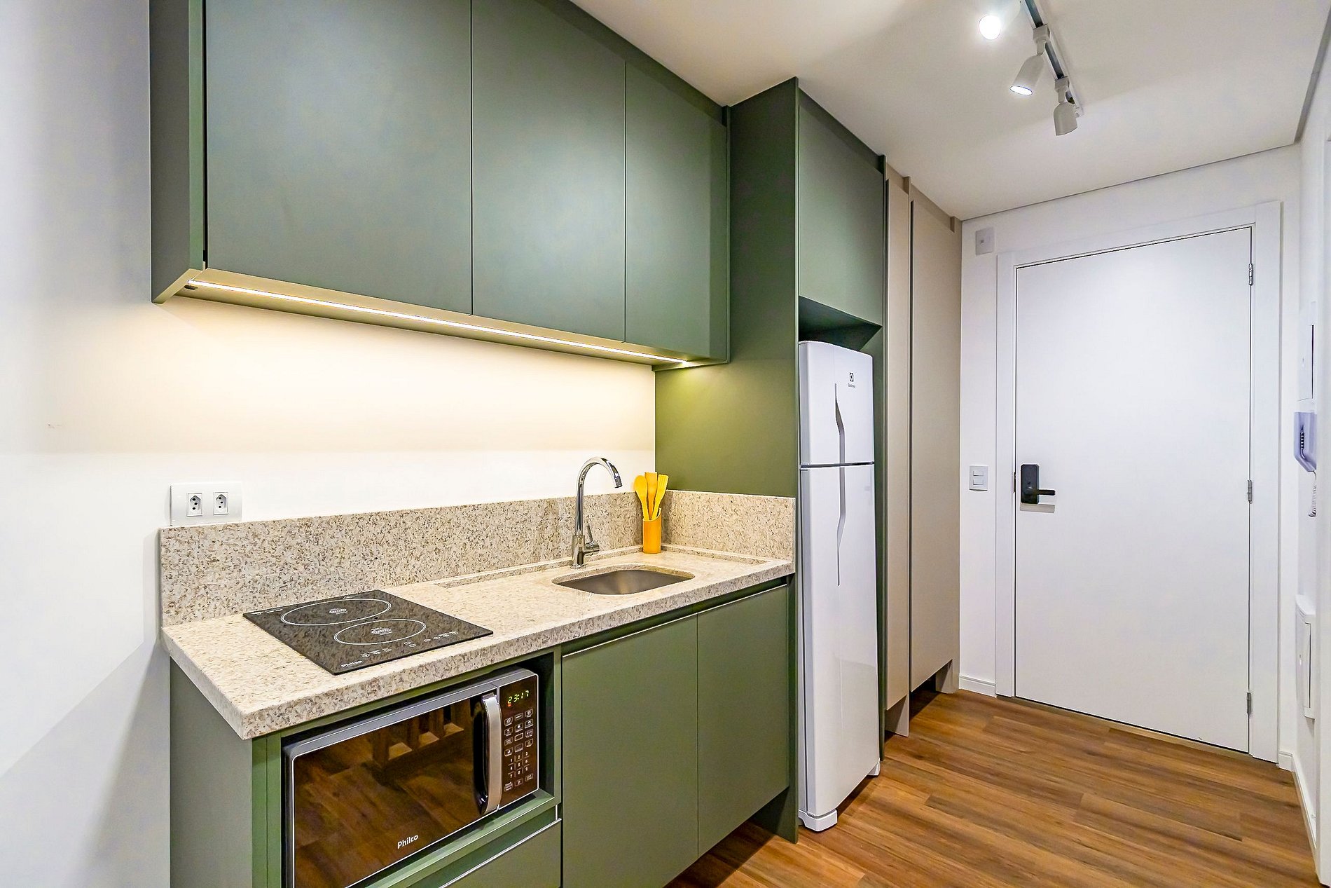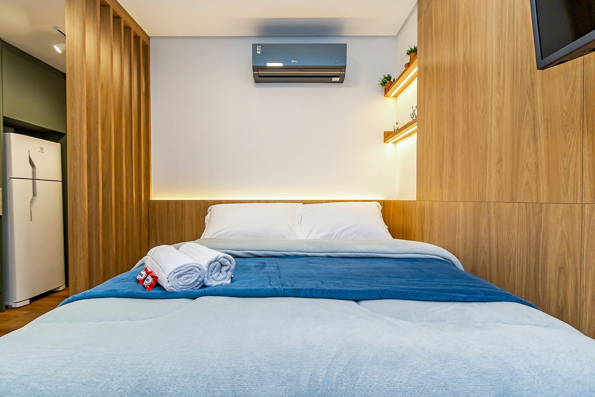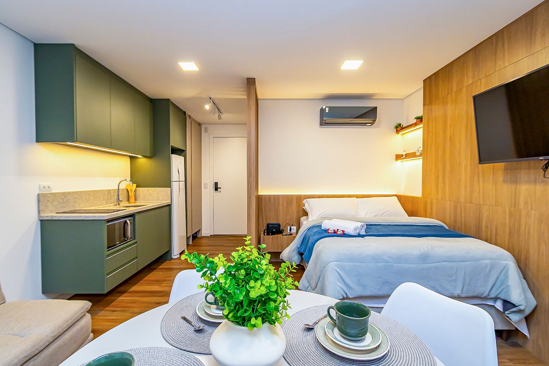 ⌂ Studio totalmente mobiliado que oferece as seguintes comodidades aos seus hóspedes: