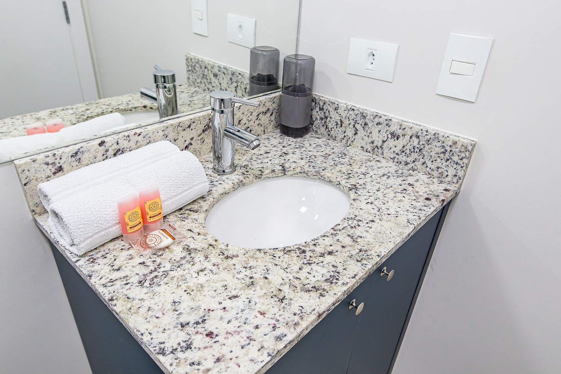 Durante a sua estadia não temos serviço de quarto e nem fazemos a reposição dos itens da sua unidade como: shampoo, condicionador, sabonete, papel higiênico, pano de prato, esponja e detergente de louça, além de pilhas do controle remoto, ar-condicionado e da fechadura eletrônica. A reposição destes itens é de responsabilidade do hóspede titular da reserva.