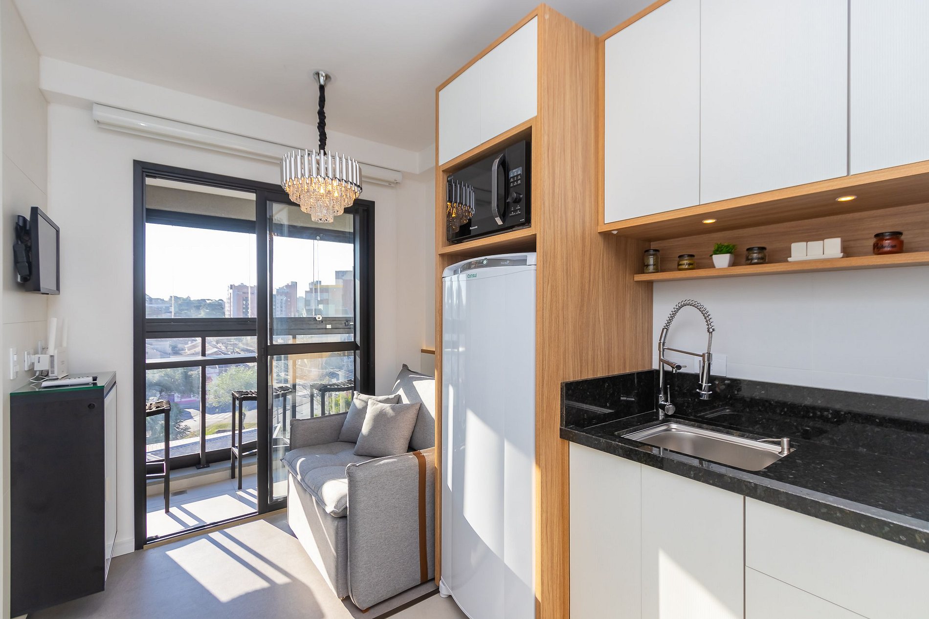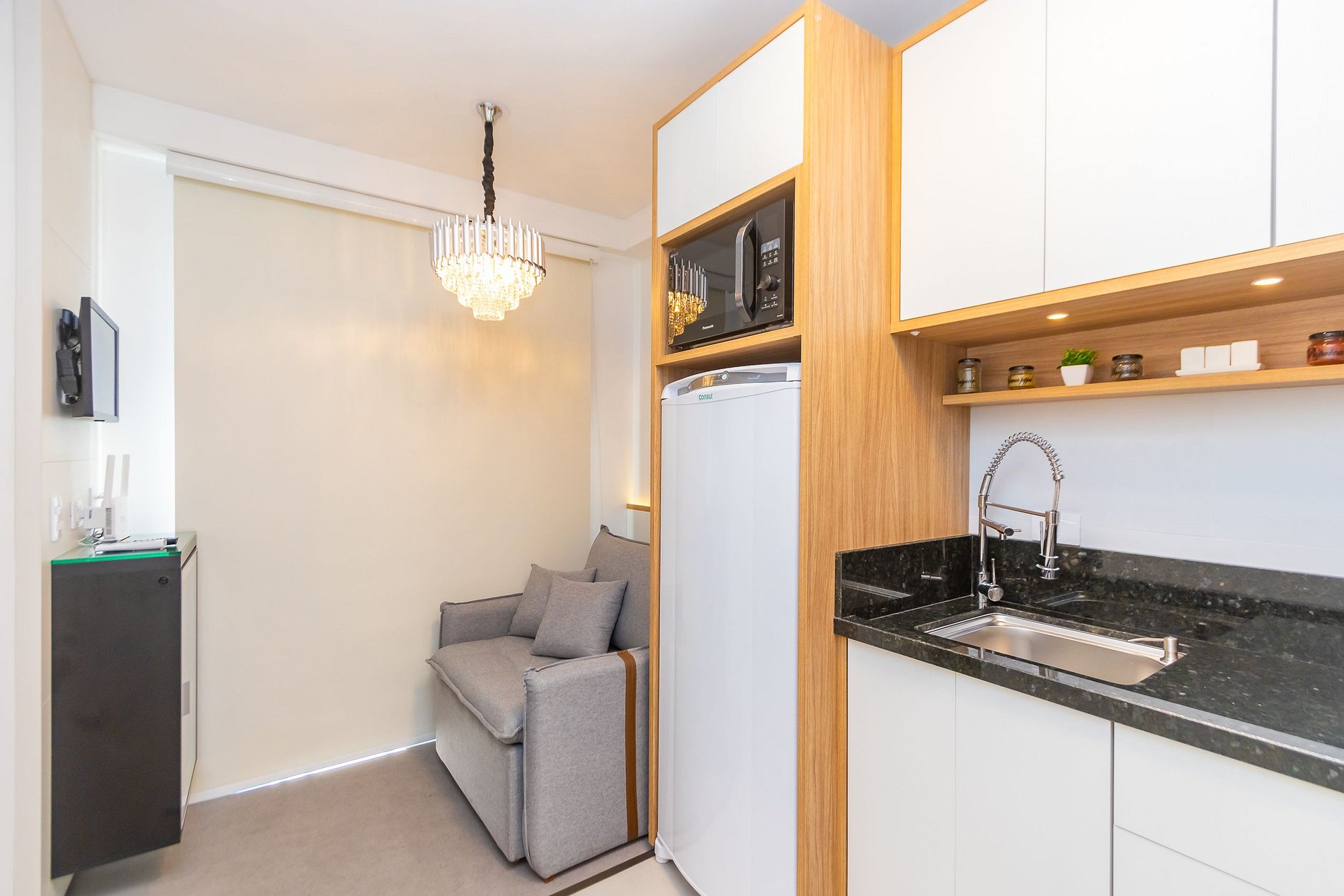 ⌂ Estúdio totalmente mobiliado que oferece as seguintes comodidades aos seus hóspedes: