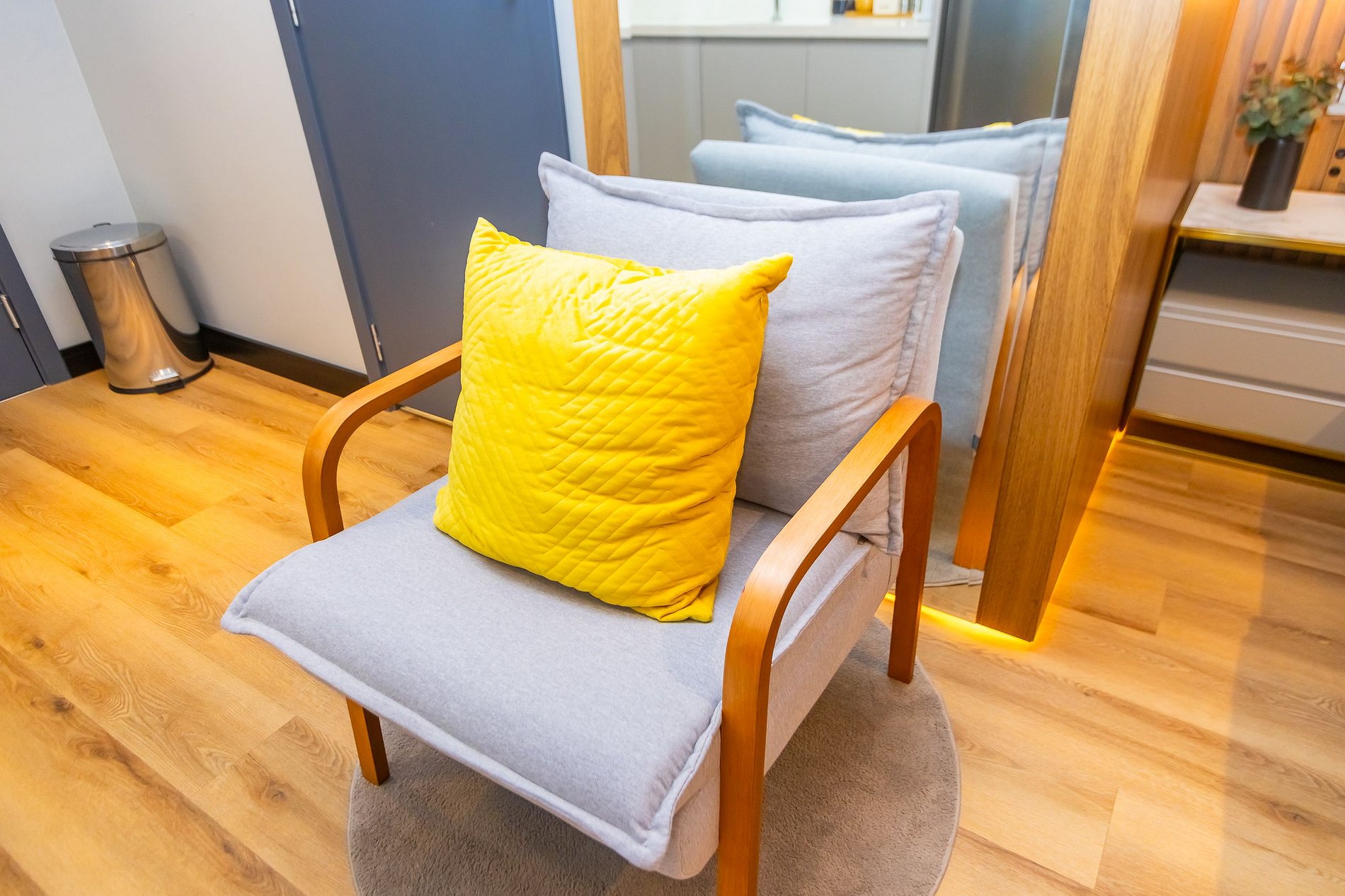 Área de estar com sofá/cadeira