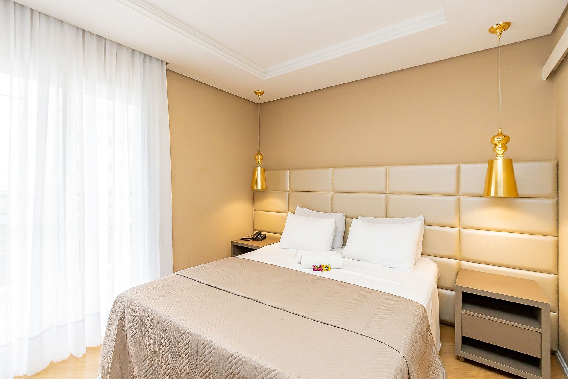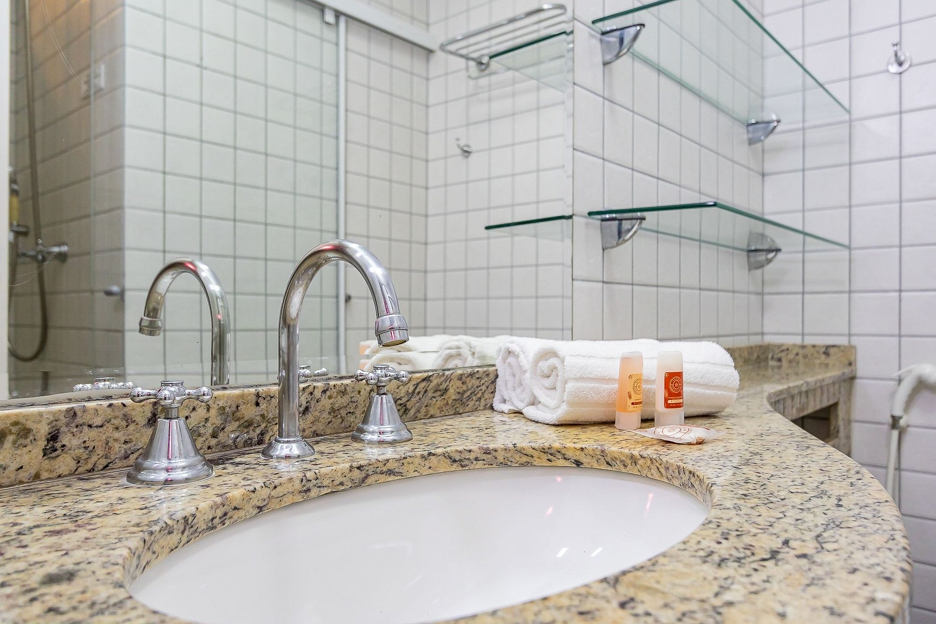 Durante a sua estadia não temos serviço de quarto e nem fazemos a reposição dos itens da sua unidade como: shampoo, condicionador, sabonete, papel higiênico, pano de prato, esponja e detergente de louça, além de pilhas do controle remoto, ar-condicionado e da fechadura eletrônica. A reposição destes itens é de responsabilidade do hóspede titular da reserva.