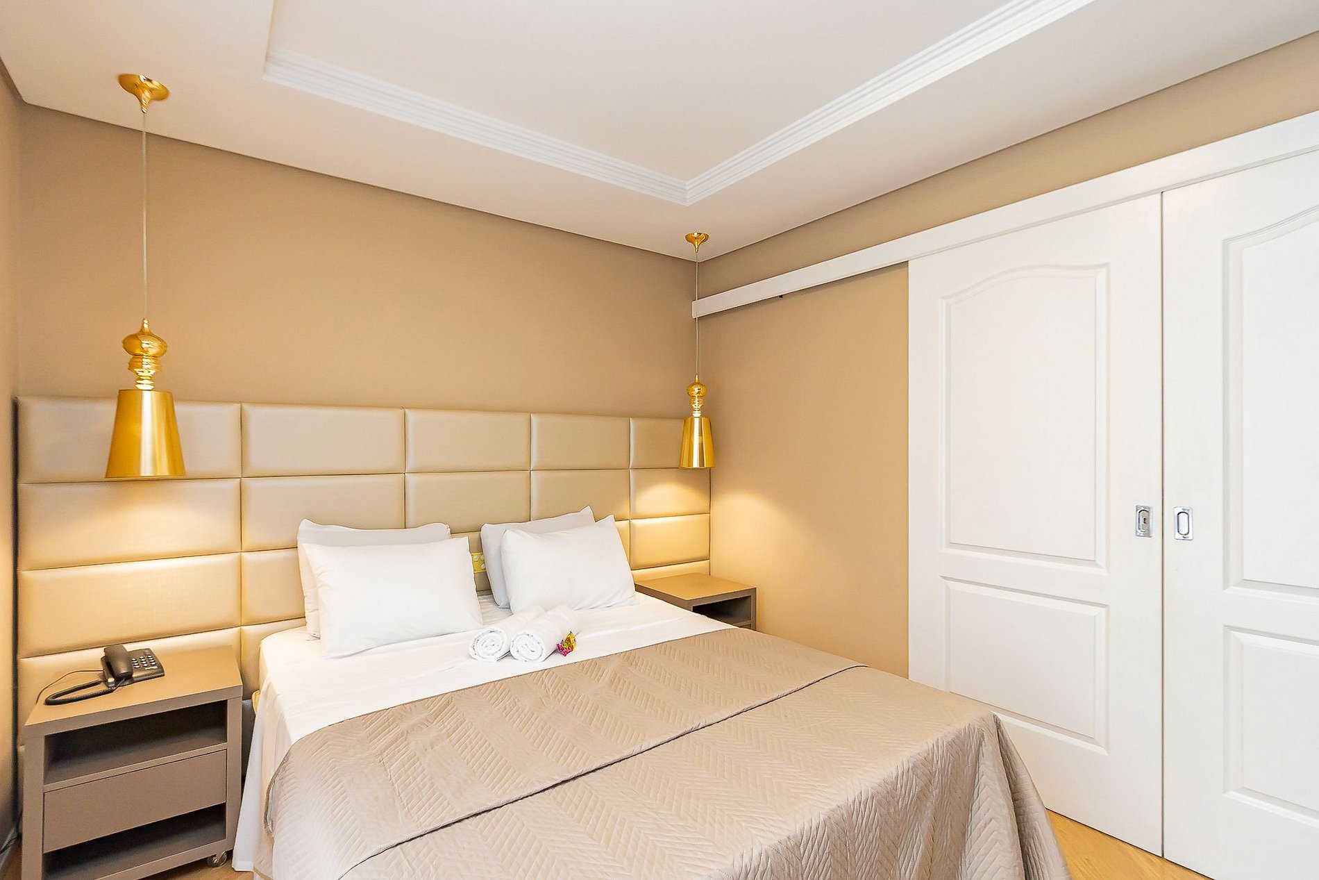 Durante a sua estadia não temos serviço de quarto e nem fazemos a reposição dos itens da sua unidade como: shampoo, condicionador, sabonete, papel higiênico, pano de prato, esponja e detergente de louça, além de pilhas do controle remoto, ar-condicionado e da fechadura eletrônica. A reposição destes itens é de responsabilidade do hóspede titular da reserva.