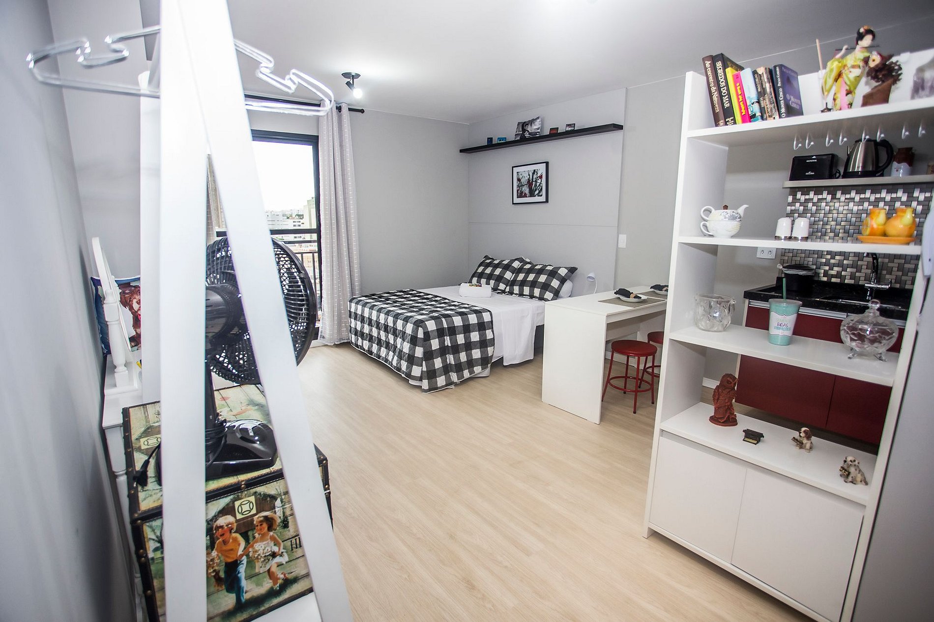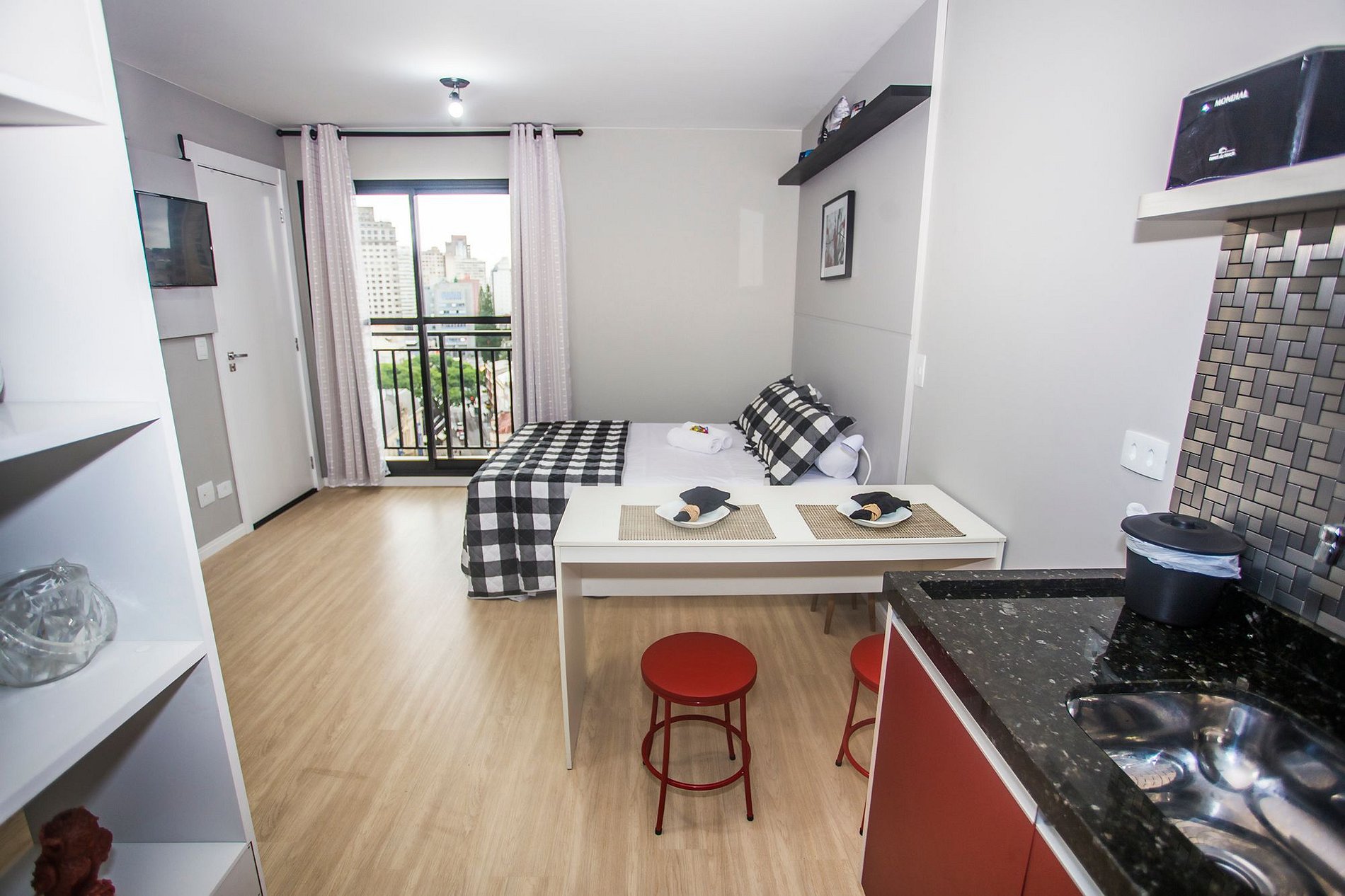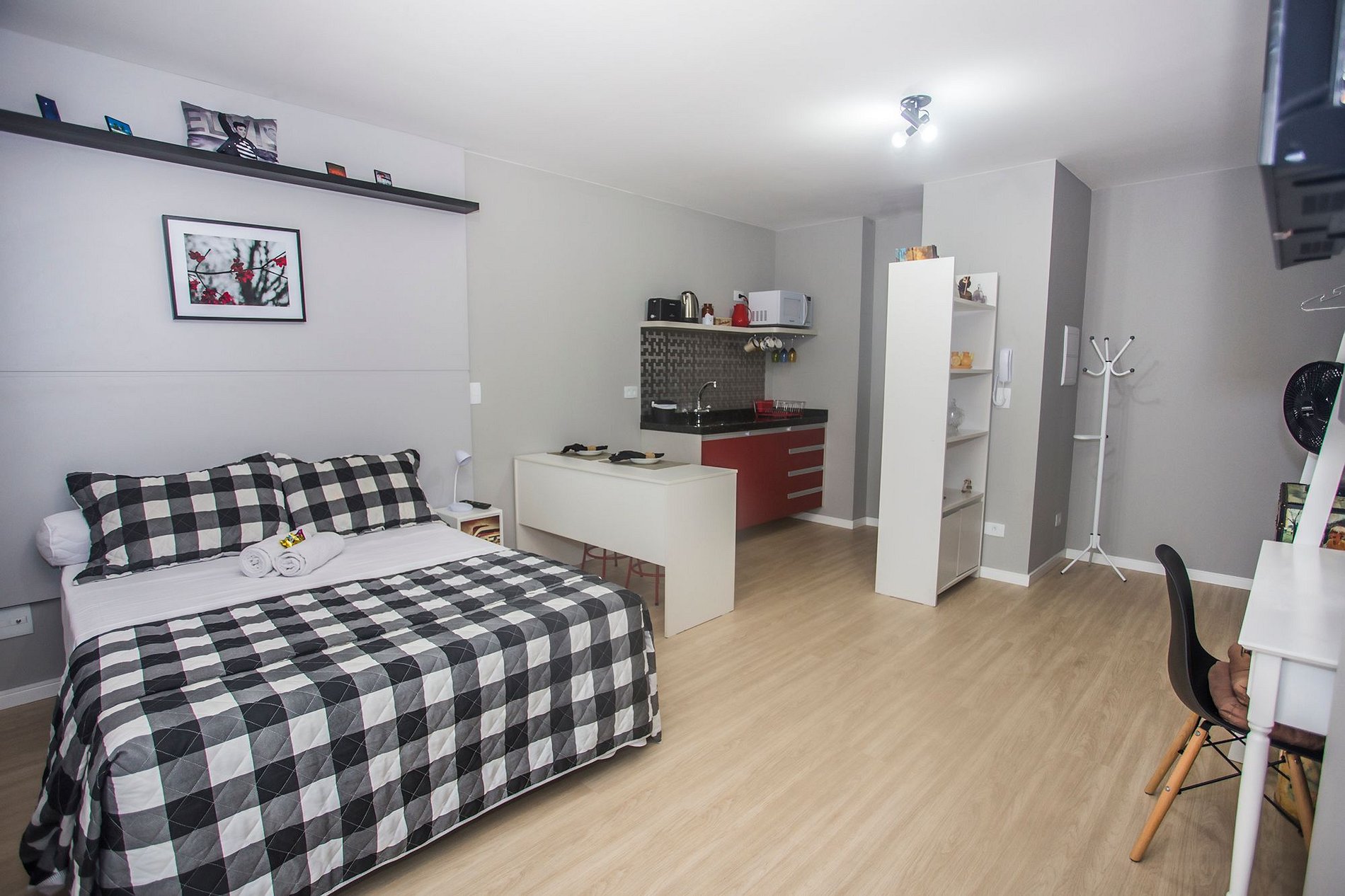 ⌂ Estúdio totalmente mobiliado que oferece as seguintes comodidades aos seus hospedes: