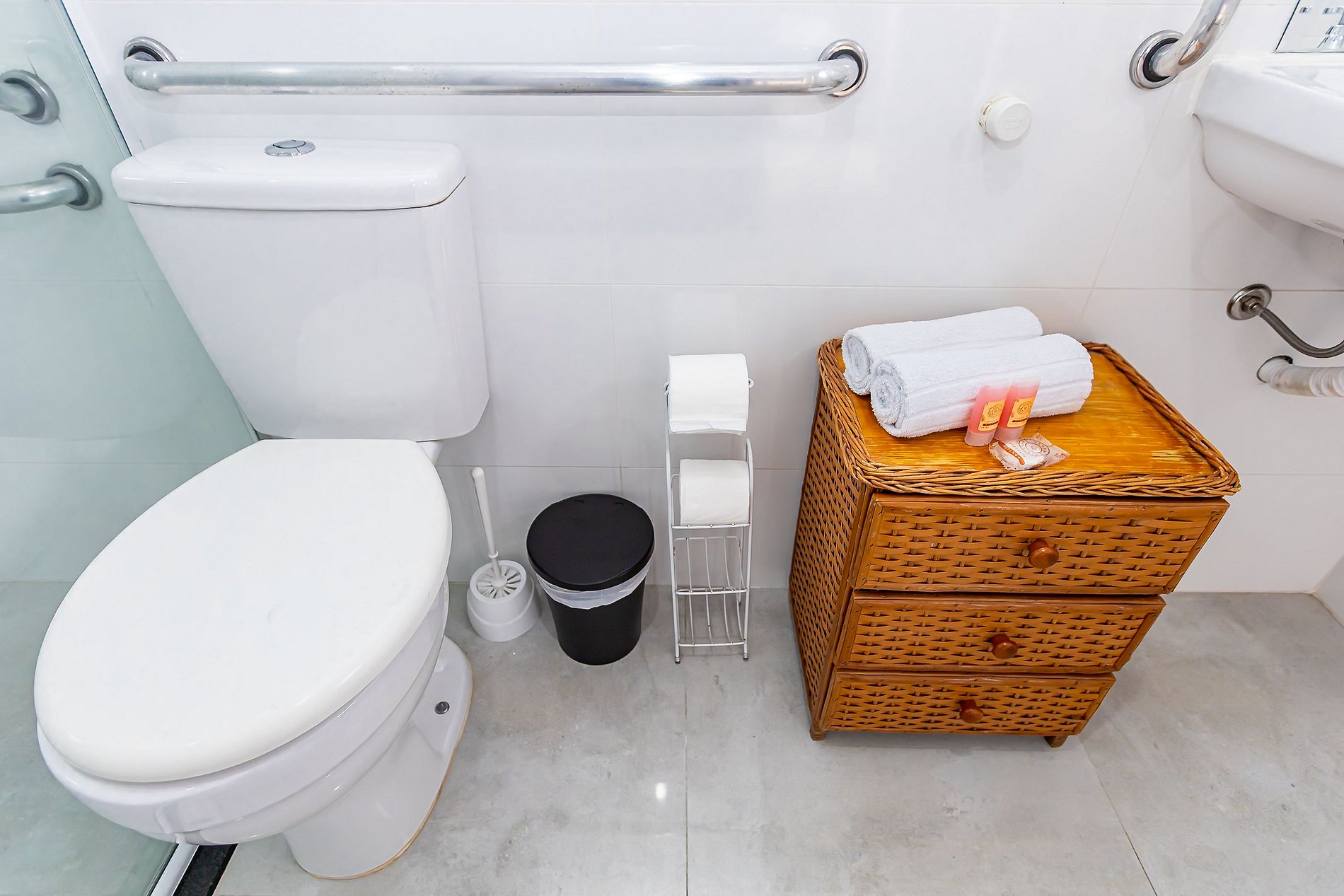 Nunca descarte no vaso sanitário os seguintes tipos de materiais: papel higiênico, absorventes, algodão, cabelo, cigarro, sabonetes, cotonetes, tubos de pasta, entre outros, pois eles são os principais responsáveis pelos entupimentos dos canos. Também nunca descarte outros tipos de papéis, como o papel-toalha, que tem uma resistência a umidade muito alta, logo não se dissolverá na água. Se ocorrer entupimentos durante sua estadia, podemos disponibilizar um desentupidor de vaso sanitário, caso seja necessário contratar um profissional, este custo será cobrado via aplicativo de reservas ou deduzido do valor da caução.