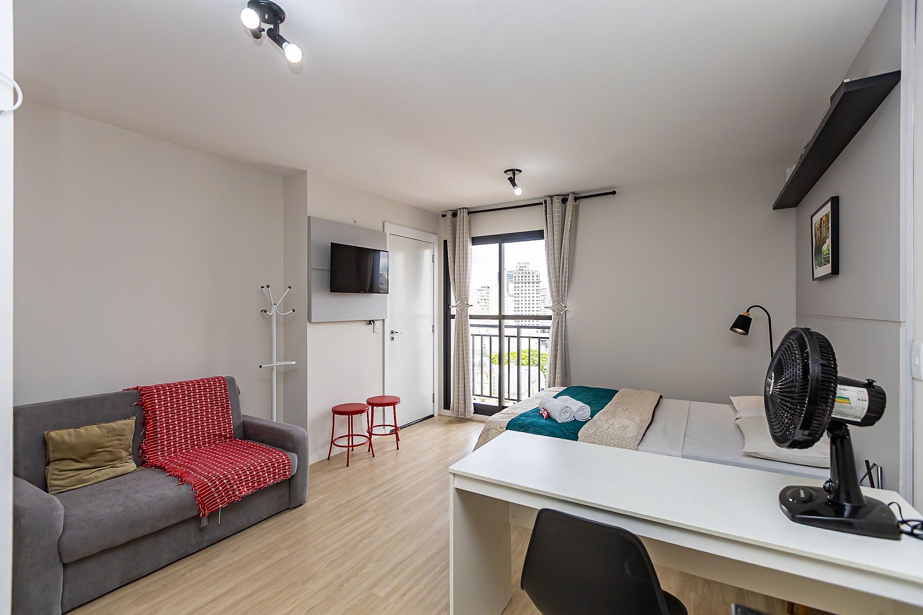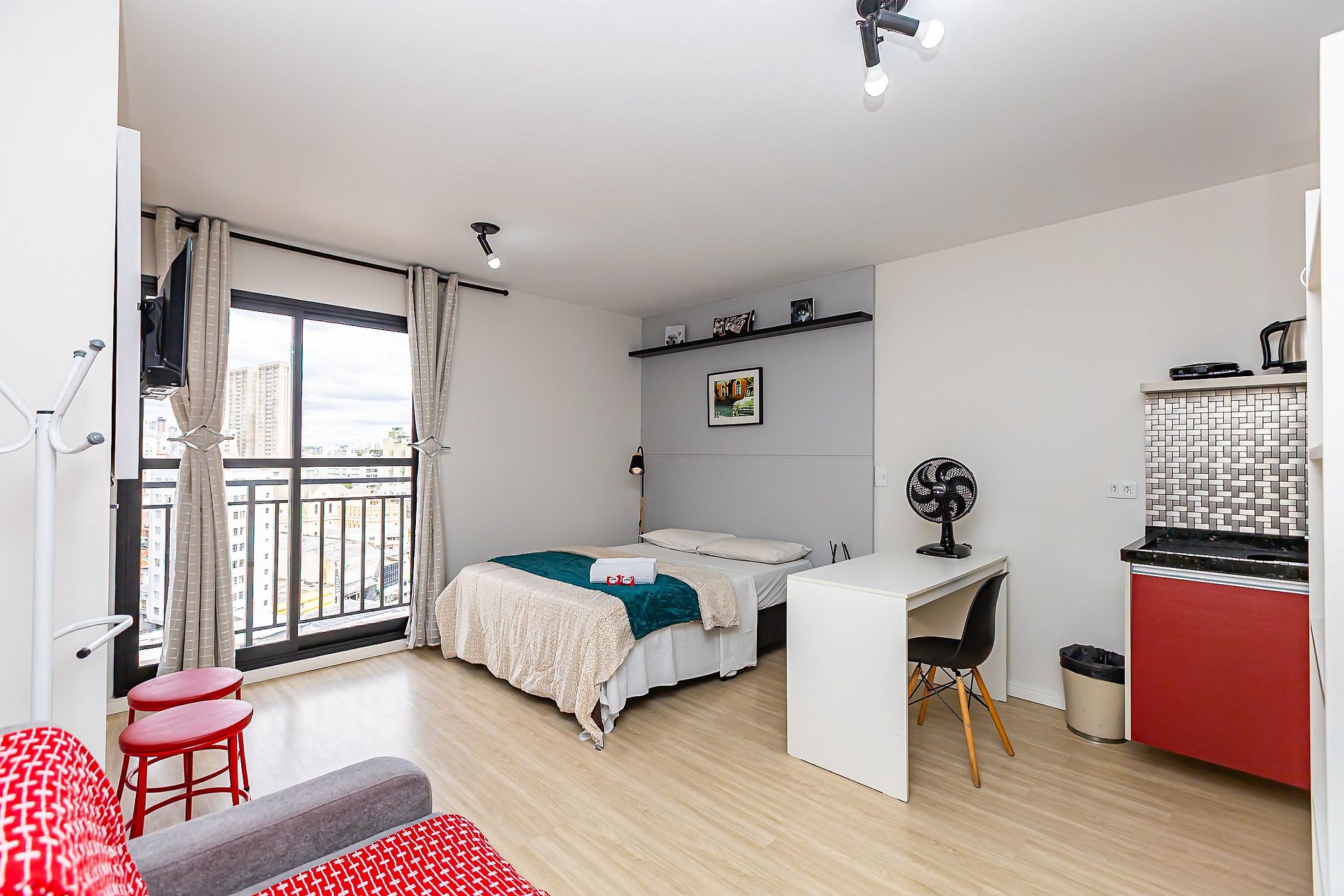 Studio moderno e aconchegante para até 4 pessoas, localizado no centro de Curitiba, com vista privilegiada para o histórico Paço da Liberdade. O espaço é funcional, bem equipado e perfeito para estadias curtas ou longas. A localização é imbatível, com fácil acesso a transporte público, restaurantes, cafés, mercados e pontos turísticos. Ideal para quem quer praticidade, conforto e a experiência de se hospedar no coração cultural da cidade.