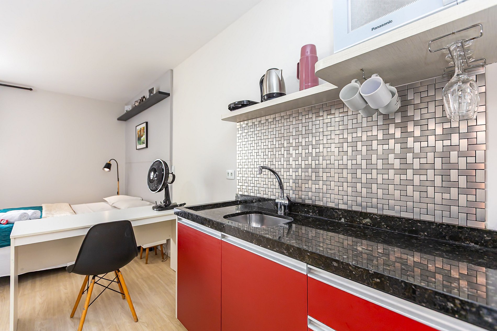 ⌂ Estúdio totalmente mobiliado que oferece as seguintes comodidades aos seus hospedes: