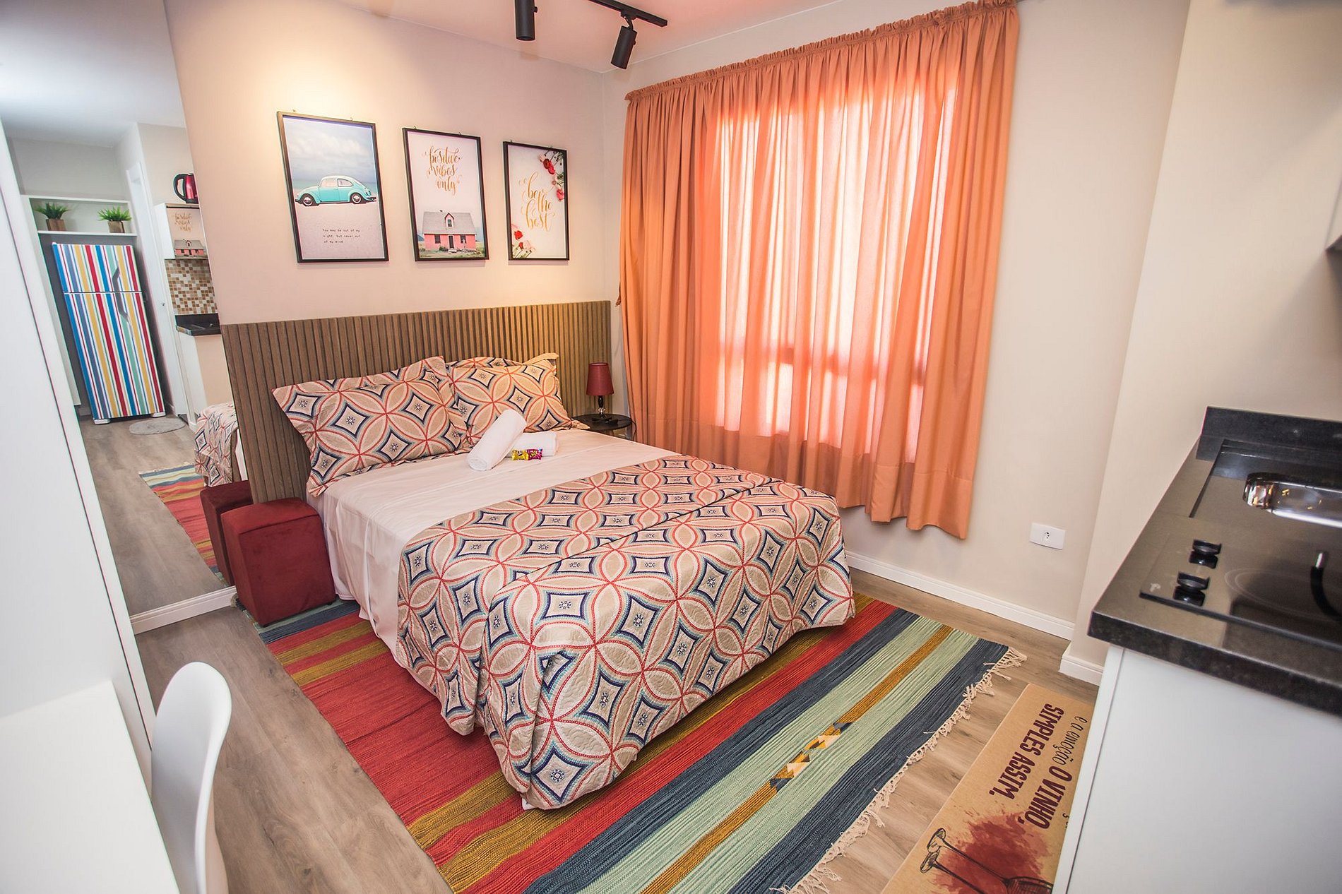 ⌂ Estúdio totalmente mobiliado que oferece as seguintes comodidades aos seus hospedes: