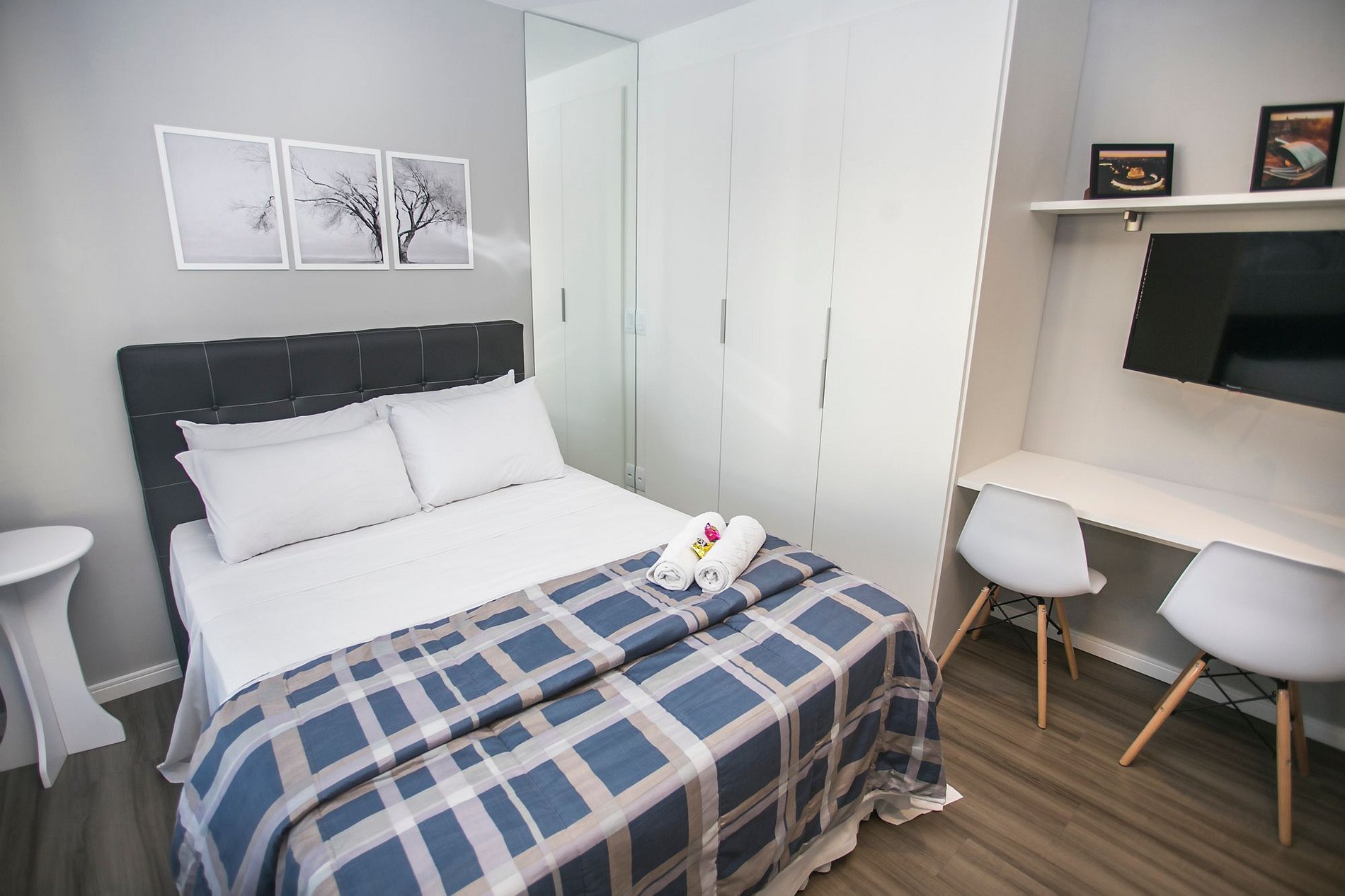 ⌂ Estúdio totalmente mobiliado que oferece as seguintes comodidades aos seus hospedes: