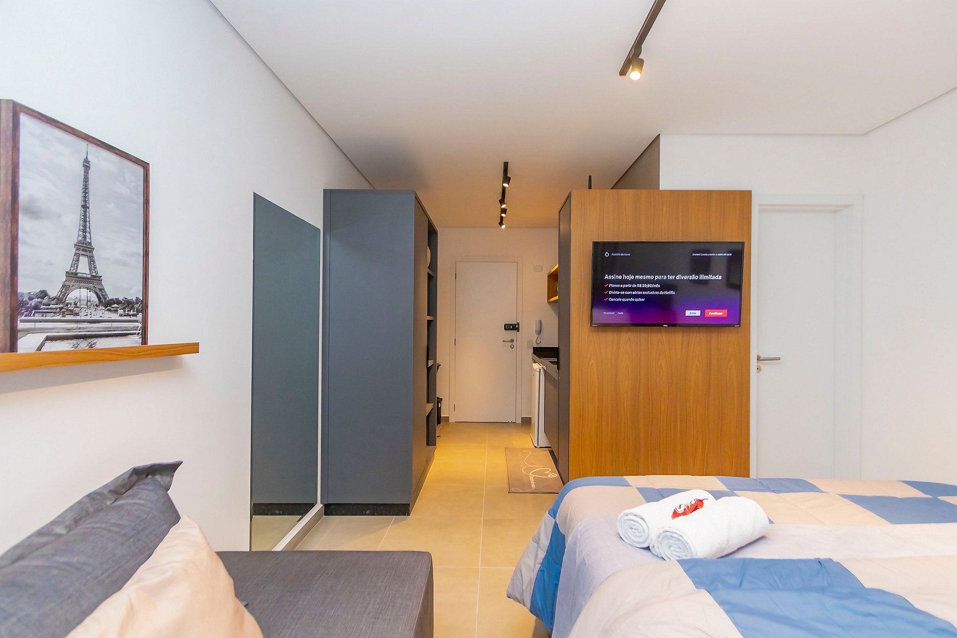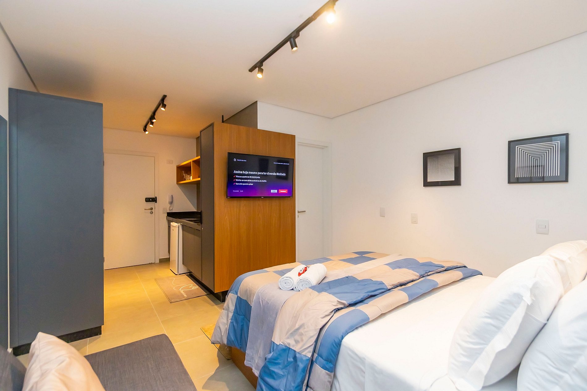 ⌂ Estúdio Plus totalmente mobiliado que oferece as seguintes comodidades aos seus hóspedes: