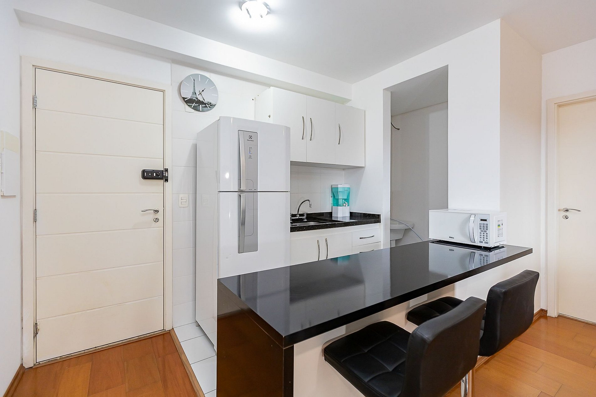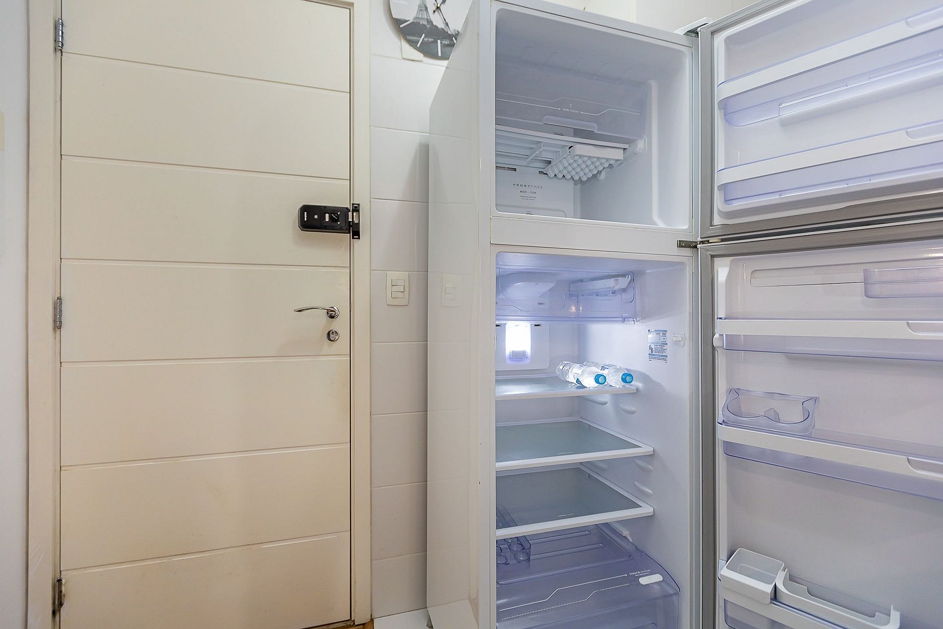 • O apartamento possui fechadura eletrônica, para aparecer o teclado numérico encoste a mão na fechadura, digite a senha e aperte o botão do cadeado aberto;