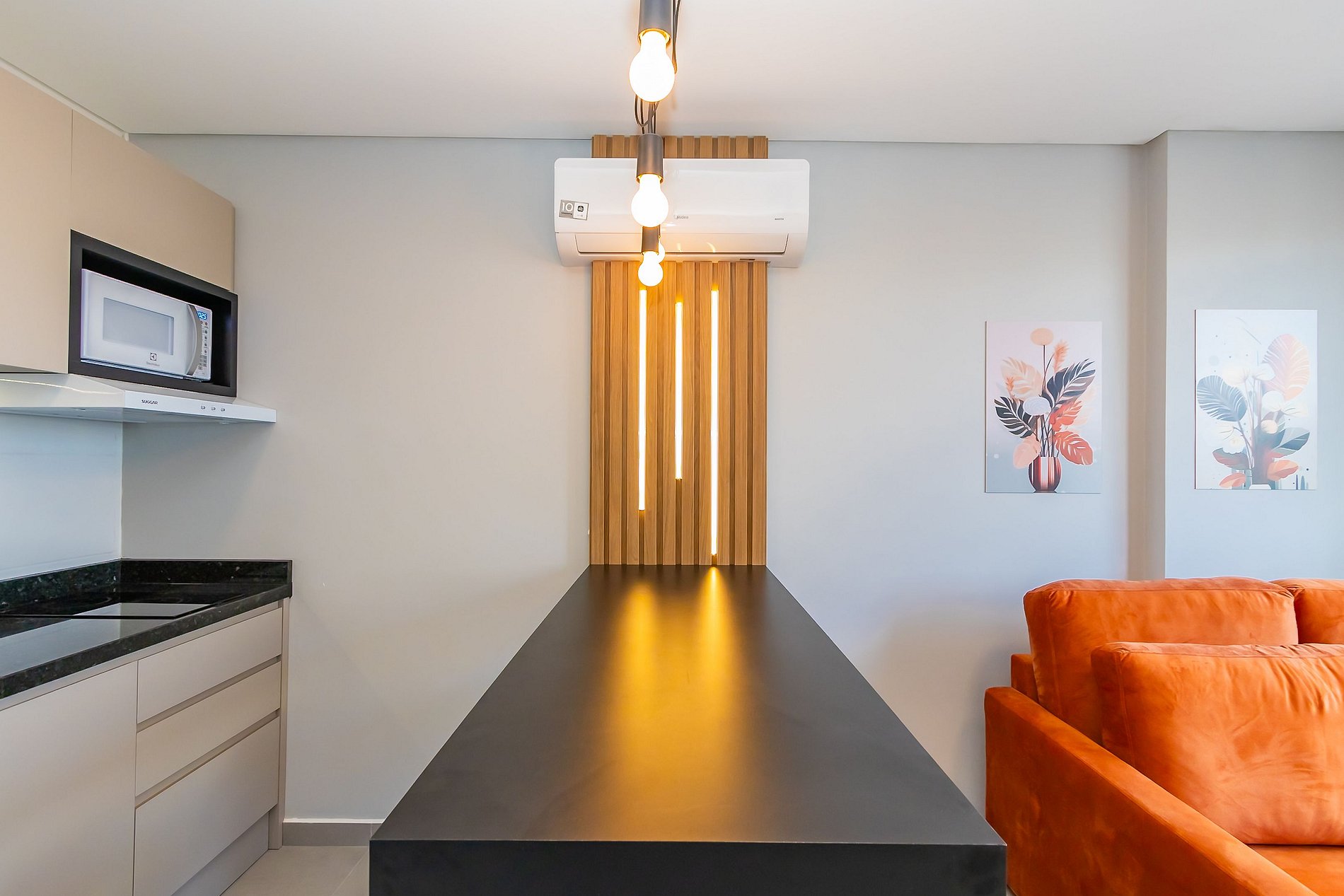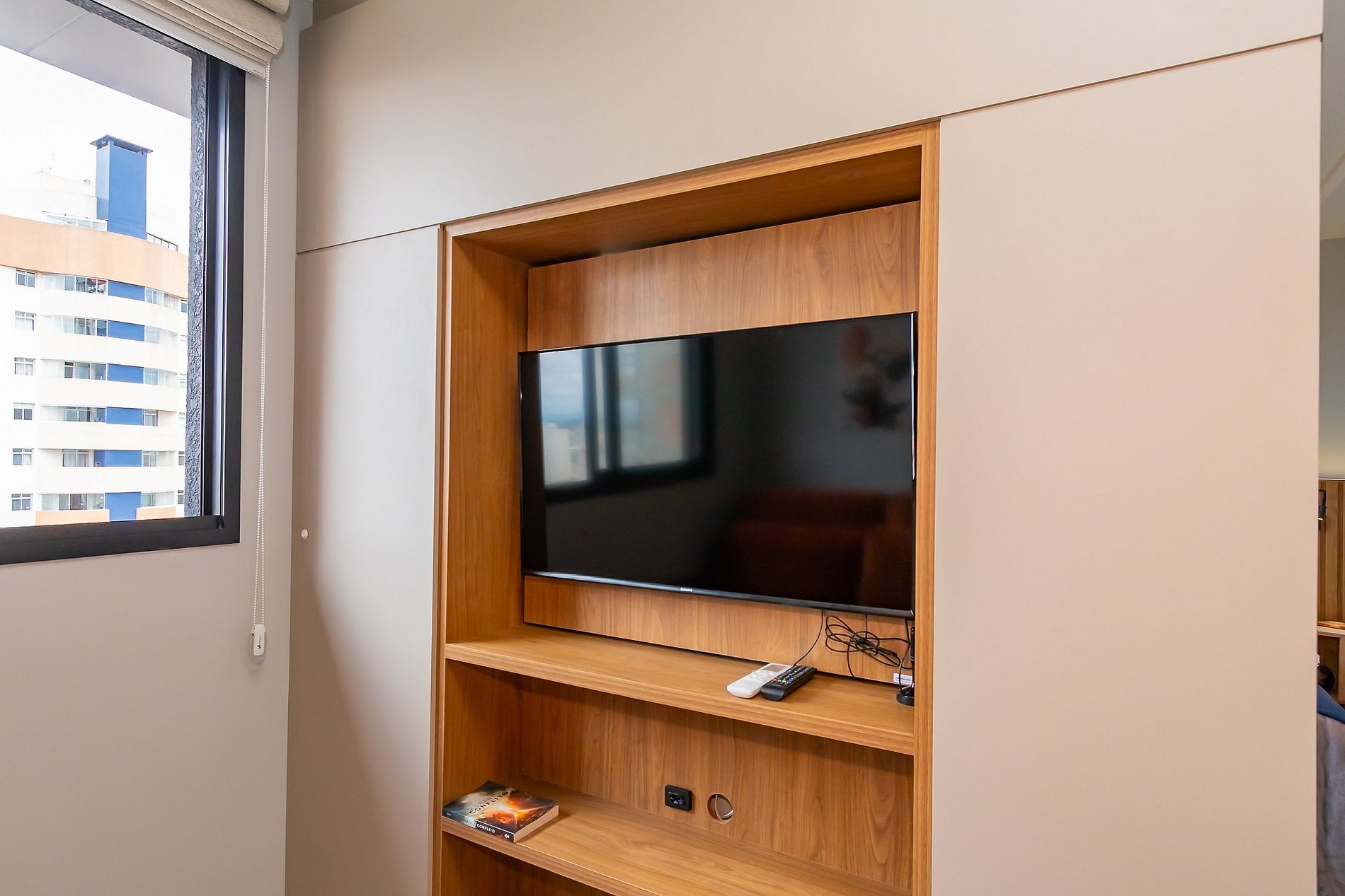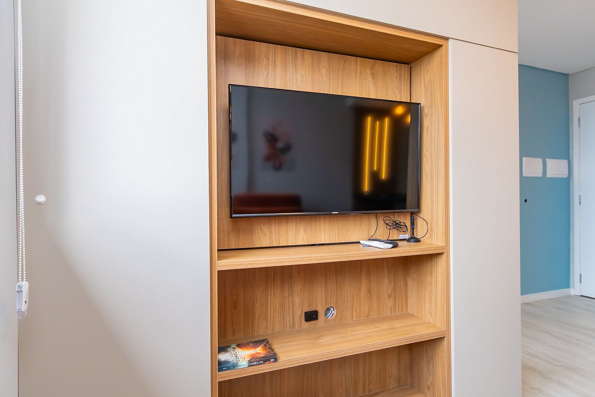 ⌂ Studio em prédio novo totalmente mobiliado que oferece as seguintes comodidades aos seus hóspedes: