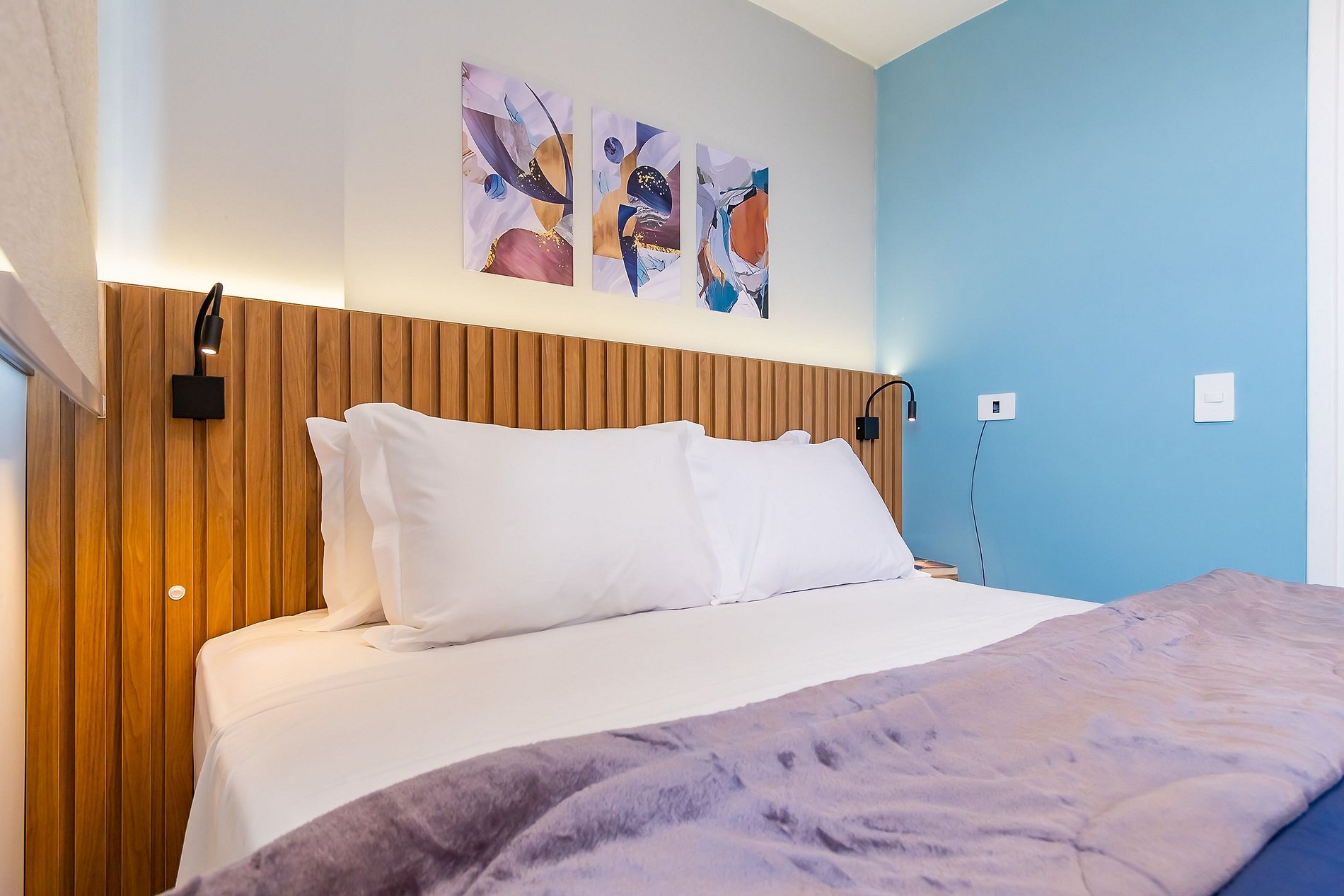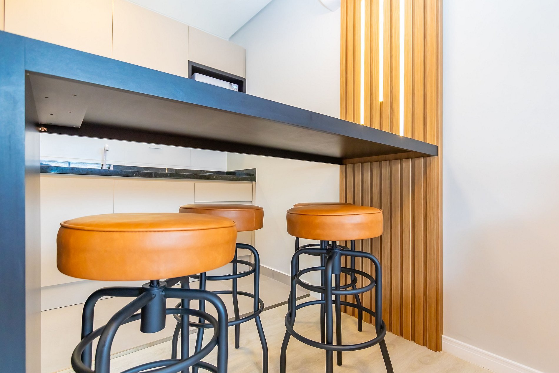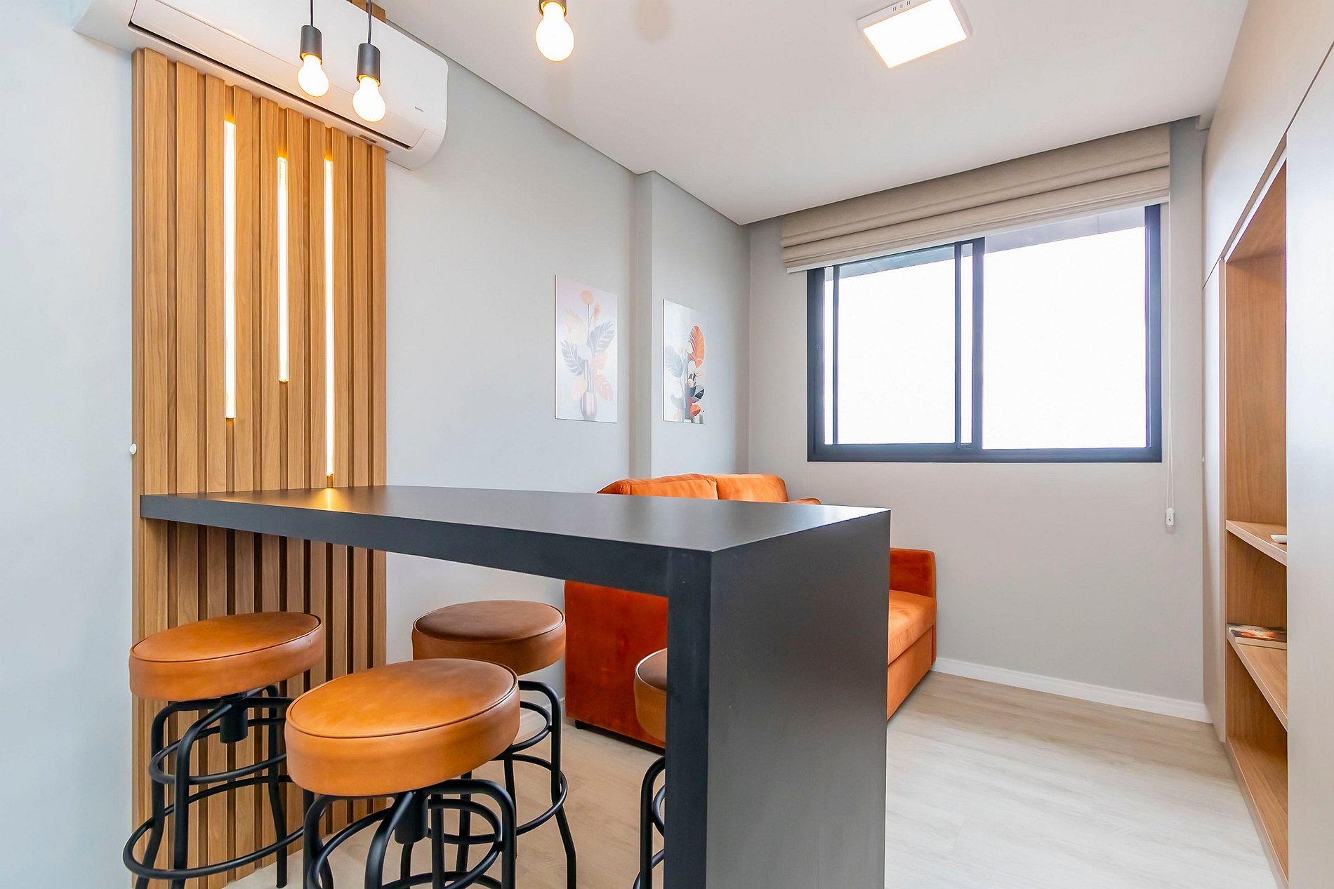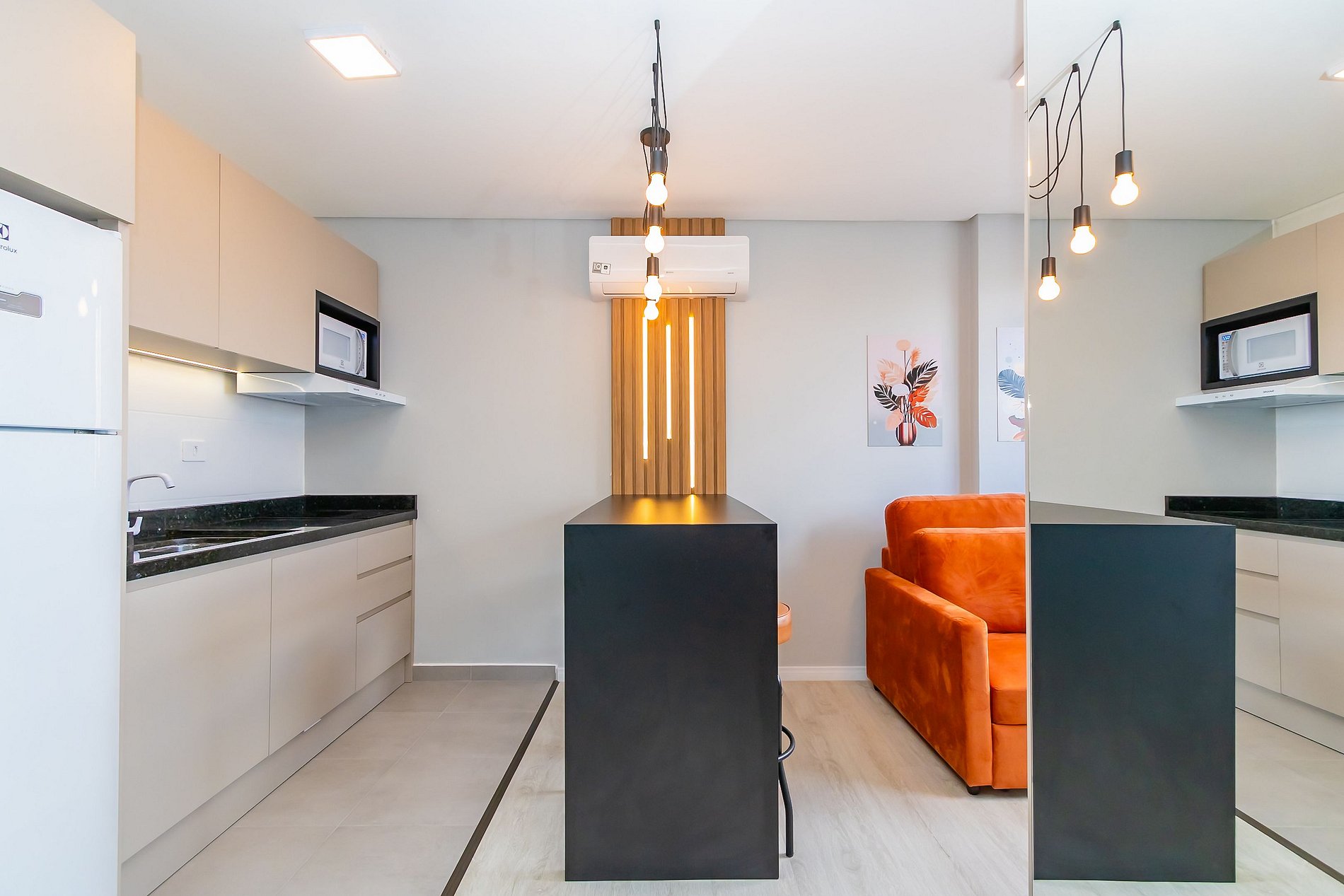 ⌂ Studio em prédio novo totalmente mobiliado que oferece as seguintes comodidades aos seus hóspedes: