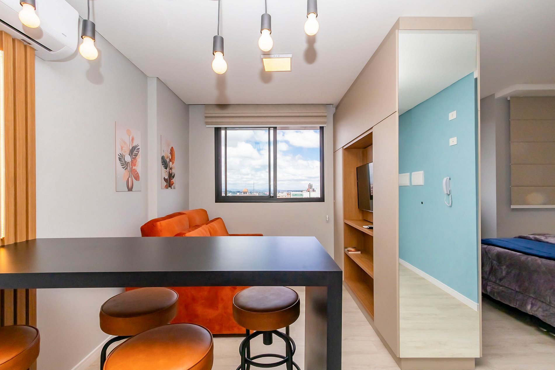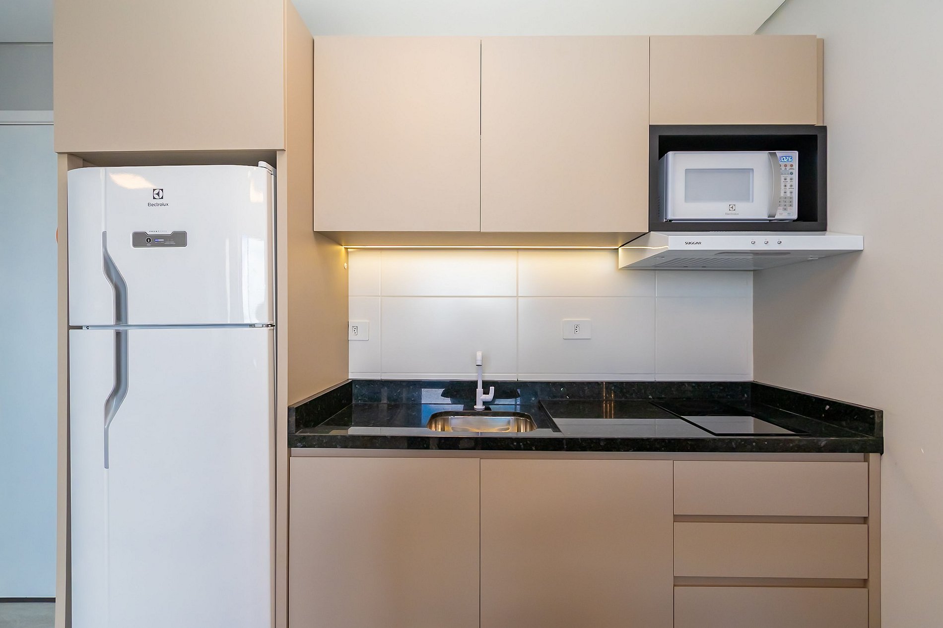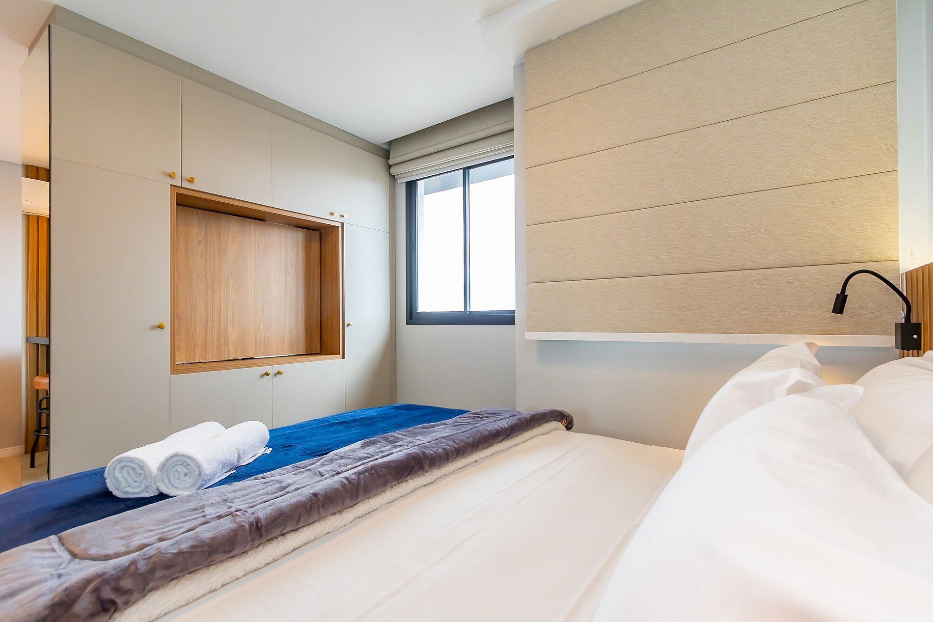⌂ Studio em prédio novo totalmente mobiliado que oferece as seguintes comodidades aos seus hóspedes: