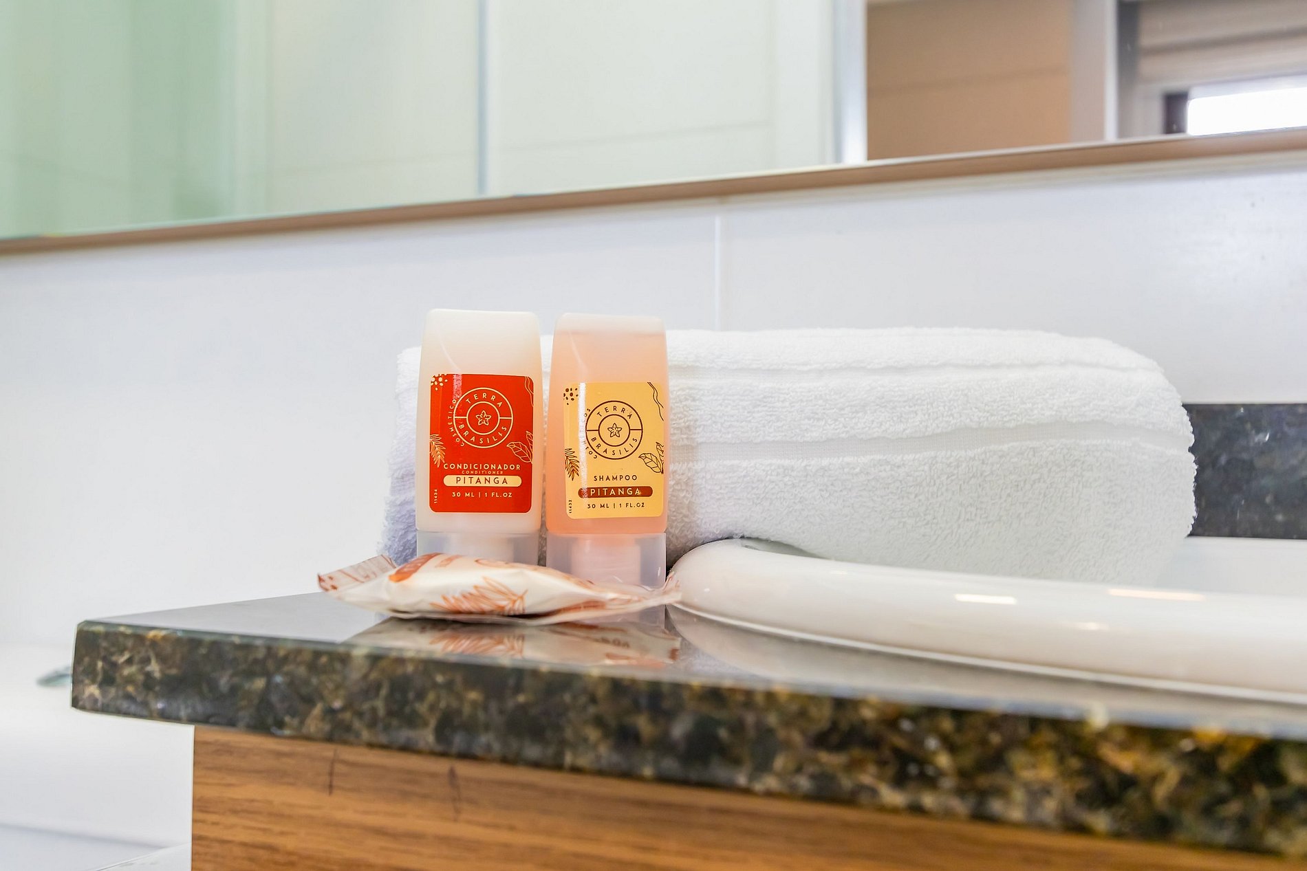 Durante a sua estadia não temos serviço de quarto e nem fazemos a reposição dos itens da sua unidade como: shampoo, condicionador, sabonete, papel higiênico, pano de prato, esponja e detergente de louça, além de pilhas do controle remoto, ar-condicionado e da fechadura eletrônica. A reposição destes itens é de responsabilidade do hóspede titular da reserva.