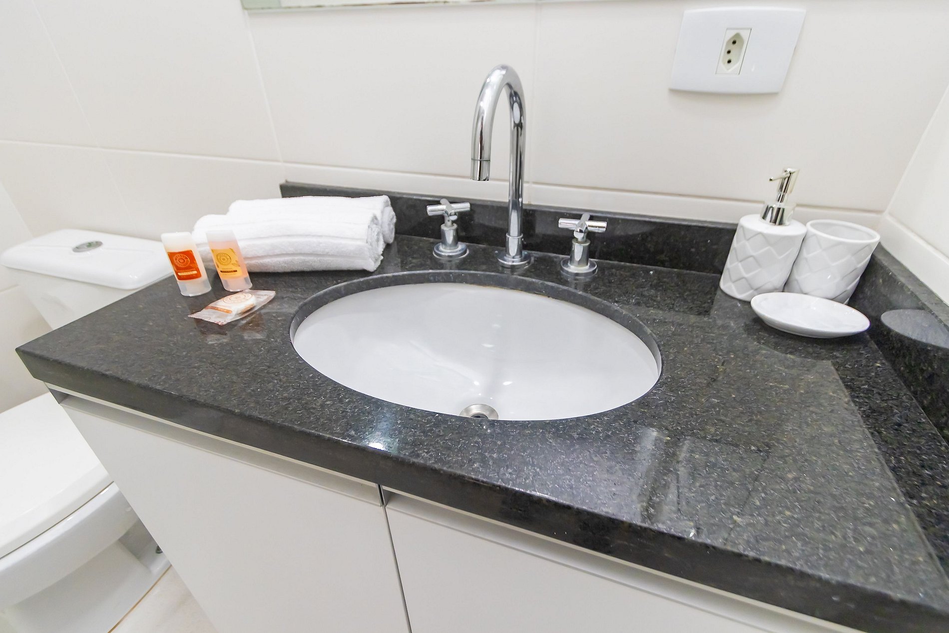 Durante a sua estadia não temos serviço de quarto e nem fazemos a reposição dos itens da sua unidade como: shampoo, condicionador, sabonete, papel higiênico, pano de prato, esponja e detergente de louça, além de pilhas do controle remoto, ar-condicionado e da fechadura eletrônica. A reposição destes itens é de responsabilidade do hóspede titular da reserva.