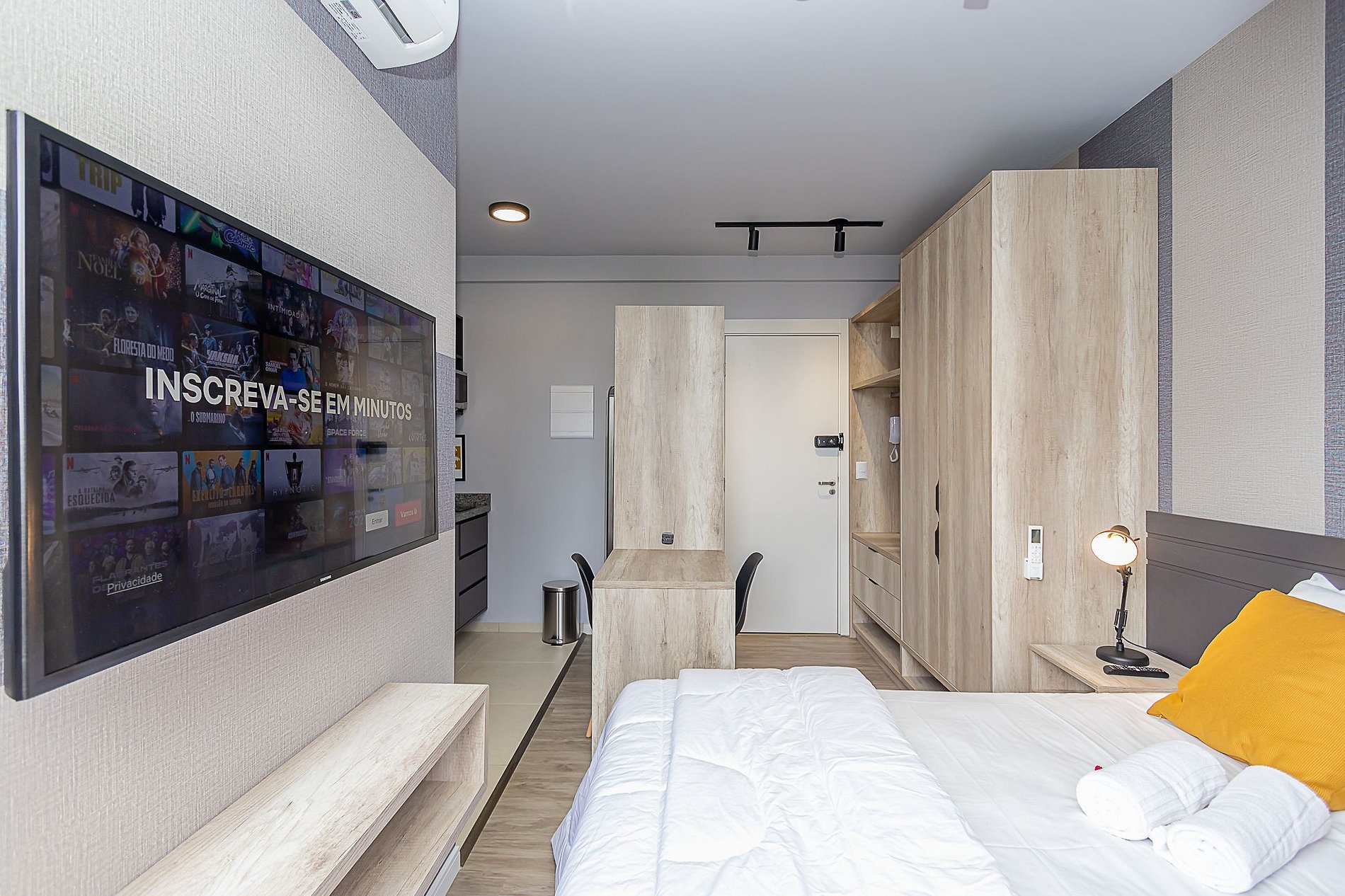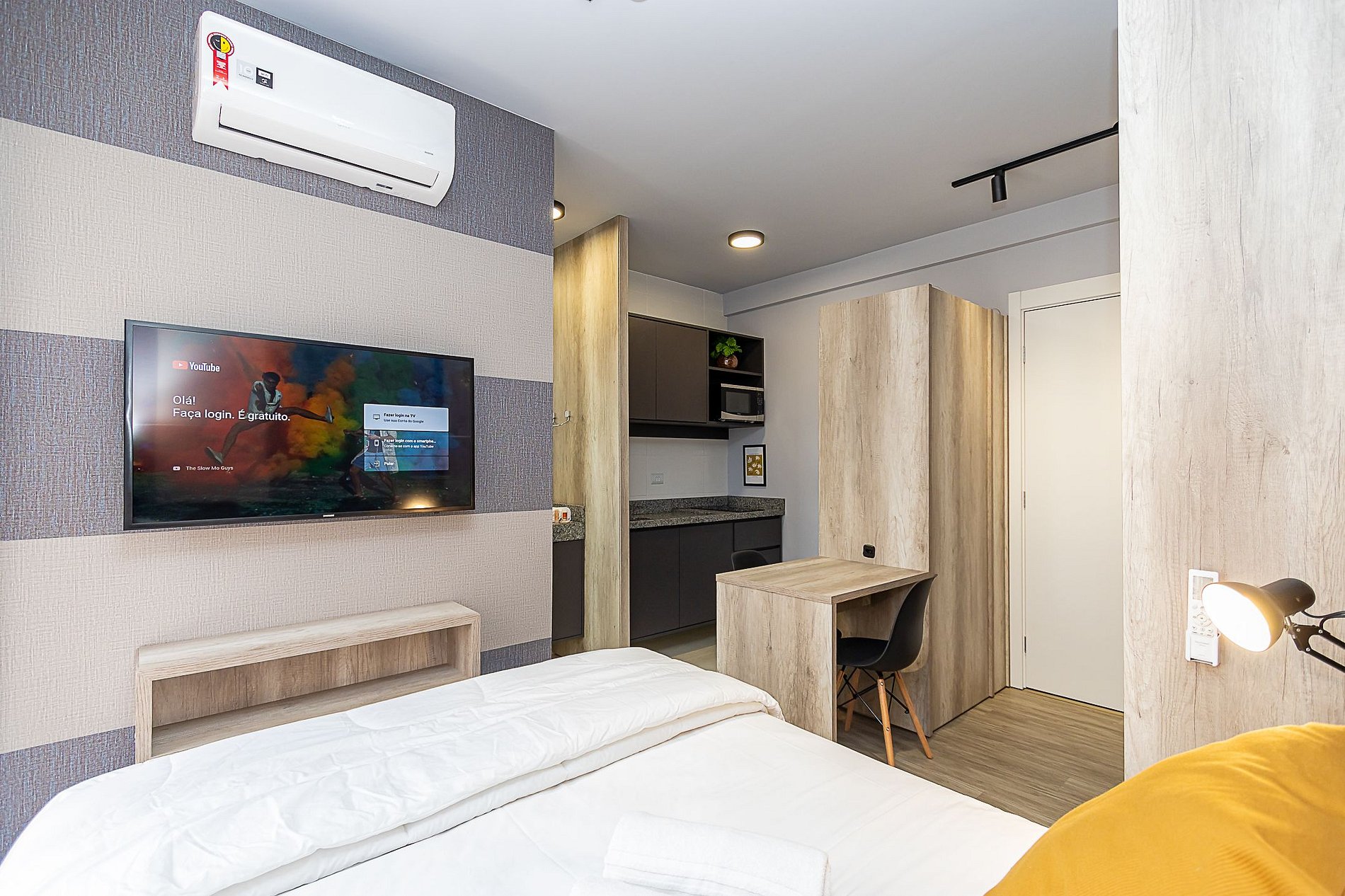 ⌂ Estúdio totalmente mobiliado que oferece as seguintes comodidades aos seus hóspedes: