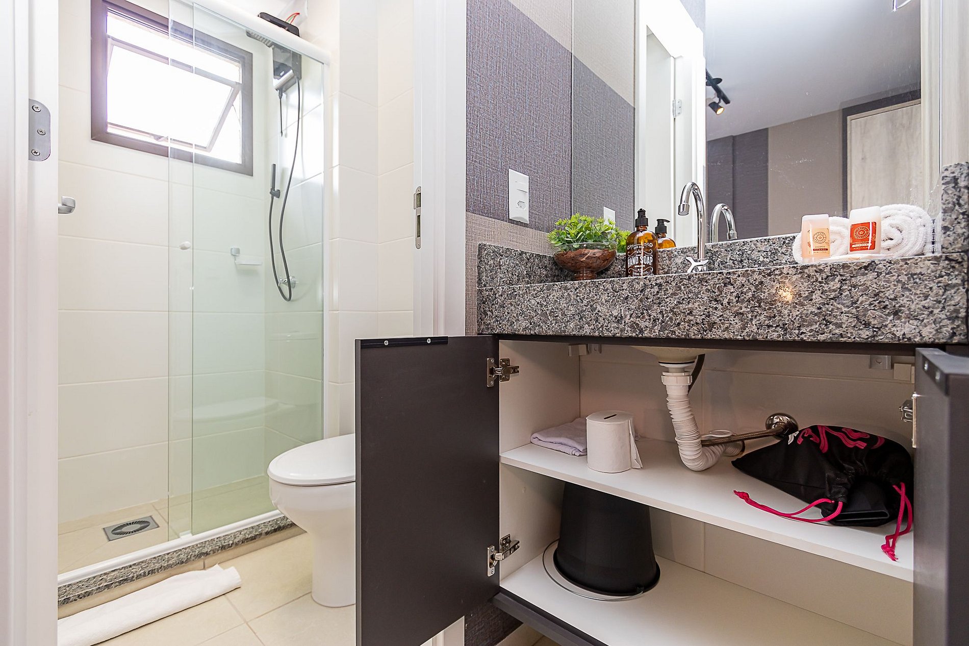 Durante a sua estadia não temos serviço de quarto e nem fazemos a reposição dos itens da sua unidade como: shampoo, condicionador, sabonete, papel higiênico, pano de prato, esponja e detergente de louça, além de pilhas do controle remoto, ar-condicionado e da fechadura eletrônica. A reposição destes itens é de responsabilidade do hóspede titular da reserva.