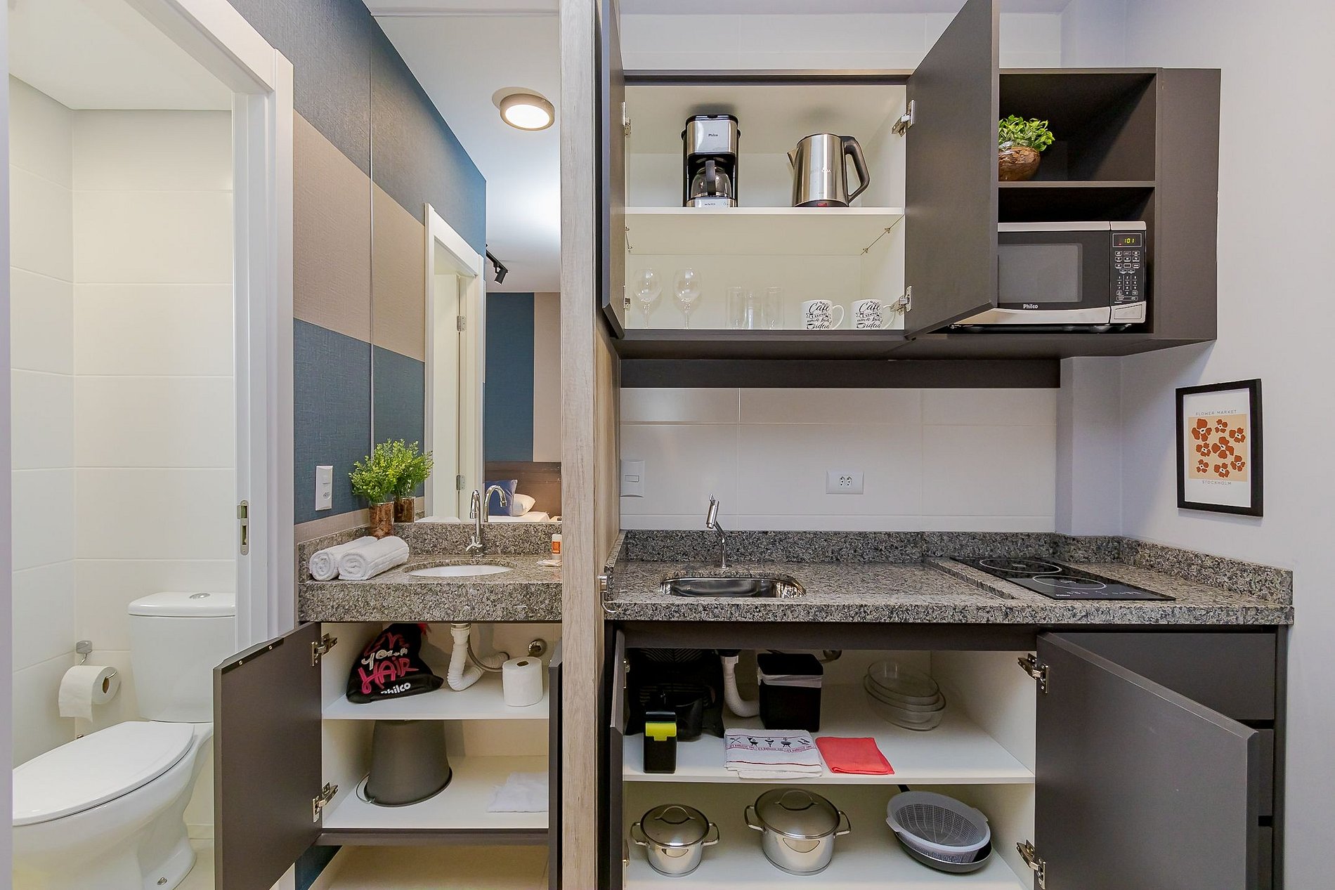 ⌂ Estúdio totalmente mobiliado que oferece as seguintes comodidades aos seus hóspedes: