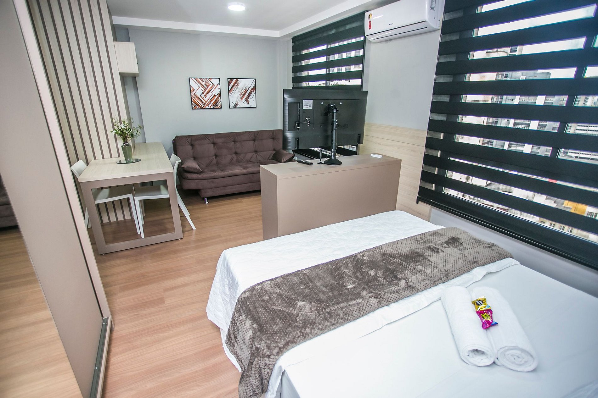 ⌂ Estúdio totalmente mobiliado que oferece as seguintes comodidades aos seus hospedes: