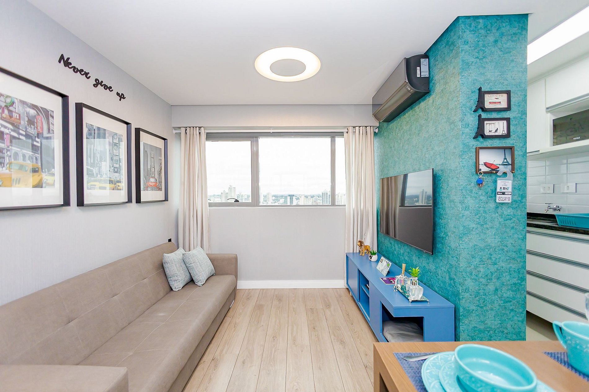 • O apartamento possui fechadura eletrônica, para aparecer o teclado numérico encoste a mão na fechadura, digite a senha e aperte o botão do cadeado aberto;