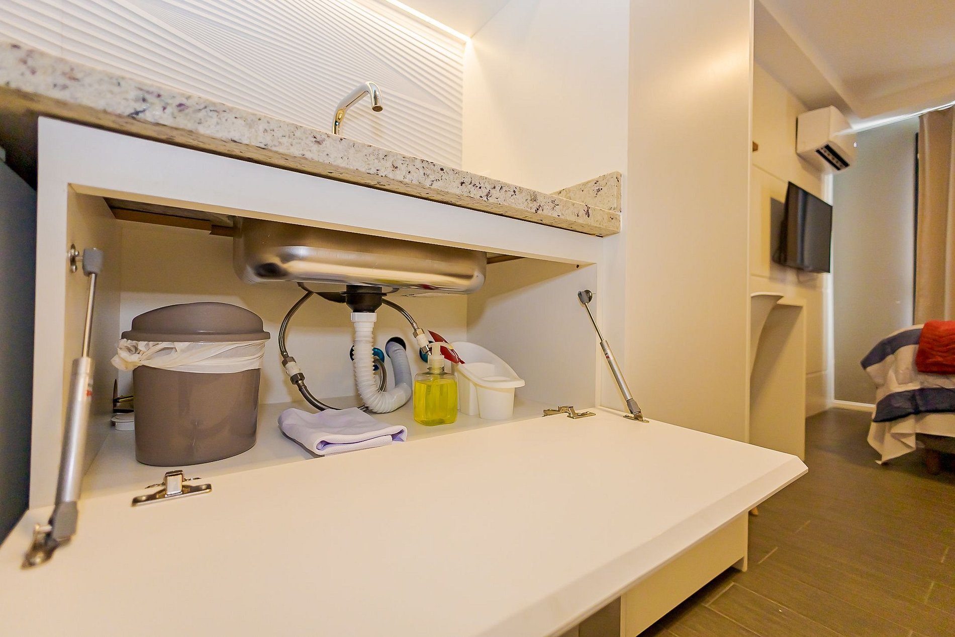 Durante a sua estadia não temos serviço de quarto e nem fazemos a reposição dos itens da sua unidade como: shampoo, condicionador, sabonete, papel higiênico, pano de prato, esponja e detergente de louça, além de pilhas do controle remoto, ar-condicionado e da fechadura eletrônica. A reposição destes itens é de responsabilidade do hóspede titular da reserva.