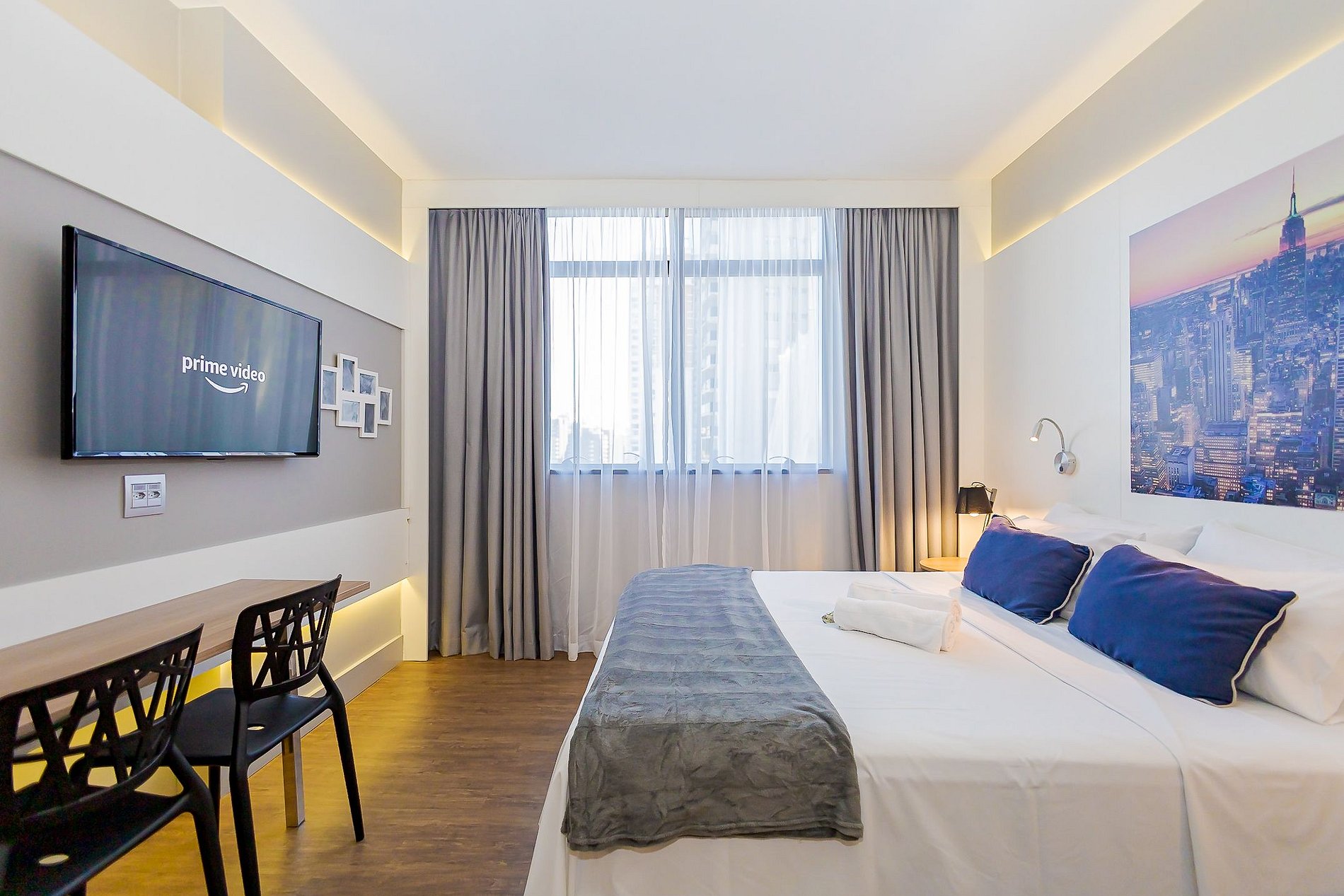 ⌂ Estúdio totalmente mobiliado que oferece as seguintes comodidades aos seus hóspedes: