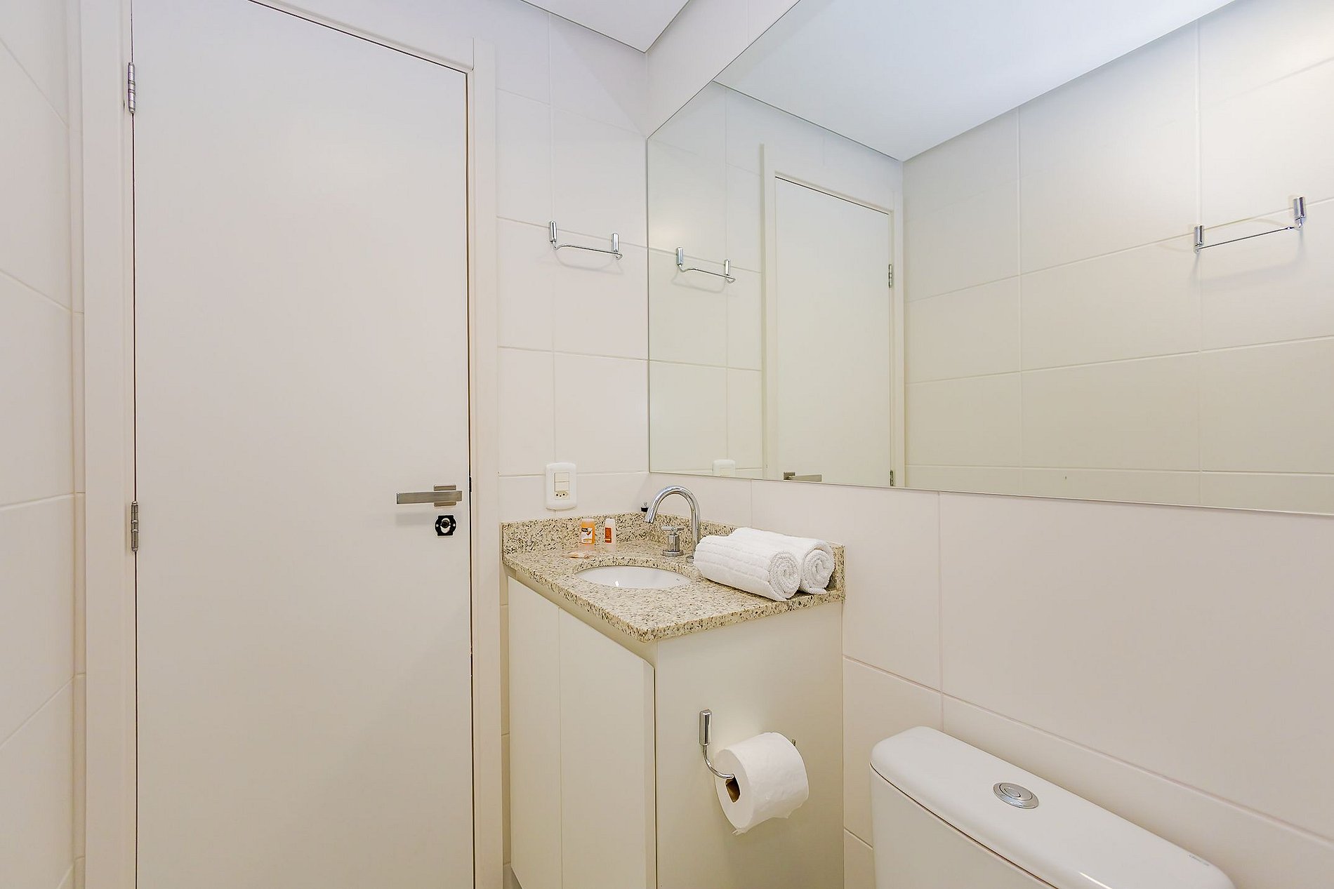 Durante a sua estadia não temos serviço de quarto e nem fazemos a reposição dos itens da sua unidade como: shampoo, condicionador, sabonete, papel higiênico, pano de prato, esponja e detergente de louça, além de pilhas do controle remoto, ar-condicionado e da fechadura eletrônica. A reposição destes itens é de responsabilidade do hóspede titular da reserva.