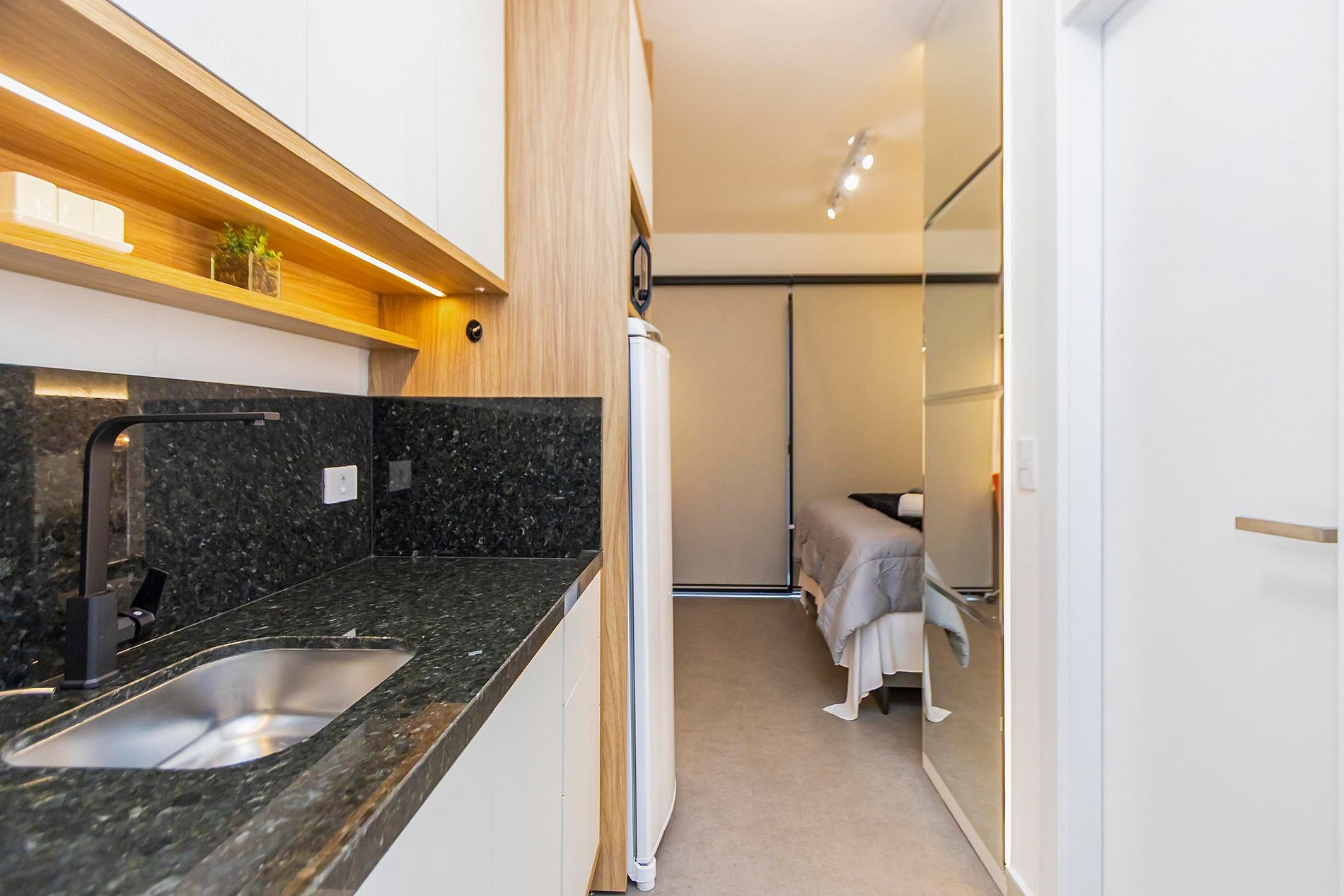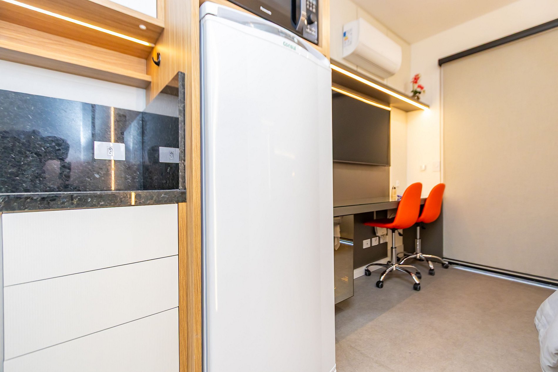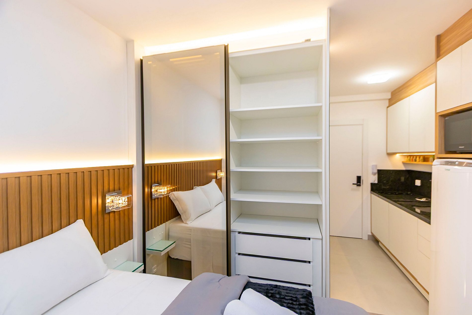 ⌂ Studio totalmente mobiliado que oferece as seguintes comodidades aos seus hóspedes: